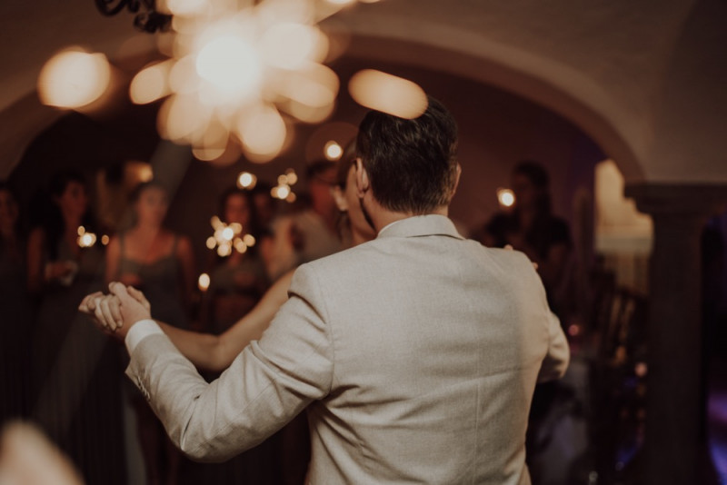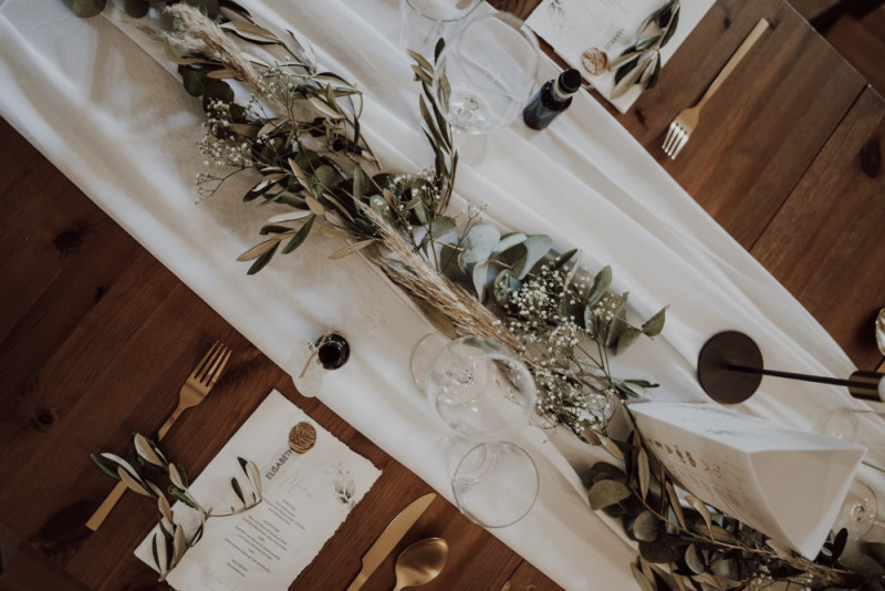 Ein weiteres Highlight dieses Tages war die passende Hochzeitstorte im edlen Greenery Look. Die dreistöckige weiße Hochzeitstorte von Lisi’s Leckereien, wurde mit frischem Eukalyptus und feinem Blattgold dekoriert und auf einer Holzscheibe präsentiert. „Nach dem Tortenanschnitt folgte noch unser Hochzeitstanz zum Song ‚Ein Teil von meinem Herzen‘- ein absolut magischer Moment, den wir sicher niemals vergessen werden. Ganz traditionell gab es dann auch ein „Brautstehlen“ und danach wurde bis in die frühen Morgenstunden getanzt und gefeiert.
