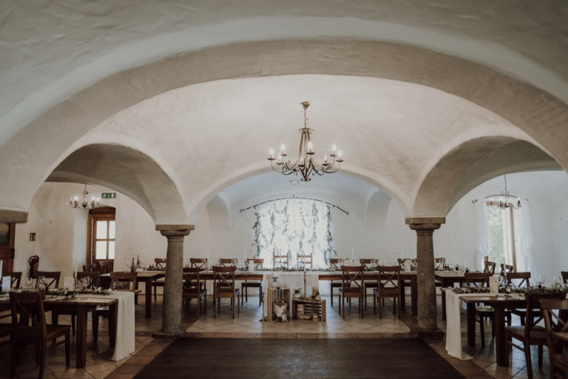 „Der Wettergott war an diesem Tag wohl wirklich auf unserer Seite. So kam genau zum Abendessen ein Gewitter, was uns aber nicht störte. Denn jetzt wurde das traumhafte Ambiente im Gewölbe genossen. Auch hier haben wir viel Zeit in die Dekoration und Vorbereitungen gesteckt.“
