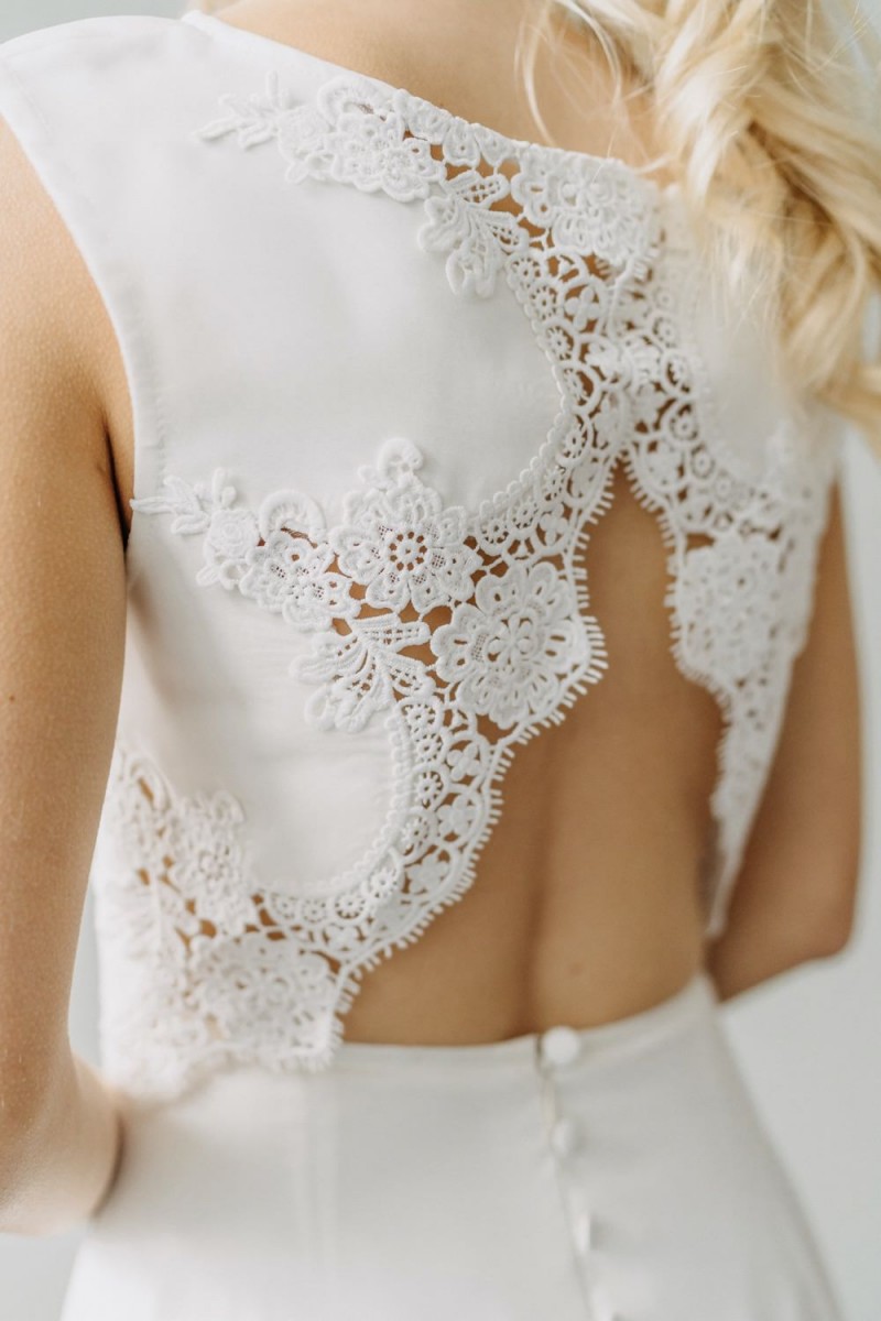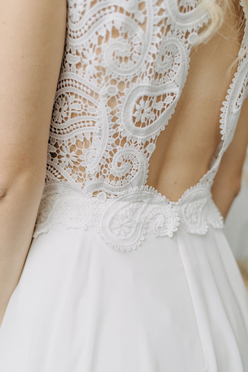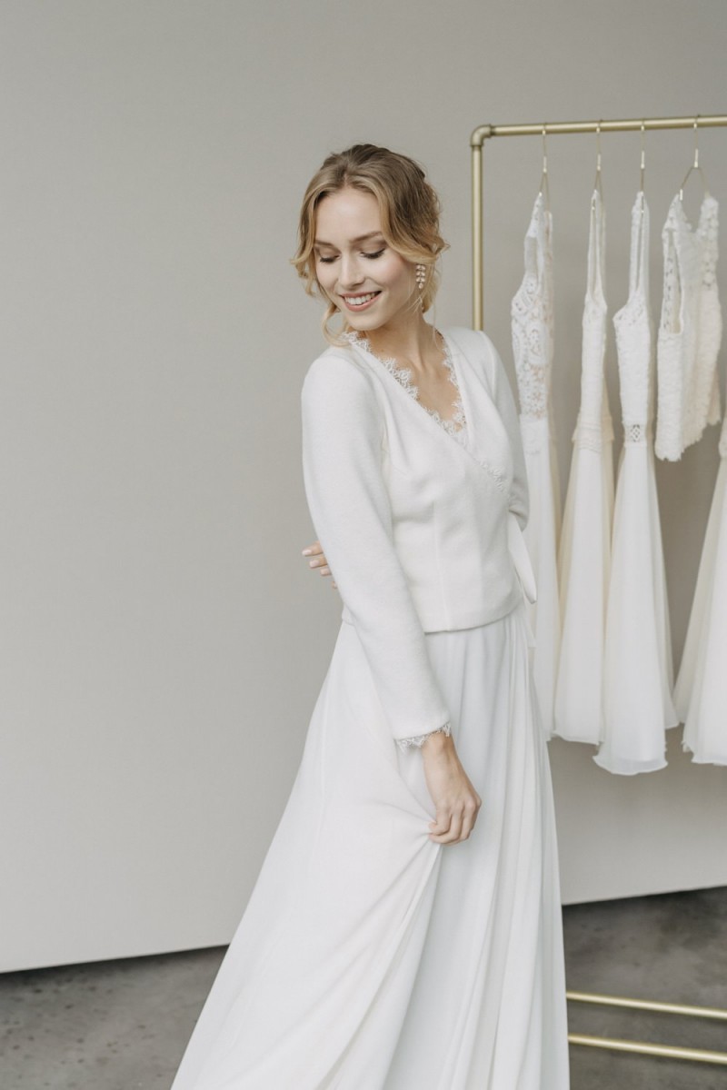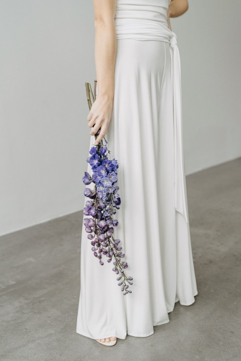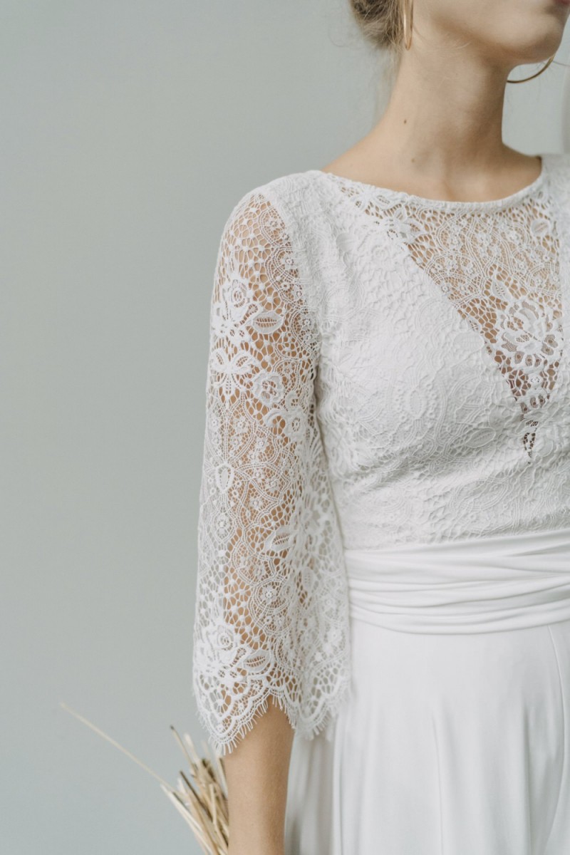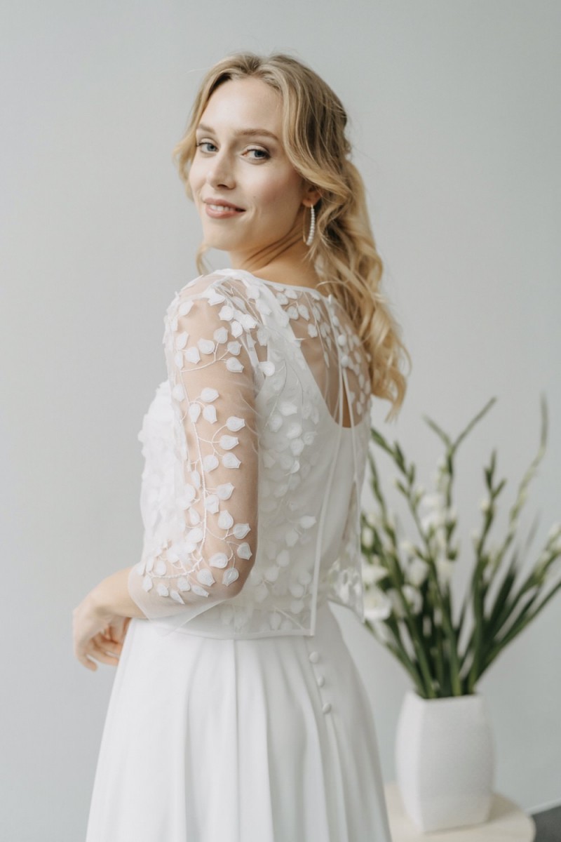 Insgesamt sind vier Standesamtkleider der im Frühjahr veröffentlichten kurzen Brautkleid-Kollektion in die neue Kollektion übernommen worden: Fleur, Dahlia, Lilli und Ivy. Hier lassen sich lange Röcke ganz einfach für die 2-in-1-Brautkleid-Variante anknöpfen oder dauerhaft auswechseln. Darüber hinaus gibt es fünf verschiedene Röcke, eine Hose und zwei Hosenröcke in variantenreichen Schnitten, die sich mit acht Oberteilen zu Standesamt- und Hochzeits-Outfits kombinieren lassen. On top hat die Designerin zwei Jumpsuits für die urbane Braut kreiert. Im Zentrum stehen leichte Stoffe wie Chiffon, Tüll, Organza, Viskose und Jersey – die Oberteile begeistern mit raffinierten Spitzen von modern bis romantisch-verspielt.