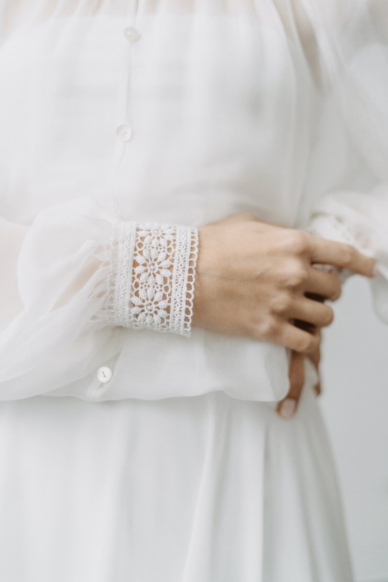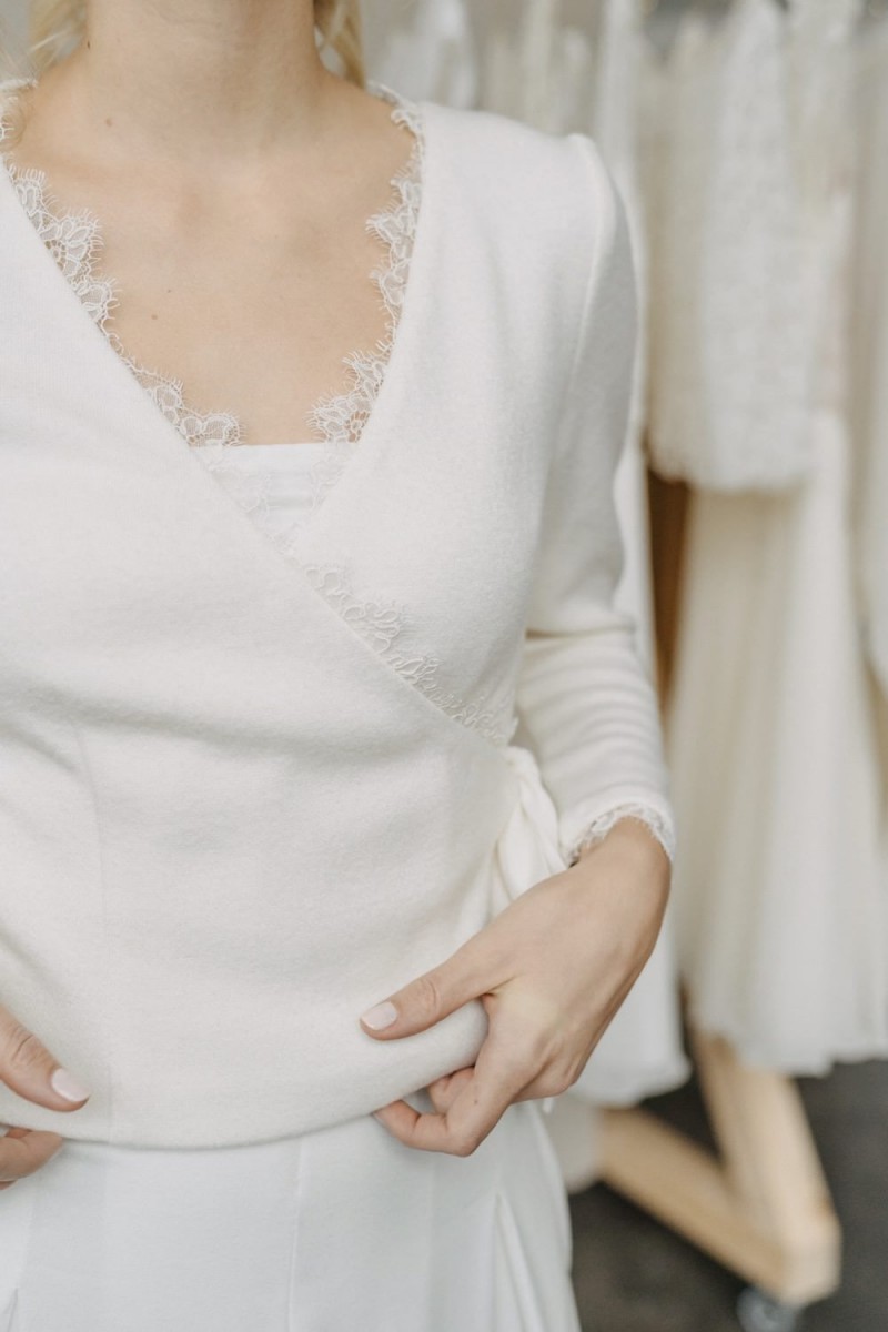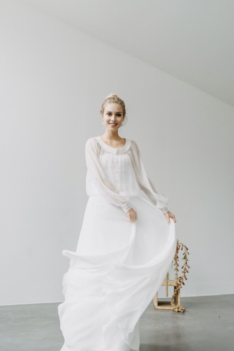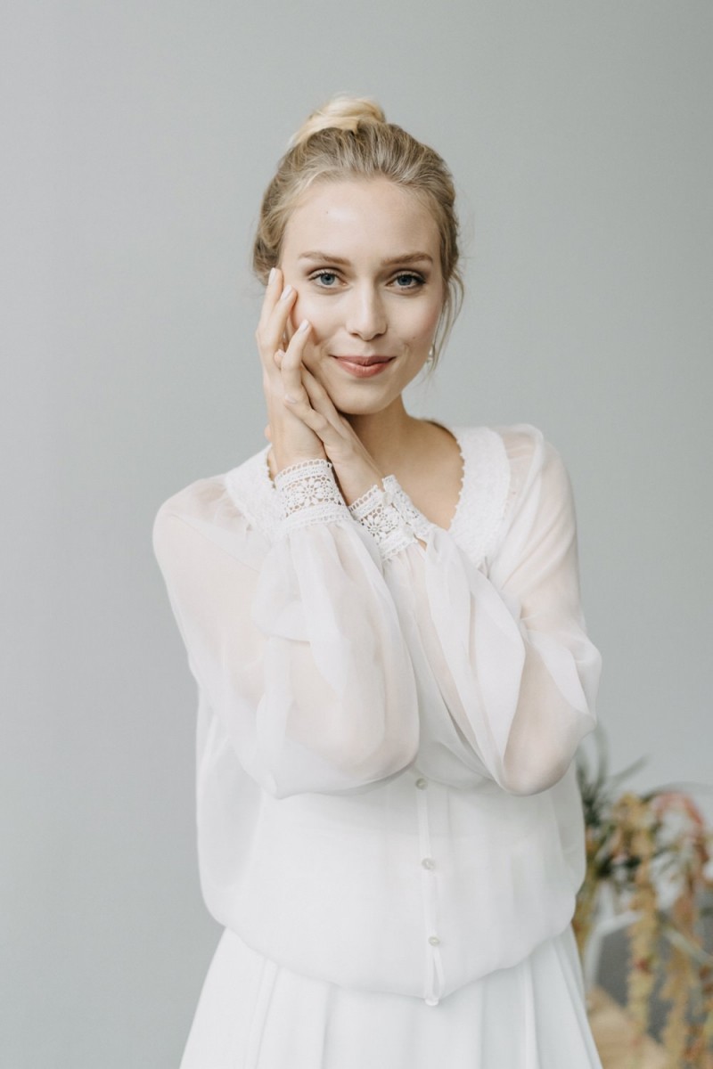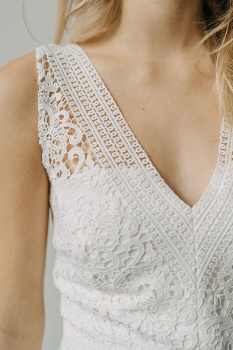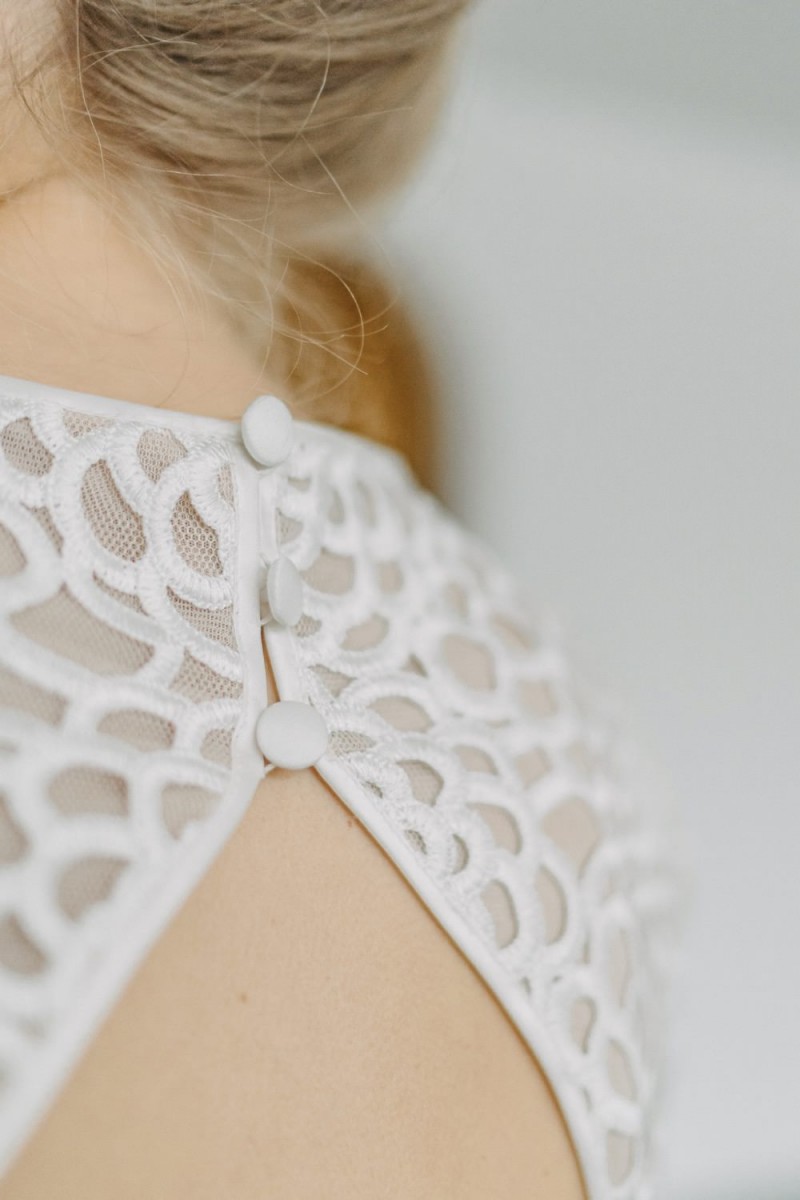 Insgesamt sind vier Standesamtkleider der im Frühjahr veröffentlichten kurzen Brautkleid-Kollektion in die neue Kollektion übernommen worden: Fleur, Dahlia, Lilli und Ivy. Hier lassen sich lange Röcke ganz einfach für die 2-in-1-Brautkleid-Variante anknöpfen oder dauerhaft auswechseln. Darüber hinaus gibt es fünf verschiedene Röcke, eine Hose und zwei Hosenröcke in variantenreichen Schnitten, die sich mit acht Oberteilen zu Standesamt- und Hochzeits-Outfits kombinieren lassen. On top hat die Designerin zwei Jumpsuits für die urbane Braut kreiert. Im Zentrum stehen leichte Stoffe wie Chiffon, Tüll, Organza, Viskose und Jersey – die Oberteile begeistern mit raffinierten Spitzen von modern bis romantisch-verspielt.