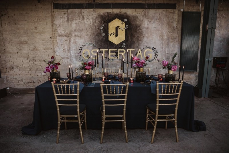 Fotografiert von gleich zwei Hochzeitsfotografen – Nicole Bühler & Maik Thorwart von Der Bilderbua, dürfen wir uns heute gemeinsam in den Sternenhimmel flüchten. Unterstützt von Hochzeitsvideograf Ion Buzu von tudor art, ging es für sie in die Eventlocation Ostertag, die mit ihrem coolen Industrial Look bereitstand. Hier hat uns die bezaubernde Hochzeitsplanerin Lena Freitag eine Hochzeitsinspiration, wie vom Nachthimmel geküsst, gezaubert. Organisiert und geplant, setze sie bei diesem tollen Hochzeitskonzept auf intensive Blautöne, die vom Glanz goldener Elemente, sowie opulenter, purpurfarbener Floristik umhüllt wurden.