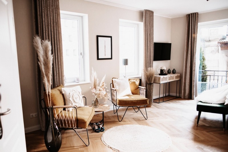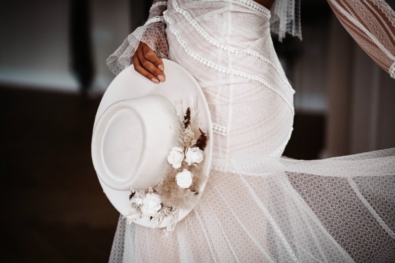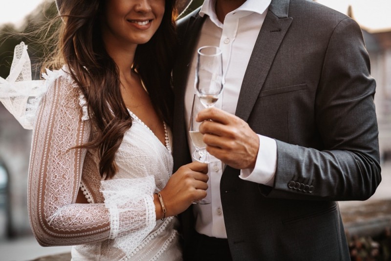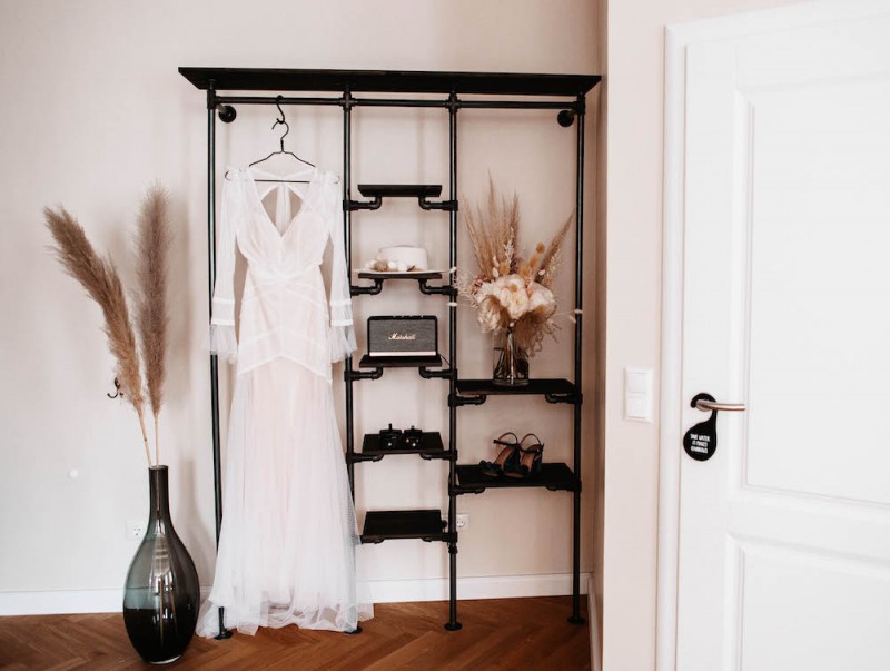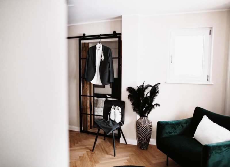 Zu zweit zum Standesamt und bei einem sogenannten Elopement heiraten. Eigentlich kein neuer Trend, aber ein Trend der noch nie so aktuell war wie in Zeiten von Corona. Wie schön es sein kann, so intim zu feiern, das könnt ihr heute in dieser schönen Hochzeitsinspiration eines wunderschönen Elopements im modernen Bohostil mit glamourösem Touch entdecken. Organisiert vom Brautmodengeschäft Anziehungskraft und den beiden Hochzeitsfotografen Steffi & Yannick von Wundertoll Fotografie, feierten Rosalie & Ricardo im schönen Loft1540 in Fulda ihren Hochzeitstag. Schon diese Location, führt den modernen Bohotouch, gepaart mit eleganten Zügen, ein. Die Boutique-Ferienwohnungen des Loft1540 eignen sich einfach perfekt für das Getting Ready der beiden. Jeder für sich in einer eigenen Suite, machen sich beide getrennt fertig um dann gemeinsam zum Standesamt zu laufen. Fotografiert, ebenfalls von Wundertoll Fotografie, und zudem videografisch begleitet von Johannes Ruppel, müssen die beiden nicht auf die schönen Erinnerungen an diesen besonderen Tag verzichten. In einem modernen Bohobrautkleid von Mia Lavi und blauen Brautschuhen von Mime et moi, beides gefunden bei Anziehungskraft, treffen wir hier eine wunderschöne und stilsichere Braut an. Gestylt wurde sie für ihren Hochzeitstag von Hair & Makeup Artist Marie-Luise Weber, die ihr ein elegantes Styling in Gold- und Bronzenuancen kreierte, das durch einen blumengeschmückten Hut von Wild Floral Hat Jewelry perfekt abgerundet wurde. Dazu trägt sie feinen Schmuck von der Aureus Goldschmiede und einen wilden Brautstrauß aus Trockenblumen und weißen Pfingstrosen von LOFT5 by Simone Döring. So bezaubernd trifft sie auf ihren Bräutigam, der in einem Anzug von Rhönblut und coolen Sneakern von 43einhalb in der Lobby aufgeregt auf seine Braut wartete. Der leckere Whisky von Schlitzer Destillerie, einer der ältesten Destillerien der Welt, konnte diese Aufregung sicher nur bedingt verringern. Kein Wunder bei so einer hübschen Braut! Natürlich dürfen auch bei einer Hochzeit zu zweit feine Köstlichkeiten nicht fehlen! Schließlich ist es ein genauso besonderer und kostbarer Hochzeitstag, wie mit Gästen. Dafür war dementsprechend ebenfalls gesorgt! Eine moderne Hochzeitstorte in Schwarz mit Blattgold verziert und mit weißen Pfingstrosen dekoriert, sowie leckere Pralinen zauberte Lembachs Konditorei für die beiden. Für den intimen Sektempfang nach der Trauung, im schönen Fuldaer Schlosspark, sorgte Schmitt’s Delikatessen mit feinen Häppchen und Champagner. Ein absolut gelungener Tag, der ganz offensichtlich nichts von seiner Magie verloren hat! Und ihr dürft euch nun selbst von der Magie verzaubern lassen! Ganz viel Freude euch mit den tollen Bildern!