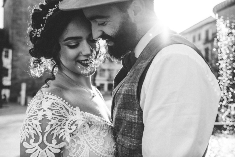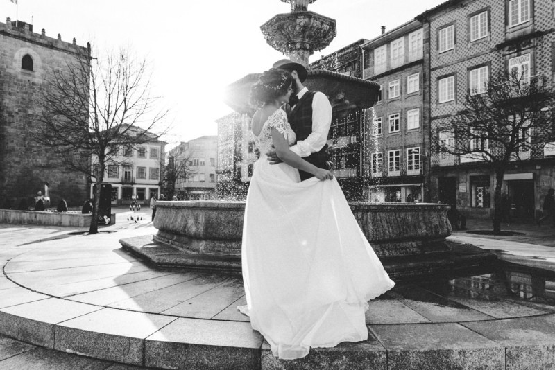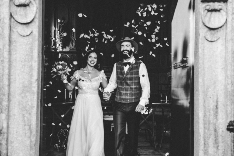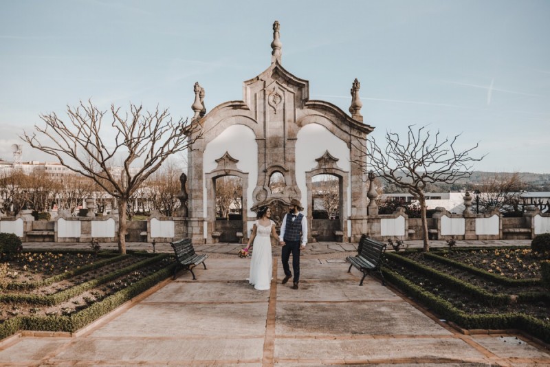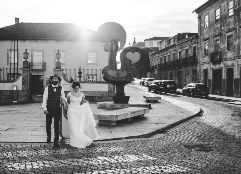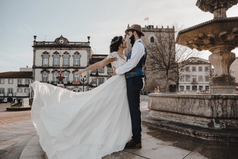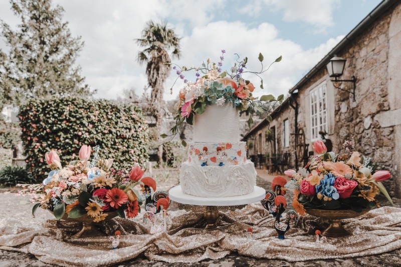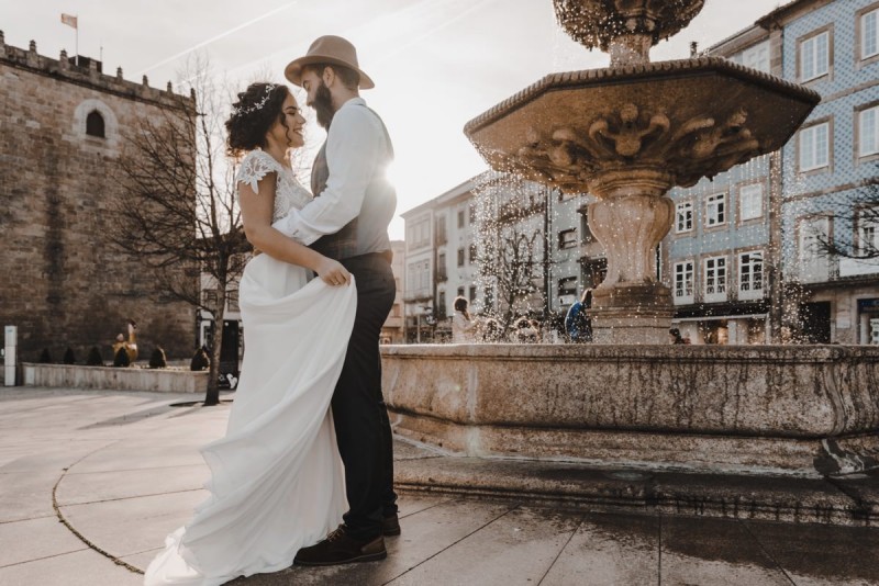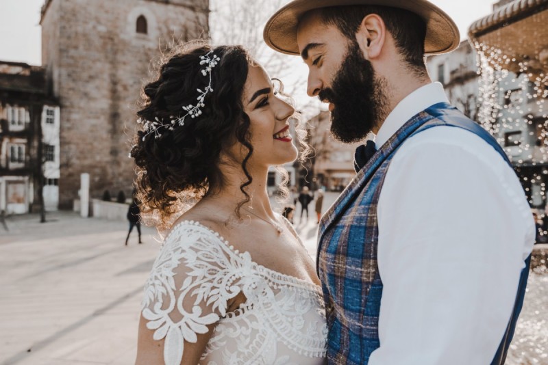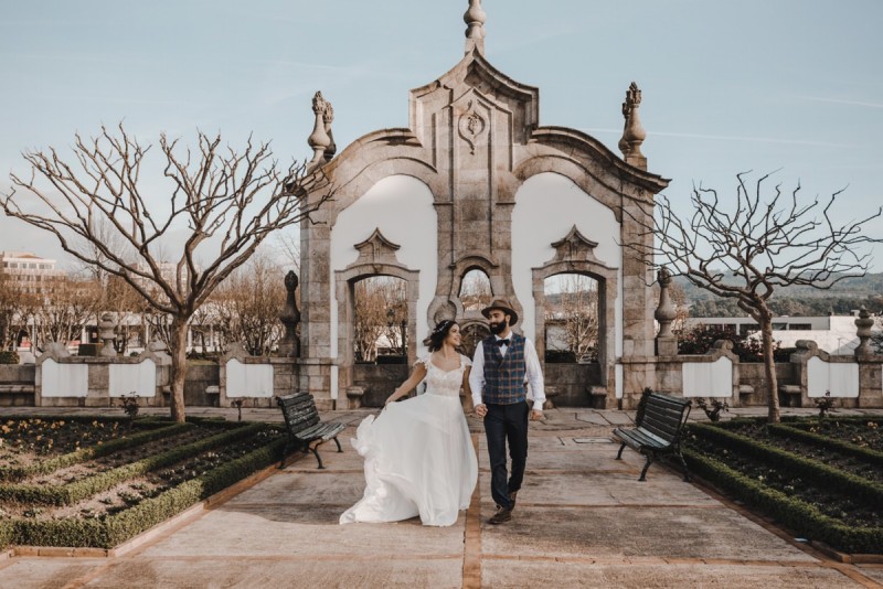 Oh du schönes Portugal! Ein weiteres Mal dürfen wir uns auf den Weg in dieses sonnenverwöhnte Land machen. Für diese wunderschöne Inspiration einer Sommerhochzeit ging es in eine kleine Gemeinde namens Várzea, welches zum Kreis Barcelos gehört. Der portugiesischen Stadt Barcelos, im Norden Portugals, entstand eine besondere Legende, welche das Herzstück dieser Inspiration wurde. ‚O Galo de barcelos‘ (auf Deutsch ‚Hahn aus Barcelos‘), die Legende des Hahns wurde bei dieser Inspiration ganz bezaubernd inszeniert und einer alten Tradition wurde neues Leben eingehaucht! In der Finca Quinta de Santa Comba, erbaut im 18. Jahrhundert und ein Traum von rustikalem Charm, fand dieses Styled Shoot statt, welches, konzeptionalisiert und geplant von Coração Português Wedding Planer, von Hochzeitsfotografin Evelina Galinis fotografisch für uns festgehalten wurde. Der Innenhof der Finca hat es mir ganz besonders angetan. Hier wurde, zwischen grünen Pflanzen, alten Steinen und einem zauberhaften alten Brunnen, die Hochzeitsfeier kreiert. Durch das schöne Mobiliar von O Saltimbanco, und die farbenfrohe Dekoration und Floristik von Real Sonho Event Planning, entsteht ein rustikales Farbspektakel. Perfekt für eine sommerliche Hochzeit, bei der bis in den frühen Morgen gefeiert, getanzt und gelacht wird! Natürlich mit direktem Bezug zum traditionellen Hahn. Die Hochzeitspapeterie wurde ebenfalls von Real Sonho Event Planning kreiert. Mit ihrer modernen Inszenierung des folkloristischen Musters gibt sie bereits einen wunderbaren Vorgeschmack auf diese sommerliche sowie farbintensive Hochzeit. Diese finden sich übrigens auch auf der zauberhaften Hochzeitstorte von Nice Cakes. Elegantes Weiß, feine bunte Details und zwei kleine Hähne, treffen bei diesem zweistöckigem Exemplar auf einen opulenten Caketopper aus Blumen! Ein weiteres Highlight der Location ist die alte Kapelle, in der das hübsche Brautpaar eine kleine aber feine Trauzeremonie zelebrieren durfte. Das süße Brautpaar dieser Inspiration, das sind Diana & Victor. Diana trägt hier ein wirklich bezauberndes Brautkleid mit grober Spitze und fließendem Rock von O Sonho de Cinderela. Sie kreierten ebenfalls ihr feines Hairstyling, das einfach perfekt zu einer langen Sommernacht passt. Zu diesem locker gebundenen Look, samt feinen Bridalheadpiece von Qurivesaria Milhazes, zauberte ihr Alexandra Castro ein ausdruckstarkes Makeup, das, perfekt passend zum bunten Brautstrauß, ihr Temperament unterstreicht. Kein Wunder, dass ihr Bräutigam Victor, in seinem lässigen Bräutigam Outfit von Don Lopo Concept Store, nicht mehr aufhören konnte zu strahlen! Zu späterer Stunde ging es für die beiden noch durch die kleinen Gassen der Innenstadt. Malerisch wie ich finde! Hier wurde eine wirklich besondere Hochzeitsinspiration geschaffen! Mit viel Liebe zum Detail und besonders zur Tradition, wurde hier eine Sommerhochzeit inszeniert, die man sich in Zeiten von Corona sogar nach Hause holen kann!