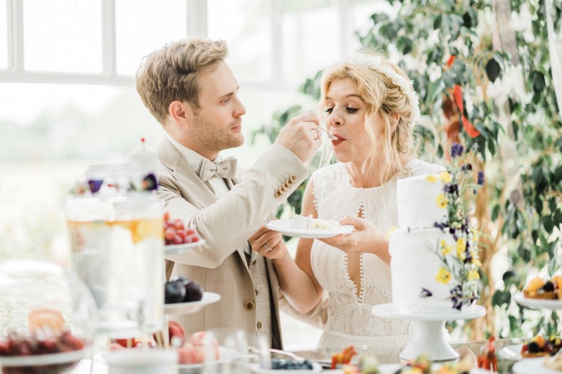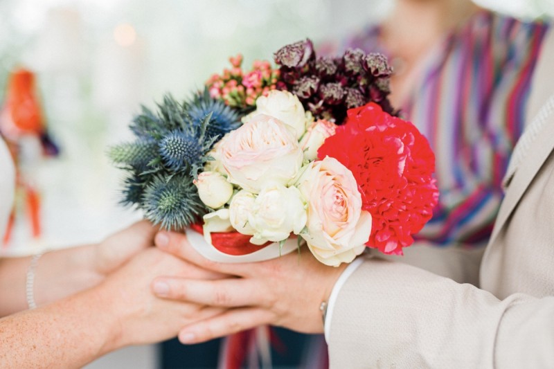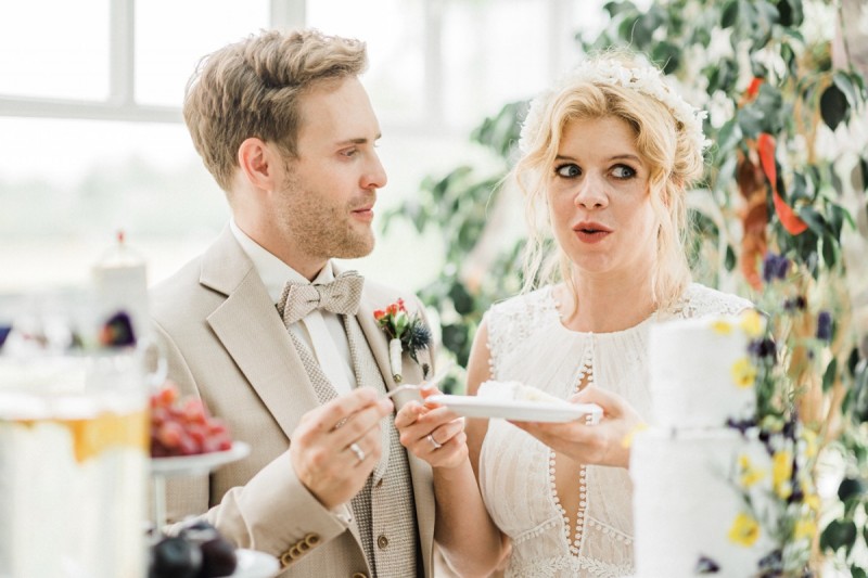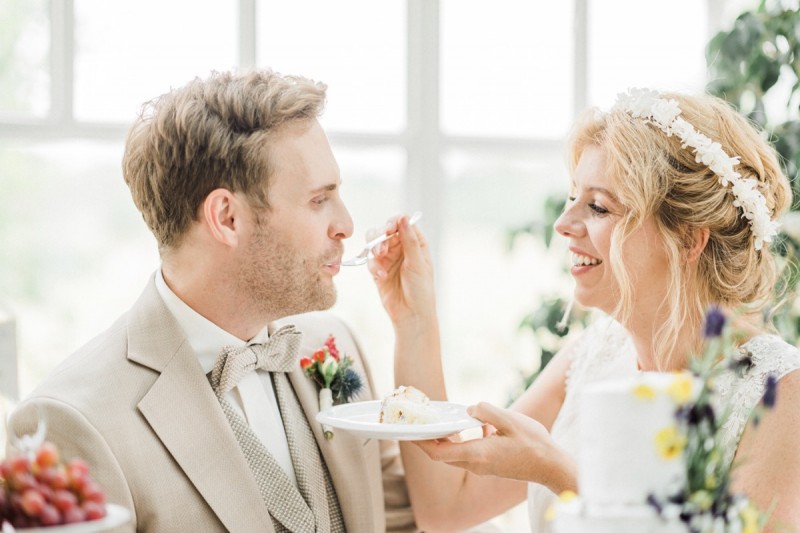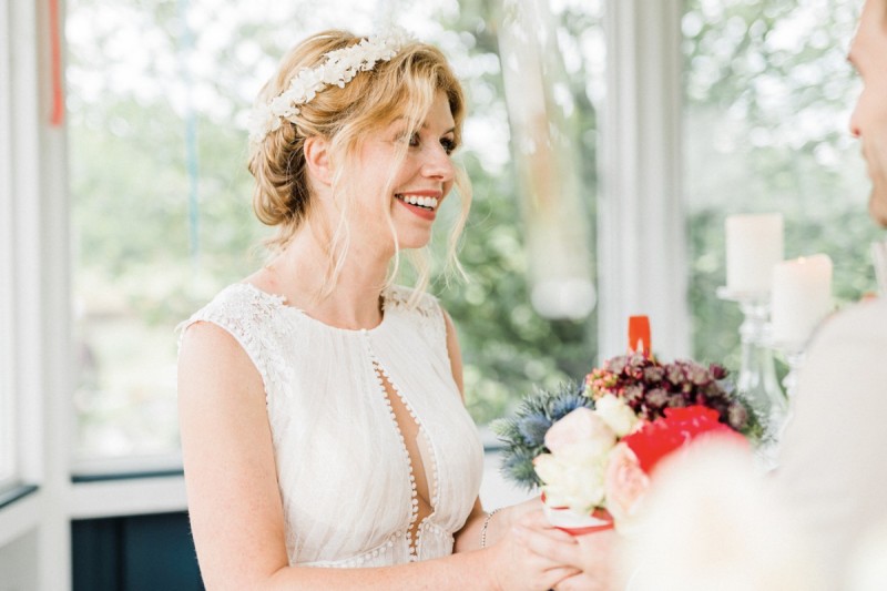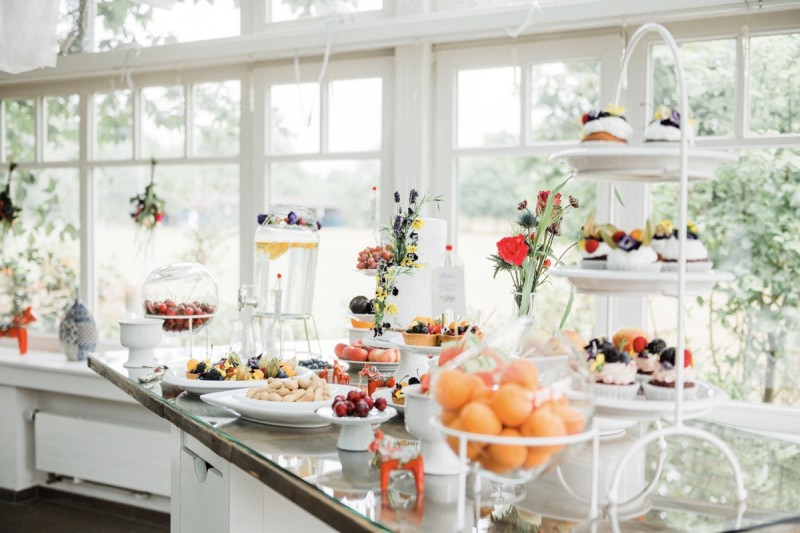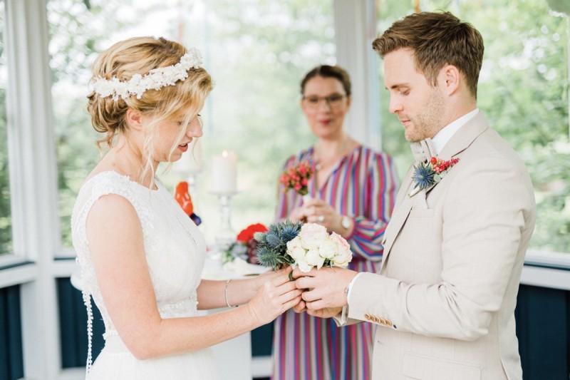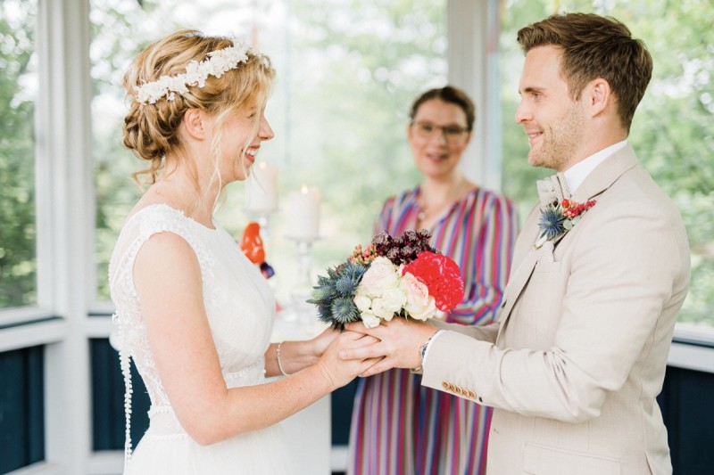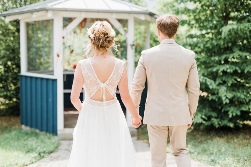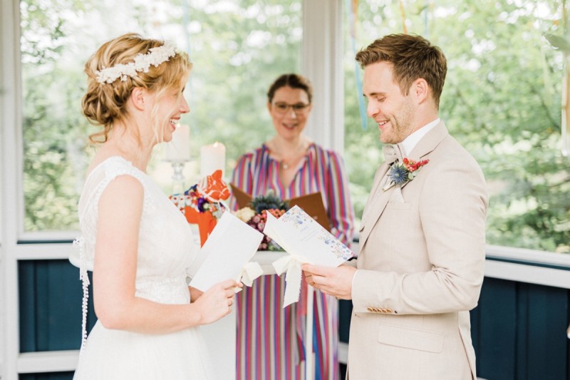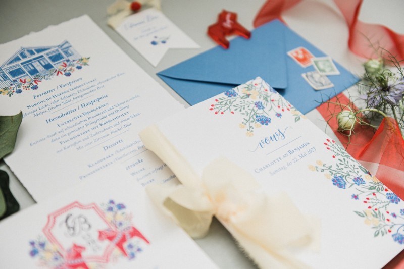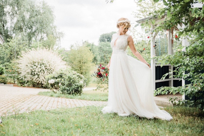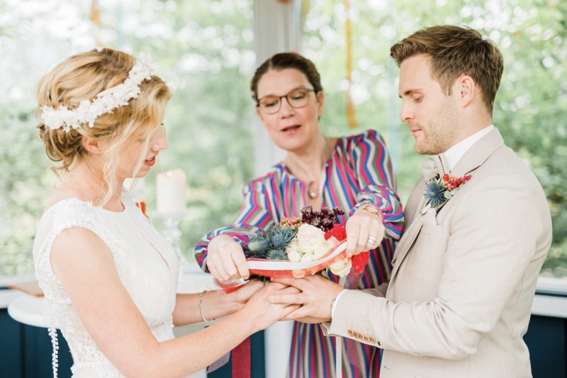 Eine Sommerhochzeit wie im schönen Skandinavien. Ein Land das für seine Natürlichkeit und seine Lebensfreude bekannt ist. Für diese Hochzeitsinspiration, einer Sommerhochzeit im skandinavischen Stil, wurden die schönsten Rituale und Bräuche Skandinaviens mit Leichtigkeit und Eleganz versehen. Farbenfroh zeigt sich hier der liebevolle Folklorestil, der in allen Farben Lebensfreude ruft. Mit Bedacht auf schlichte Details, erhält diese Inspiration einen modernen und leichten Touch, der es ermöglicht, dieses Konzept für jedermann zugänglich zu machen. Kreiert von Hochzeitsfotografin Heike Moellers, die selbstverständlich auch den fotogarfischen Part übernahm, und Hochzeitsplanerin Elke Nehring von First Weddingplanner, die zudem das Styling und die Dekoration dieser Inspiration zauberte, finden wir uns hier im schönen Restaurant Heavens wieder, das in einer blauen Holzhütte beheimatet, direkt an Skandinavien erinnert. Die Freie Trauung fand in einem schnuckeligen Pavillon statt. Geschmückt wurde dieser von Event Floristik Barion mit bunten Bändern im Inneren und im Außenbereich mit kleinen, hängenden Reagenzgläsern, die mit einzelnen Schnittblumen versehen wurden. Hier hielt Traurednerin Anja von Goldröschen eine freie Trauzeremonie für das süße Brautpaar, für die sie sich ein ganz besonderes Blumenritual überlegt hatte. Bezogen auf einen schwedischen Midsommer Mythos, gibt es sieben unterschiedliche Blumensträußchen. Jeder steht für einen besonderen Wunsch des Brautpaares. Diese werden nach und nach zu einem Strauß durch das Brautpaar selbst zusammengebunden um so die eigene Zukunft untrennbar zu vereinen. Die Ringe der beiden, die im Anschluss an dieses Trauritual getauscht wurden, warteten die Zeremonie über auf einem Dala Pferdchen, das hier als besonderes Ringkissen herhalten durfte. Dieses könnt ihr in dieser Inspiration sehr oft entdecken! Zum Beispiel in Kombination mit der farbenfrohen und detailverliebten Hochzeitspapeterie von Fanfare Paper Goods. Oder auch in der schönen Dekoration der Location für die anschließende Hochzeitsfeier. In Anlehnung an einen uralten viktorianischen Brauch, kreierte First Weddingplanner die Tischdekoration mit etwas Altem, Neuem, Blauem und Geliehenem. Damit niemand sein Glas vertauschte, fanden sich kleine Plexiglas Dala Pferchen mit dem jeweiligen Namen auf dem Weinglas. Passend dazu der Sitzplan mit einem Logo der Einladungskarte: eine Skizze der Location gedruckt und gefräst von Pimp Your Wedding. Auch der Sweet Table dieser Inspiration ist etwas anders gestaltet. Neben einer wunderschönen, blumengeschmückten Hochzeitstorte und dazu passenden Cupcakes und Cookie Cups von Cook & Cookies, gibt es hier eine Fülle von frischen Früchten. Natürlich sind auch die Blumen auf der Cremetorte essbar. So wie das erfrischende Infused Water ist alles hier zu entdeckende leicht und fruchtig. Perfekt für eine heiße Sommerhochzeit! Das süße Brautpaar, das hier mit ganz viel Natürlichkeit durch den Tag strahlt, hat diesen schönen Tag ganz offensichtlich mehr als genossen. Die Braut trug, passend zu den leichten Sommervibes, eine dezente Flower Crown in Weiß zu ihrem zarten Brautkleid von Gala Suknie Ślubne. Beides stellte das Hochzeitshaus Struck, sowie im Übrigen auch den hellen Anzug, samt Weste, des Bräutigams. Der Brautsalon kreierte der hübschen Braut zu ihrem fließenden Brautkleid und ihrem Blumenhaarschmuck ein ausdrucksstarkes Makeup und einen lockeren Dutt, die ihre natürliche Schönheit unterstrichen. So tanzten die beiden durch diese tolle Hochzeitsinspiration. Und auch ihr dürft es nun dem Brautpaar gleich tun und all die schönen Details dieser Inspiration einer skandinavischen Sommerhochzeit genießen! Ganz viel Freude euch!