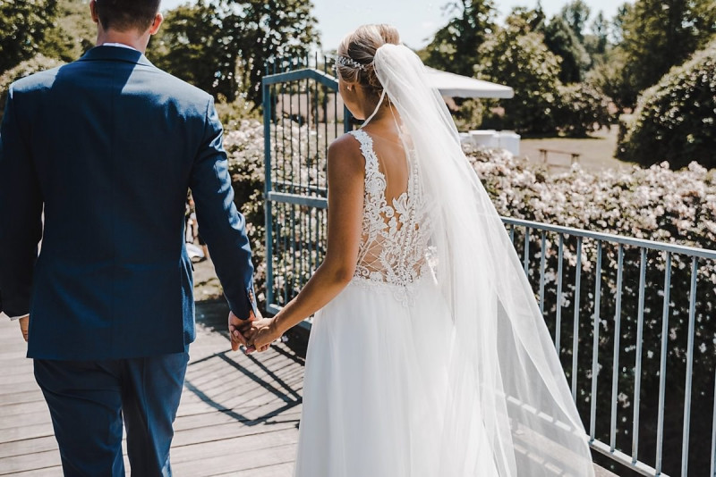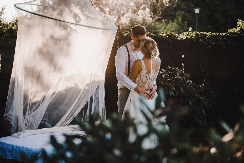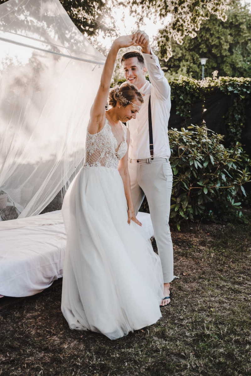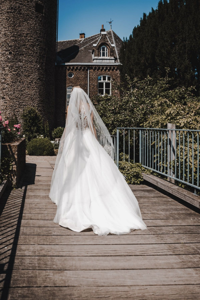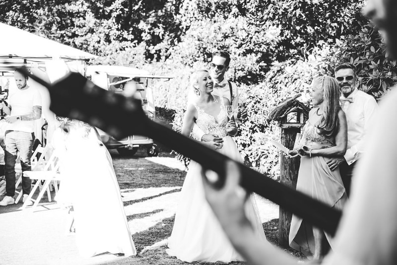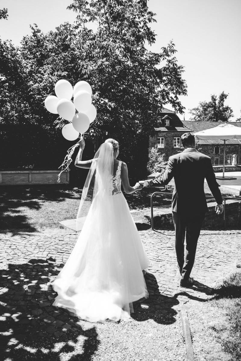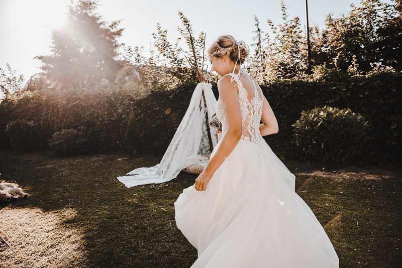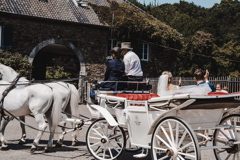 Ich freue mich riesig, euch diese wunderschöne Gartenhochzeit zeigen zu dürfen! Wie der Titel schon verrät, ging es für das Brautpaar Antonia & Alex am 30. Juni diesen Jahres, nach der standesamtlichen Trauung im hübschen Schloss Linnep, mit der Kutsche zur Hochzeitsfeier in den eigenen Garten! Der eigentliche Plan, ganz allein, nur mit den beiden geliebten Hunden, in Österreich am Wasser mit Blick auf die Berge zu heiraten, verflog sofort, als das Brautkleid wie eine Bombe einschlug. “Aber dann verliebte ich mich in mein Kleid. Von da an stand fest, mit so einem Kleid kann man nicht einfach in den See springen und heiraten.” Und so kam es, dass die beiden ihre Planung komplett umschmissen. Das Wichtigste für diesen einmaligen und besonderen Tag? “Wir wollten es für uns!” Der gesamte Tag sollte den beiden gehören und sie absolut glücklich machen. Dies zog sich wie ein roter Faden durch die ganze Planung. Offensichtlich, das absolute Erfolgsrezept! Es war wichtig, dass sich die kleine Hochzeitsgesellschaft und auch die liebevollen Dienstleister wohl fühlten. Jeder Gast war von ganzem Herzen gewünscht und trug seinen Beitrag zu dieser ganz besonderen Feier bei. Es war laut, lustig und ausgelassen! “Es war großartig!” Ich finde, die beiden haben einen Garten Eden geschaffen, in dem Liebe zu wirklicher Perfektion führt. Denn die liebevolle, kreative und detailverliebte Planung und Arbeit aller Beteiligten, führt zu eben diesem wunderschönen Tag! Eine absolut grandiose Hochzeitsinspiration für die Hochzeitsfeier im eigenen Garten oder im Grünen!