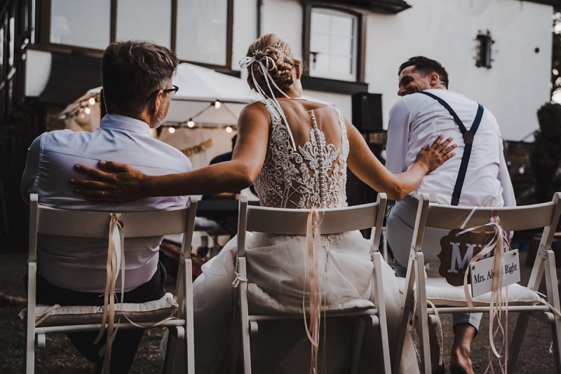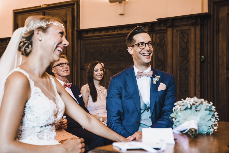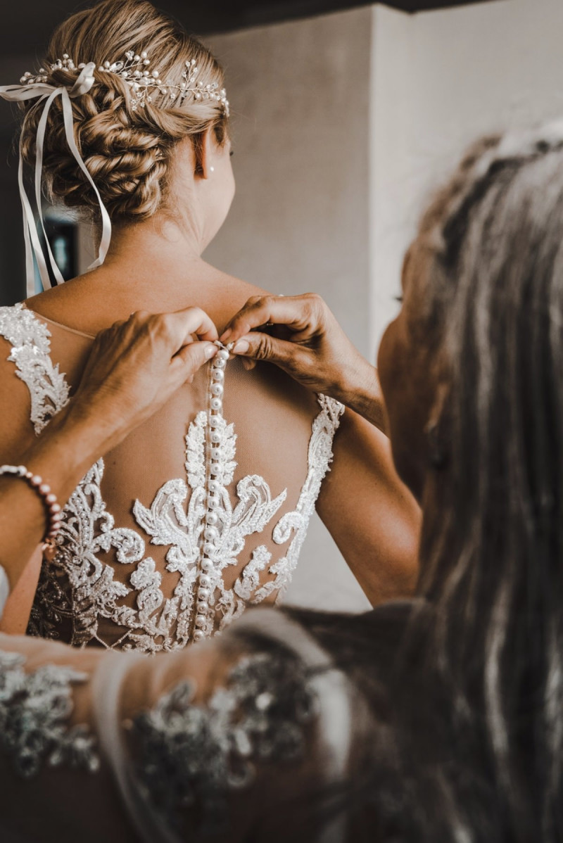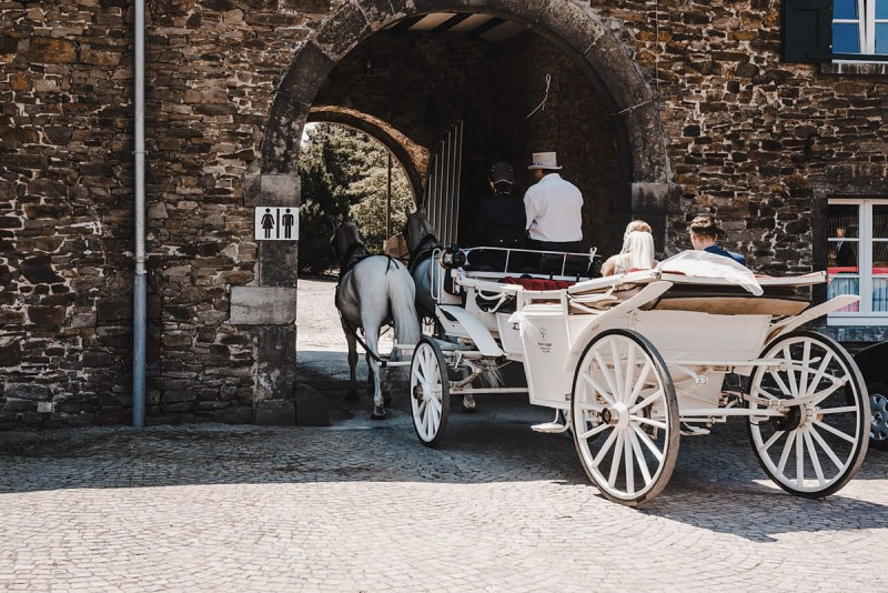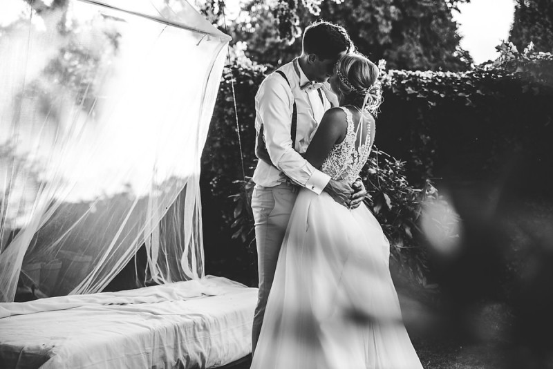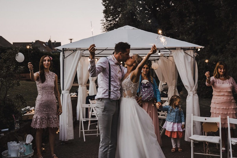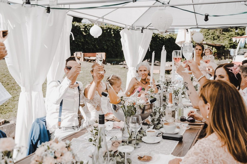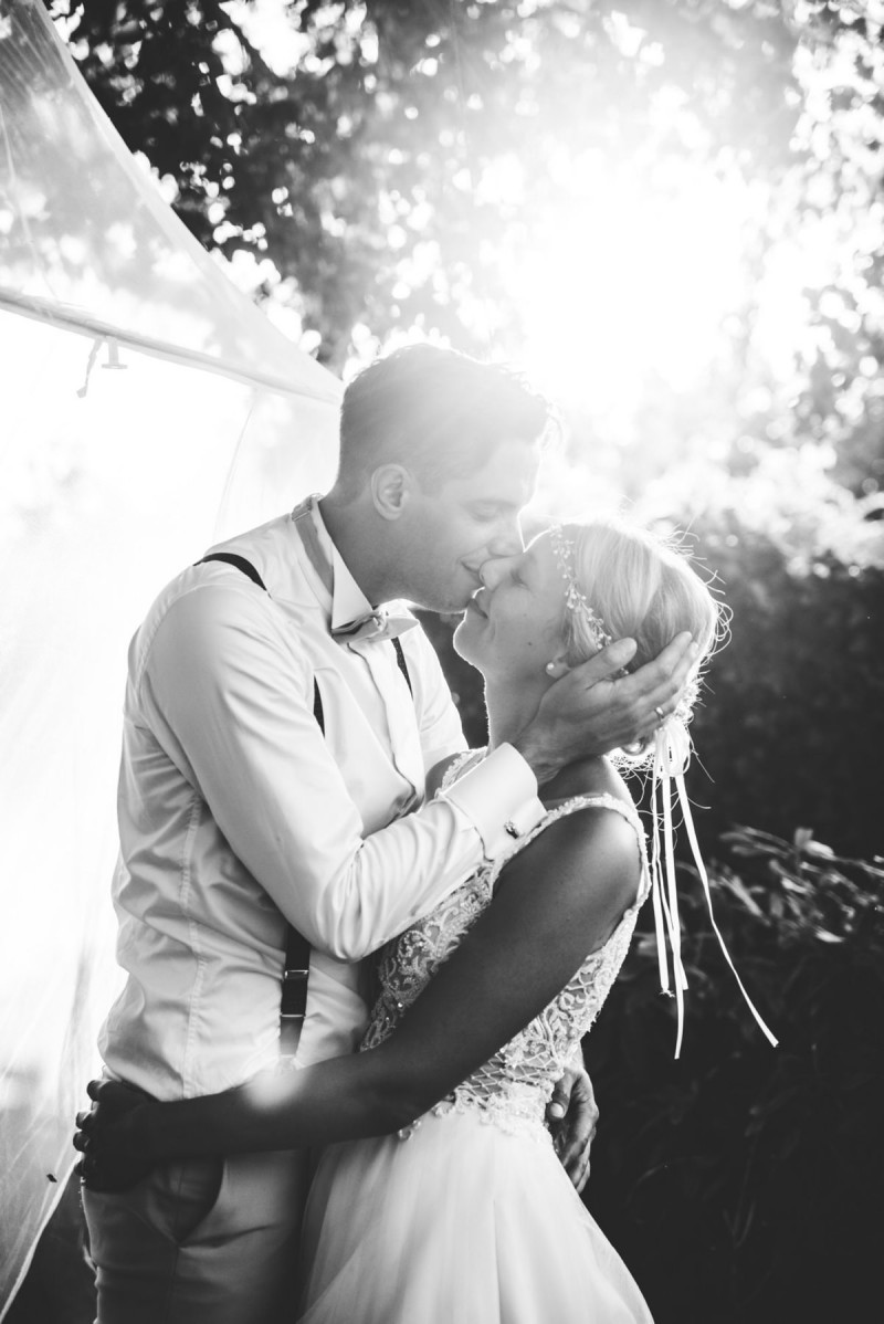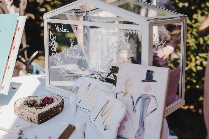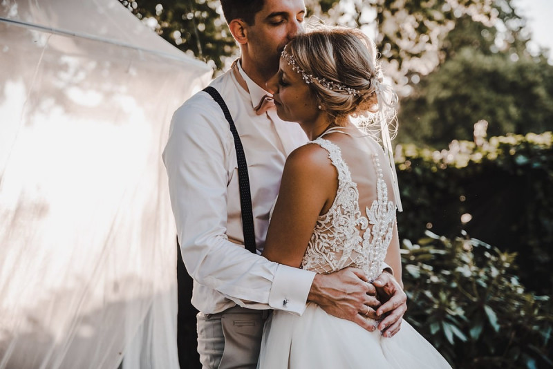 Ich freue mich riesig, euch diese wunderschöne Gartenhochzeit zeigen zu dürfen! Wie der Titel schon verrät, ging es für das Brautpaar Antonia & Alex am 30. Juni diesen Jahres, nach der standesamtlichen Trauung im hübschen Schloss Linnep, mit der Kutsche zur Hochzeitsfeier in den eigenen Garten! Der eigentliche Plan, ganz allein, nur mit den beiden geliebten Hunden, in Österreich am Wasser mit Blick auf die Berge zu heiraten, verflog sofort, als das Brautkleid wie eine Bombe einschlug. “Aber dann verliebte ich mich in mein Kleid. Von da an stand fest, mit so einem Kleid kann man nicht einfach in den See springen und heiraten.” Und so kam es, dass die beiden ihre Planung komplett umschmissen. Das Wichtigste für diesen einmaligen und besonderen Tag? “Wir wollten es für uns!” Der gesamte Tag sollte den beiden gehören und sie absolut glücklich machen. Dies zog sich wie ein roter Faden durch die ganze Planung. Offensichtlich, das absolute Erfolgsrezept! Es war wichtig, dass sich die kleine Hochzeitsgesellschaft und auch die liebevollen Dienstleister wohl fühlten. Jeder Gast war von ganzem Herzen gewünscht und trug seinen Beitrag zu dieser ganz besonderen Feier bei. Es war laut, lustig und ausgelassen! “Es war großartig!” Ich finde, die beiden haben einen Garten Eden geschaffen, in dem Liebe zu wirklicher Perfektion führt. Denn die liebevolle, kreative und detailverliebte Planung und Arbeit aller Beteiligten, führt zu eben diesem wunderschönen Tag! Eine absolut grandiose Hochzeitsinspiration für die Hochzeitsfeier im eigenen Garten oder im Grünen!