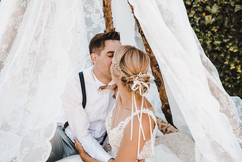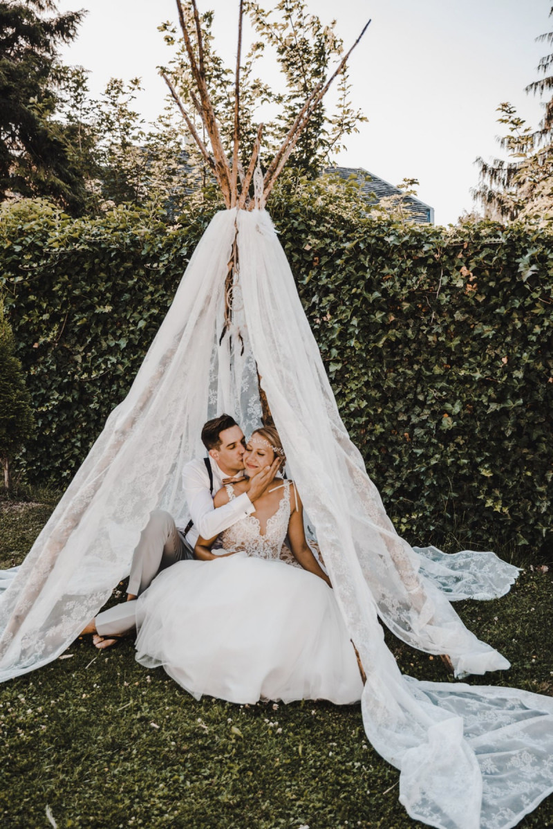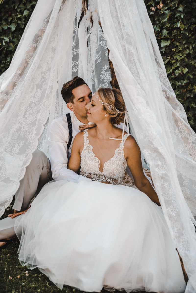 Wunderschön festgehalten hat den großen Tag von Antonia & Alex die liebe Evelina von Evelina Galinis Fotografie. Dazu gibt es ein wundervolles Hochzeitsvideo von Jubeljung Hochzeiten, das ihr ganz unten finden könnt. Zunächst zu den Details der Location: Das zauberhafte Blumentipi, so wie die verliebte Floristik ist von Die Ideenschmiede, und das hübsche Mobiliar in Form von Tischen und Stühlen von Romantisch. Für die tolle Torte und die leckeren Sweets sorgte Rocaille Brasserie. Ebenfalls für das leibliche Wohl der Gäste vor Ort, der Foodtruck von Delibon Cologne und der süße Coffee Ape von Perfetto Piaggio. Nun zum hübschen Brautpaar: Antonia strahlte in einem Traumkleid von Hochzeitshaus Struck mit dem passenden Haarschmuck von La Chia Headpieces. Das Hair & Makeup zauberte Der Brautsalon. Alex strahlte in einem Anzug von Sons of Savile Row. Und auch musikalisch ließen die beiden nichts aus! Für die perfekte Stimmung dieser Sommerhochzeit sorgten das Jazz Duo Pea & Pet, der Sänger Martin Herzberg & Freunde und der Pianist Jinando Music. Und jetzt, lasst euch verzaubern!