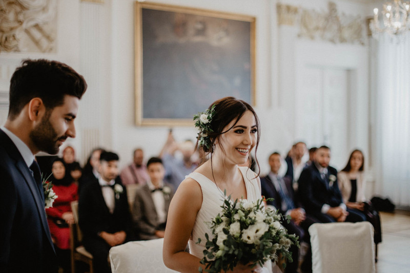 Am 7. Juli 2017 gaben sich Hasret und Okan, fotografisch begleitet von Steffen & Christin Photography, im Standesamt in Salzgitter, das Ja-Wort und unterschrieben ihr großes Glück. Das Augenmerk der beiden lag auf ihrer Liebe und auf ihren Liebsten, wodurch diese standesamtliche Hochzeit eine sehr coole Inspiration ist! Warum? Das wunderschöne Brautkleid ist nicht etwa aus einem fancy bridal concept store, sondern von Zalando! Die Schuhe ähneln den beliebten Jimmy Choos, sind es aber nicht. Das Make-up hat die Braut selbst gemacht, die Haare zauberte die Brautmutter. Ihr Brautstrauß ist von Flora. Der Bräutigam strahlt in einem Anzug von Sarar und das hübsche Ringkästchen ist von H&M und wurde von der Braut selbst geschmückt. Versteht mich nicht falsch, durchgestylte Hochzeiten sind toll! Aber ist die wichtigste Message einer Hochzeit nicht, dass das Brautpaar strahlt? Egal in welchem Umfeld oder Style? Daher: Macht euer Ding! Viel Freude ihr Lieben!