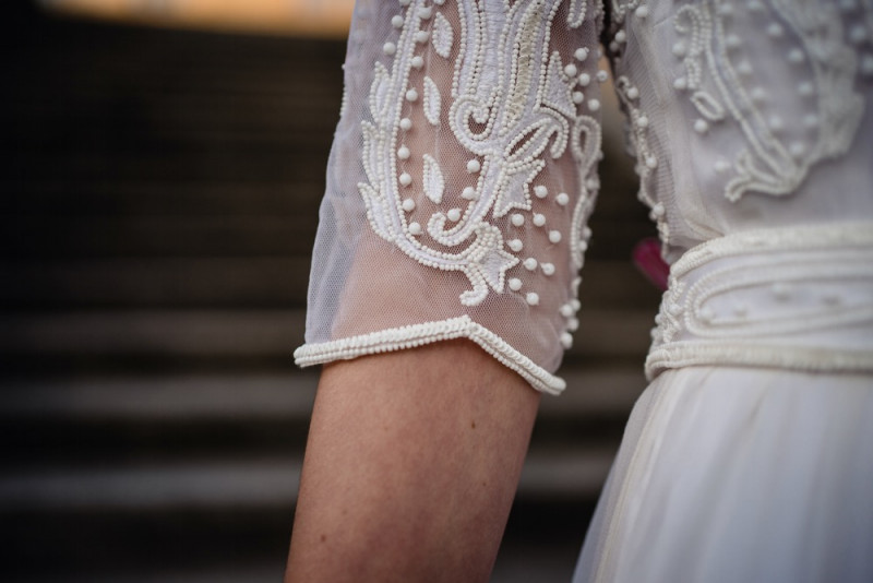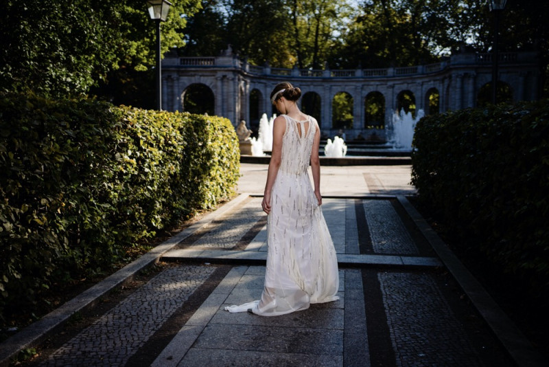 Tilda Knopf Bridal stellt ihre “Dazzling Dreams” Kollektion vor. Mit modernen Schnitten und Details aus der goldenen Ära soll sie das Jetzt mit der Vergangenheit verbinden. Das Berliner Modelabel TILDA KNOPF BRIDAL steht für mondäne Eleganz, Handwerksqualität und die Anmut der 20er Jahre. Die erste Kollektion beinhaltet sechs Kleider, wovon jedes handgefertigt und maßgeschneidert wird. “Für mich war es wichtig der Ästhetik der 20er Jahre treu zu bleiben und gleichzeitig eine zeitgemäße Silhouette zu kreieren. Die Kollektion kann also auch unabhängig vom Hochzeits-Thema getragen werden”, erklärt Virginie Henzen, die Gründerin von TILDA KNOPF BRIDAL. Das Thema der Kollektion ist “Dazzling Dreams” – glanzvolle Träume. Das Motiv spiegelt sich durch die Verwendung von glänzenden Perlen und schillernden Tasseln wieder, welche zu floralen, geometrischen und Art-Dèco Mustern verarbeitet werden. Stickereien, Fransen-Säume, Cut-Out Details in den Rückenausschnitten würdigen den 20er Jahren. Durch die Verwendung von Stoffen wie Seiden-Chiffon, Taft, Georgette und Mesh verbunden mit Viskose Spandex Unterkleidern bieten die Brautkleider einen hohen Tragekomfort. Das Kleid Frida ist mit seinem Apricot-Farbton das Highlight der Kollektion. Die mehrlagige Robe besteht aus feinem Mesh mit kunstvollen elfenbeinfarbigen Blumenstickereien. Der herzförmige Ausschnitt unterstreicht die feminine Silhouette. Die Dazzling Dreams“-Kleider sind im Tilda Knopf Showroom in Berlin, sowie in der Boutique LE BOUDOIR in Berlin Friedrichshain und bei ELBBRAUT in Hamburg erhältlich.
