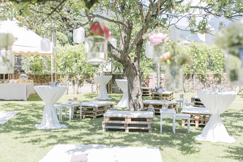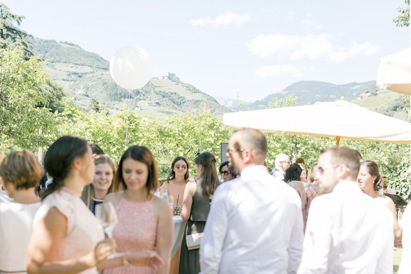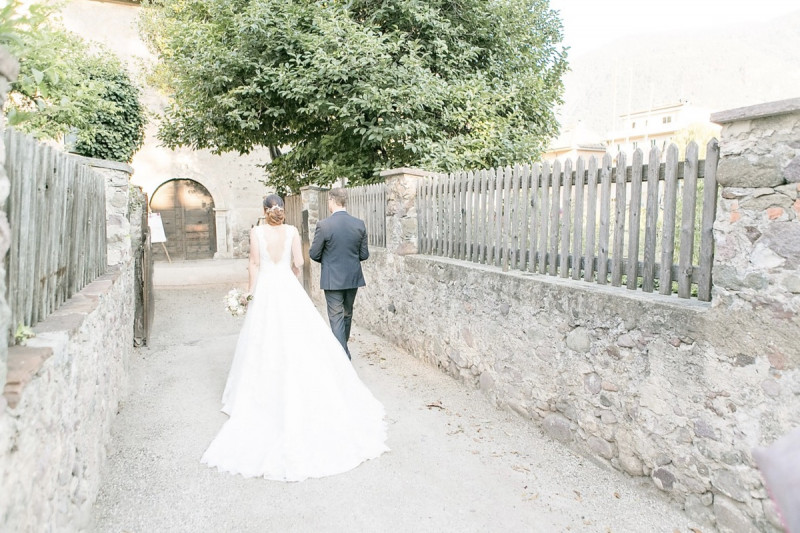 Verena & Moritz feierten ihre perfekte Sommerhochzeit am 16. Juni 2018 in Bozen im wunderschönen Südtirol. Die Sonne strahlte den ganzen Tag für die beiden, die sich das kirchliche Ja-Wort gaben. Inmitten von Weinbergen und umgeben von den Schlossmauern des Schloss Maretsch feierten sie eine wunderschöne Hochzeit im Grünen. Viele Details, wie Möbel aus Paletten, in den Bäumen hängende Blumenvasen und selbstgemachtes Eis warten darauf von euch entdeckt zu werden. Im Schloss wurde es vor allem Edel mit hohen Kerzenständern und ganz viel weiß. Das besondere an dieser Hochzeit? Verena ist mit Glücksgefühl – Eventmanufaktur selbstständige Hochzeitsplanerin und hat ihre eigene Hochzeit geplant! Umso schöner, dass sie uns an der Planung, ihren Gedanken wie auch Ängsten teilhaben lässt! Fotografiert wurde diese tolle Sommerhochzeit von Arabella and Michi Photography, die keines der feinen Details aus den Augen verloren haben. Dabei gehen auch die Floristik von Florale Werkstatt und die Dekoration von Florian PircherHand in Hand und ergeben ein wunderschönes Gesamtbild. Das Brautkleid von Verena ist ein Traum von Pronovias, das die klassischen Züge der Location aufnimmt und mit der langen Schleppe perfekt zum Schloss passt. Zu guter Letzt darf natürlich auch eine Hochzeitstorte nicht fehlen: Diese wurde von Rotentorhof kreiert. Und jetzt wünsche ich euch ganz viel Freude mit den Bildern der Hochzeit und den Worten der Braut!
