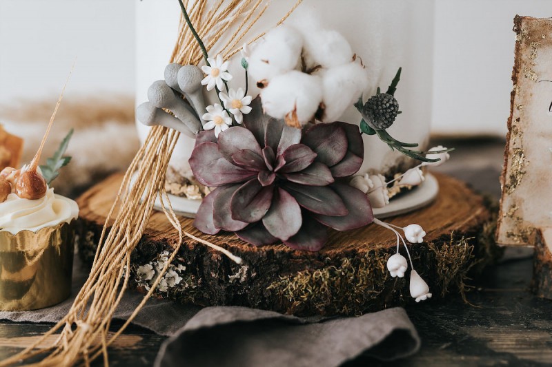 Zart, blumig und hell. Zarte Baumwolle trifft auf Sukkulenten und Disteln. Bohoeinflüsse durch die kleinen Makrameekunstwerke, die filigranen Wiesenblumen und die erdigen Töne. Understatement!