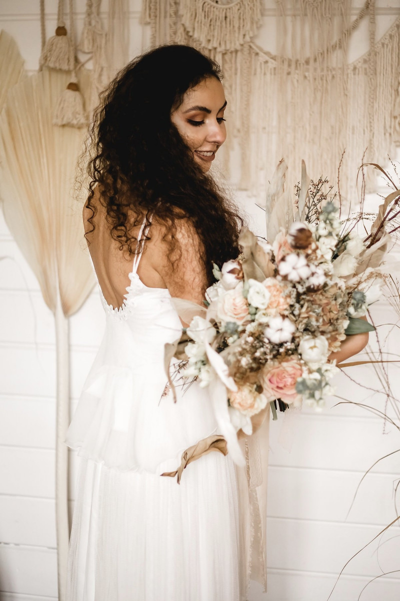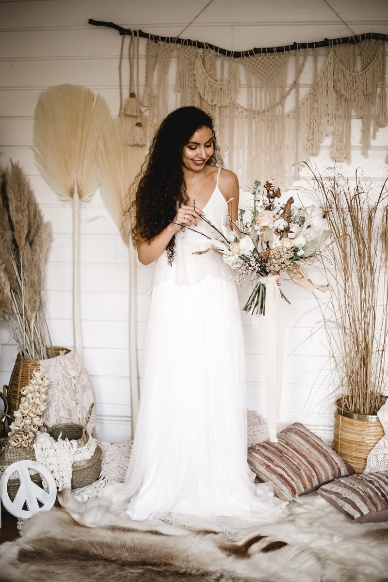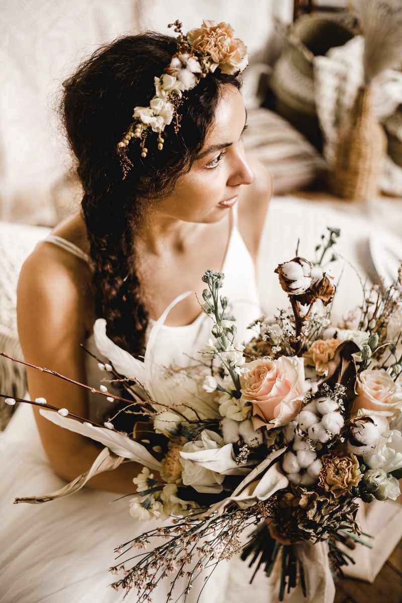 Heute erwartet euch eine wunderschöne Bridalstyle Inspiration, die nur so vor wunderschönen Ethnicalvibes strotzt! Wie ihr wisst, dank meines Bohoherzens, eine meiner ganz persönliche Schwächen. Im Beachhouse inszeniert, die hübsche Braut Aylin, umgeben von zarter folkloristischer Dekoration. Pampasgras, Makramee & Felle laden zum verweilen ein. In Kombination mit den wilden Blumen in natürlichen Farbtönen – Natürlich & dennoch atemberaubend. Fotografiert hat diese wunderbare Inspiration eines Bridaleditorials, die liebe Isabel Pogscheba. Das grandiose Konzept, genau wie Dekoration des Beachhouses, ist von The Featherette. Das natürliche Styling der hübschen Braut, in leichten Goldtönen übernahm die liebe Begüm. Für das passende Traum(Braut-)kleid sorgte die Rheinboutique Bonn. Dank Pixel meets Love, unterstreicht die einmalige Papeterie den ethical Look des Shootings. Ebenfalls im Fokus des Shootings, die Floristik, die Stilecht Floristik zauberte. Wild und ungestüm – dennoch zart und zurückgenommen. Und zu guter Letzt, die passenden Eheringe sind von Wilde Juwelen. Und jetzt wünsche ich euch ganz viel Freude mit dieser grandiosen Brautinspiration. Genießt die natürlichen und eindrucksvollen Züge dieses Shootings, das zum Träumen einlädt. Als kleines Goodie findet ihr unten noch eine kleines Editorial im Pocahontasstil.