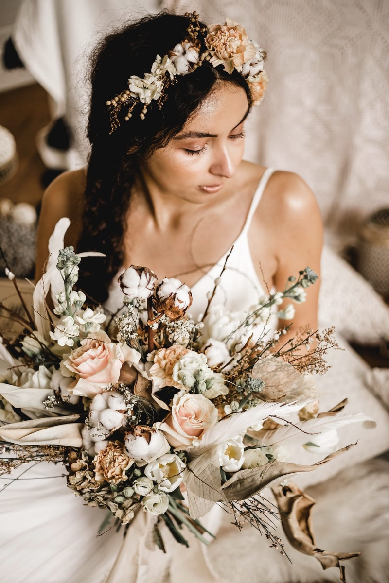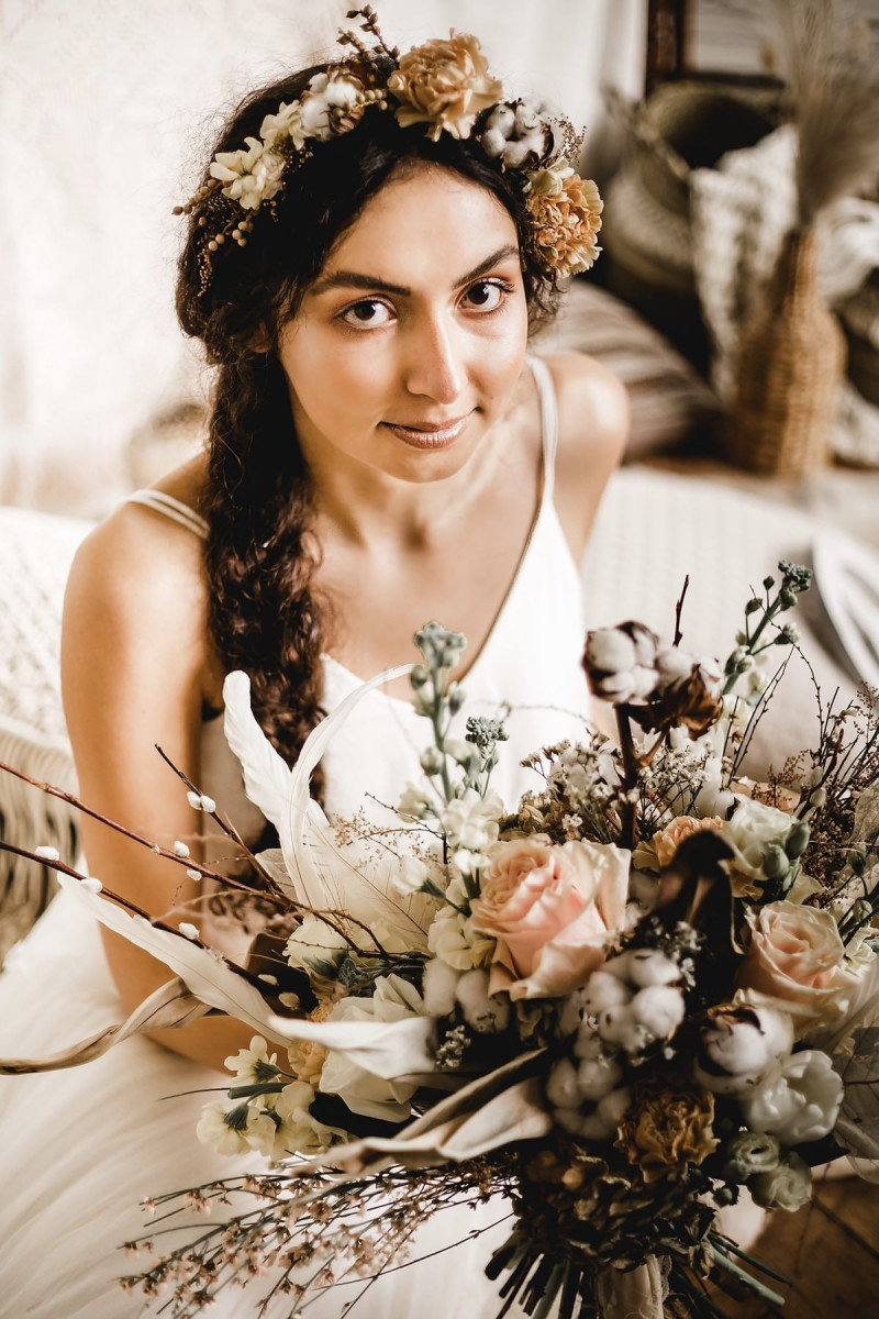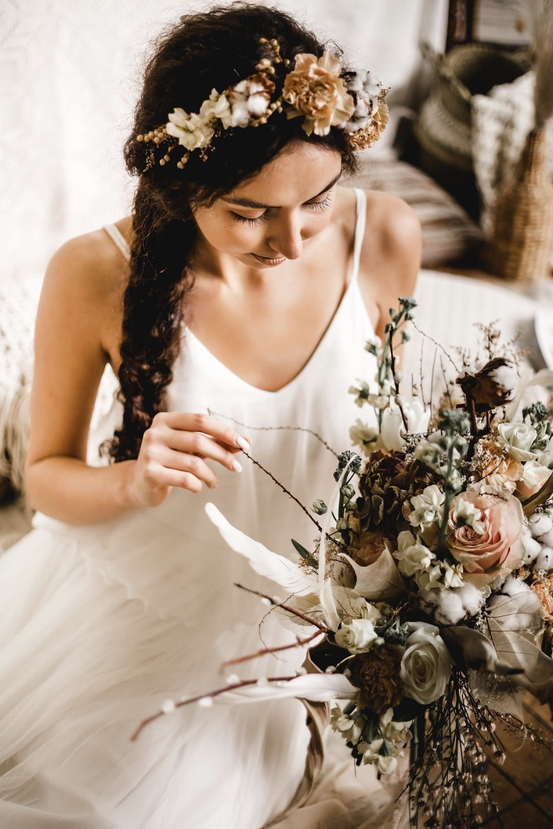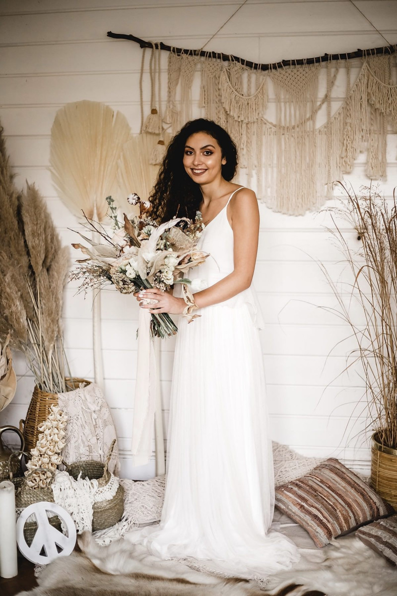 Heute erwartet euch eine wunderschöne Bridalstyle Inspiration, die nur so vor wunderschönen Ethnicalvibes strotzt! Wie ihr wisst, dank meines Bohoherzens, eine meiner ganz persönliche Schwächen. Im Beachhouse inszeniert, die hübsche Braut Aylin, umgeben von zarter folkloristischer Dekoration. Pampasgras, Makramee & Felle laden zum verweilen ein. In Kombination mit den wilden Blumen in natürlichen Farbtönen – Natürlich & dennoch atemberaubend. Fotografiert hat diese wunderbare Inspiration eines Bridaleditorials, die liebe Isabel Pogscheba. Das grandiose Konzept, genau wie Dekoration des Beachhouses, ist von The Featherette. Das natürliche Styling der hübschen Braut, in leichten Goldtönen übernahm die liebe Begüm. Für das passende Traum(Braut-)kleid sorgte die Rheinboutique Bonn. Dank Pixel meets Love, unterstreicht die einmalige Papeterie den ethical Look des Shootings. Ebenfalls im Fokus des Shootings, die Floristik, die Stilecht Floristik zauberte. Wild und ungestüm – dennoch zart und zurückgenommen. Und zu guter Letzt, die passenden Eheringe sind von Wilde Juwelen. Und jetzt wünsche ich euch ganz viel Freude mit dieser grandiosen Brautinspiration. Genießt die natürlichen und eindrucksvollen Züge dieses Shootings, das zum Träumen einlädt. Als kleines Goodie findet ihr unten noch eine kleines Editorial im Pocahontasstil.