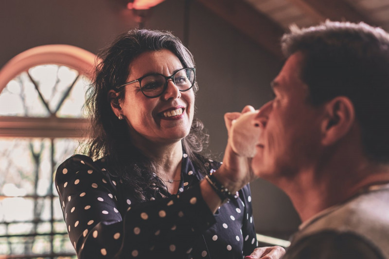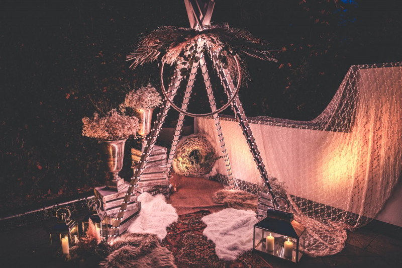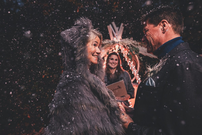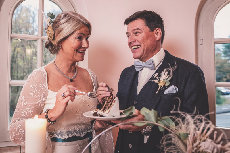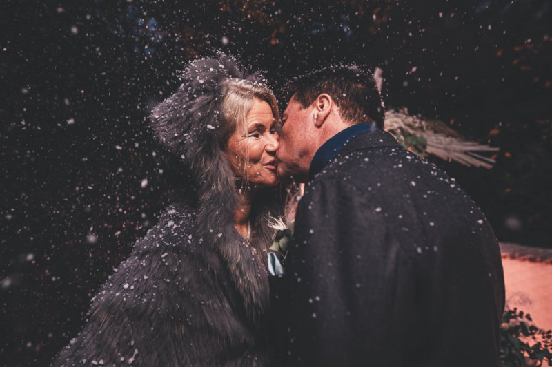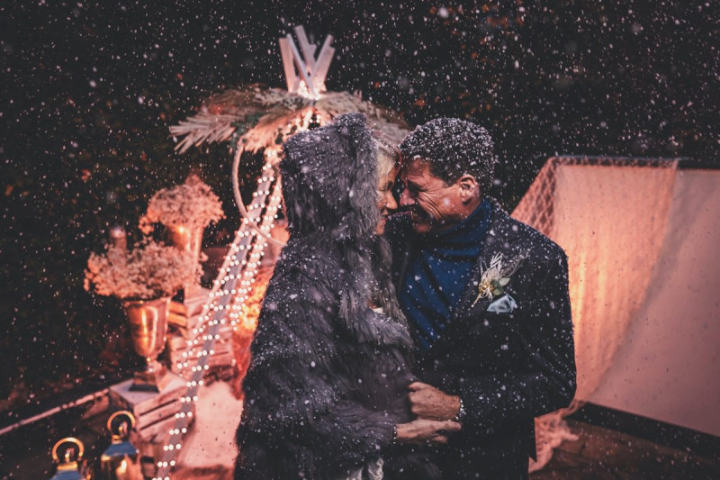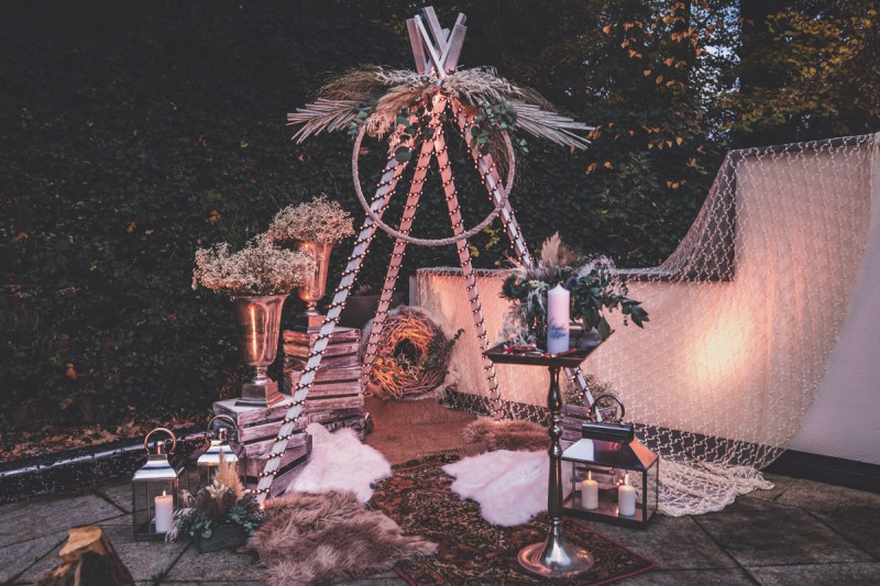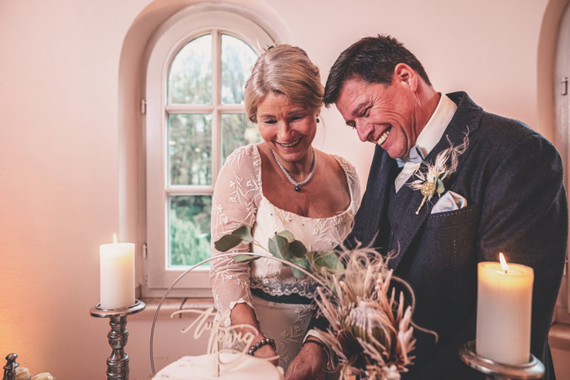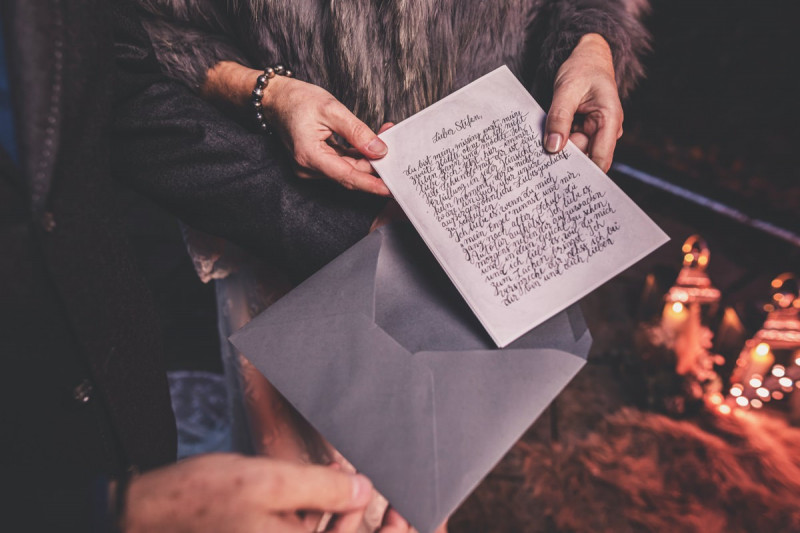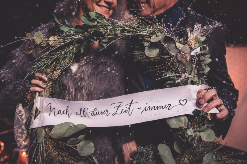 Wenn uns in diesem Jahr, wie leider in so vielen, schon kein Schnee vergönnt ist an Weihnachten und Neujahr, dann müssen wir uns das Winterwonderland eben erträumen! Und mit dieser Inspiration hier, dürfte euch das nicht schwer fallen. Euch erwartet eine romantische Eheerneuerung von einem Paar, das damit die vielen Jahre ihrer Ehe feiern möchte. Umgeben von Bohodetails und im Schnee feierten sie diesen besonderen Tag. Die kreativen Köpfe, die ich euch gleich vorstellen darf, sind gemeinsam die Crew der Hochzeitsmesse Hattingen heiratet. Ein Verbund aus Dienstleistern, die diese Inspiration für euch kreiert haben. Fotografiert wurde diese Inspiration einer verschneiten Eheerneuerung, im Diergardt Hattingen, von HK Photographics . Schon die Location ruft ganz laut Winterwonderland. Neben Kerzenschein und kuscheligen Wintervibes, sorgte EventikS mit Licht und Sound für besonders viel romantische Stimmung. Dank der videografischen Unterstützung von Mumukuba, erwartet euch unter den Bildern dieser Inspiration auch noch ein wunderschönes Video dieses Winterwonderlands. Geplant und konzeptionalisiert wurde der Tag von der lieben Anja von Goldröschen. Und so dürfen wir all diese schönen Details entdecken, die diese Inspiration bereithält. Dazu zählen neben einer wirklich romantischen Zeremonie im Freien, gehalten von dem Traufräulein, auch ein schönes Getting Ready, bei dem das Brautpaar füreinander Liebesbriefe schrieb, die bei der Zeremonie, musikalisch begleitet von Lea Bergen, unter die Haut gingen. Schon die Hochzeitspapeterie, die zu diesem besonderen Tag einlädt, ist ein totaler Wintertraum. Kreiert wurde sie von Sandra Semelink Kalligraphie & Design. Die gesamte Floristik dieser Inspiration vereint zarte Boho- und Wintervibes, gezaubert Floristik Monika Zink. Diese verschönerte auch den Sweet Table, der einer Winterhochzeit wirklich mehr als gerecht wird. Eine wunderschöne Hochzeitstorte aus weißem Fondant mit feinen Strickdetails sowie kleine Sweets, von der Konditorei Kartenberg, wartete dort auf das Brautpaar. Der passende Caketopper ist, wie auch die Kerze beim Getting Ready und die Lasercut Schilder an den Stühlen ‚Braut‘ und ‚Bräutigam‘, von meiner Bloggerkollegin Barbara vom Hochzeitsblog The Little Wedding Corner. Doch kommen wir zum Brautpaar. Unsere Braut wurde bei ihrem Getting Ready von Lina on Tour gestylt und schlüpfte in ein winterliches Brautoutfit von Pretty Woman Brautmode. Passend dazu, trägt ihr Bräutigam in ein wirklich tolles und winterliches Bräutigamoutfit von Eiskirch Atelier. Bei der Zeremonie, wo sich die beiden unter Schneeflocken wiederfanden, tauschten sie erneut ihre Ringe aus. Diese sind von Jörg Faatz Goldschmied. Wie ich finde mehr als verdient nach so vielen Jahren gemeinsam. Das sollte mehr als nur ein Grund zum Feiern sein! Umso mehr freue ich mich, euch so eine schöne Inspiration zu zeigen! Ganz viel Freude euch damit!