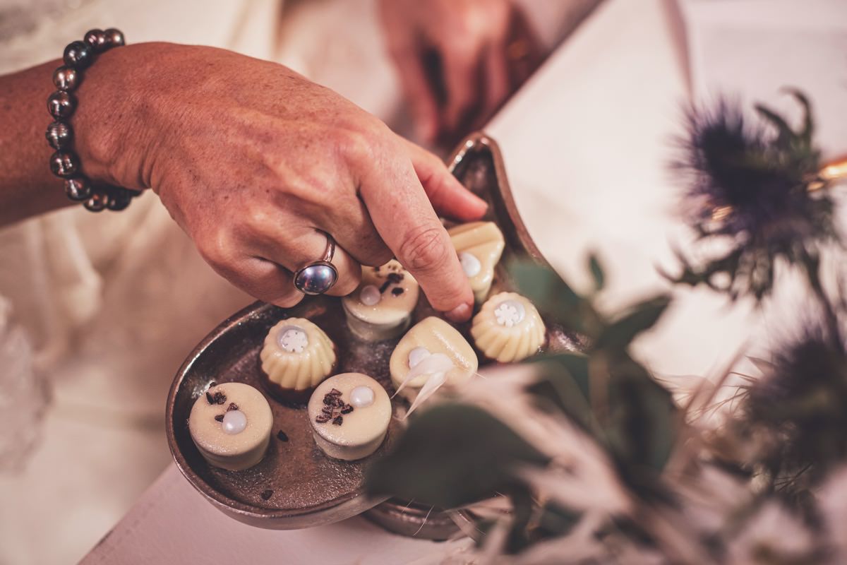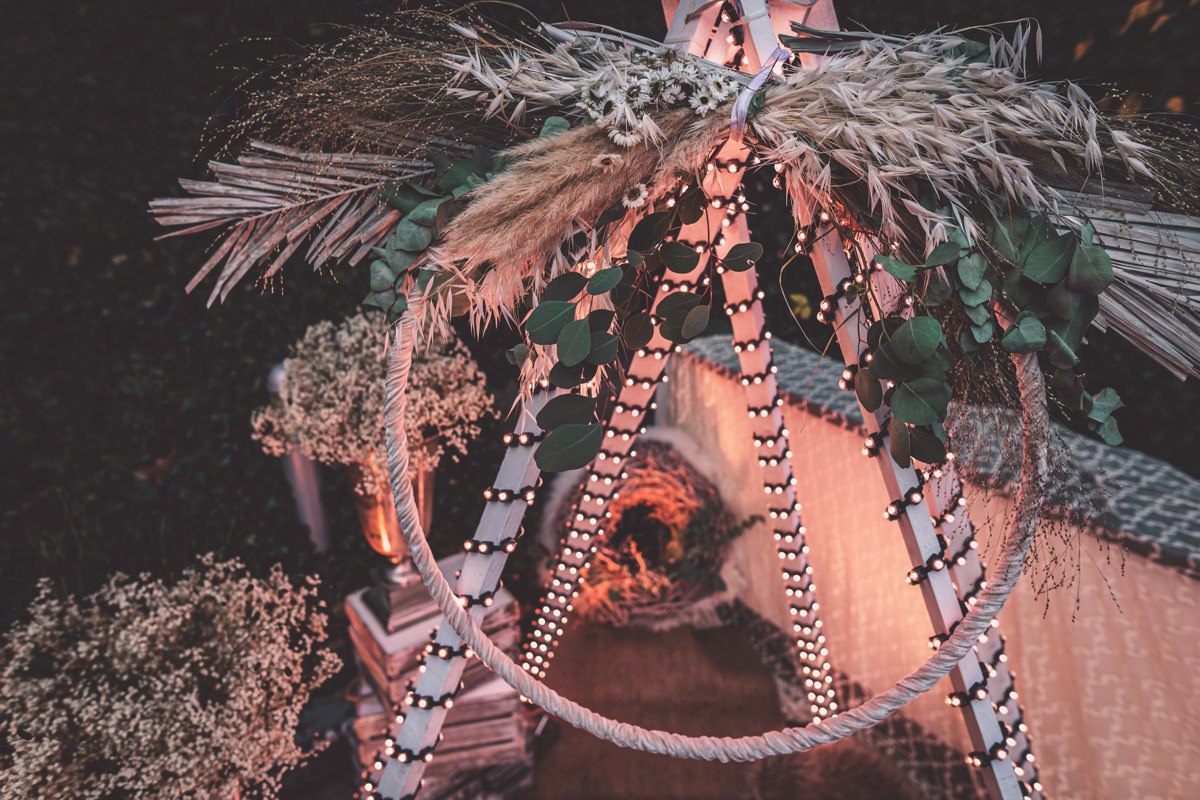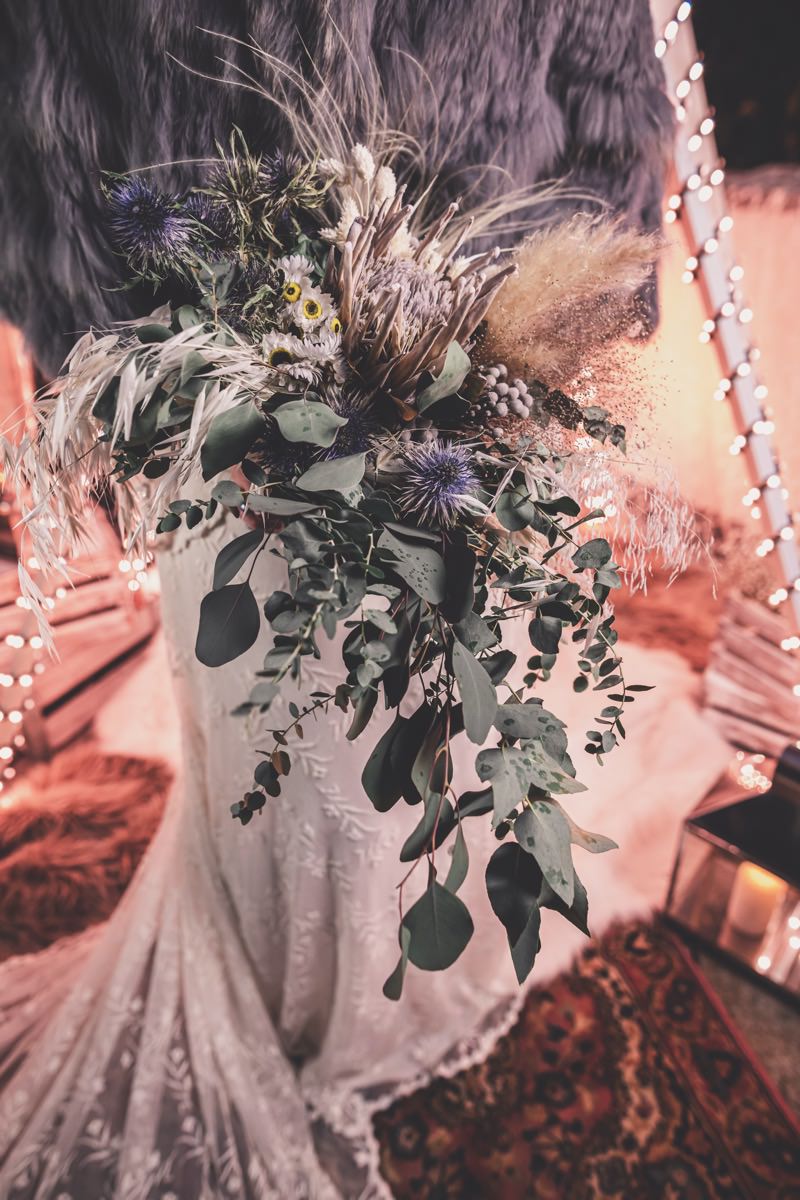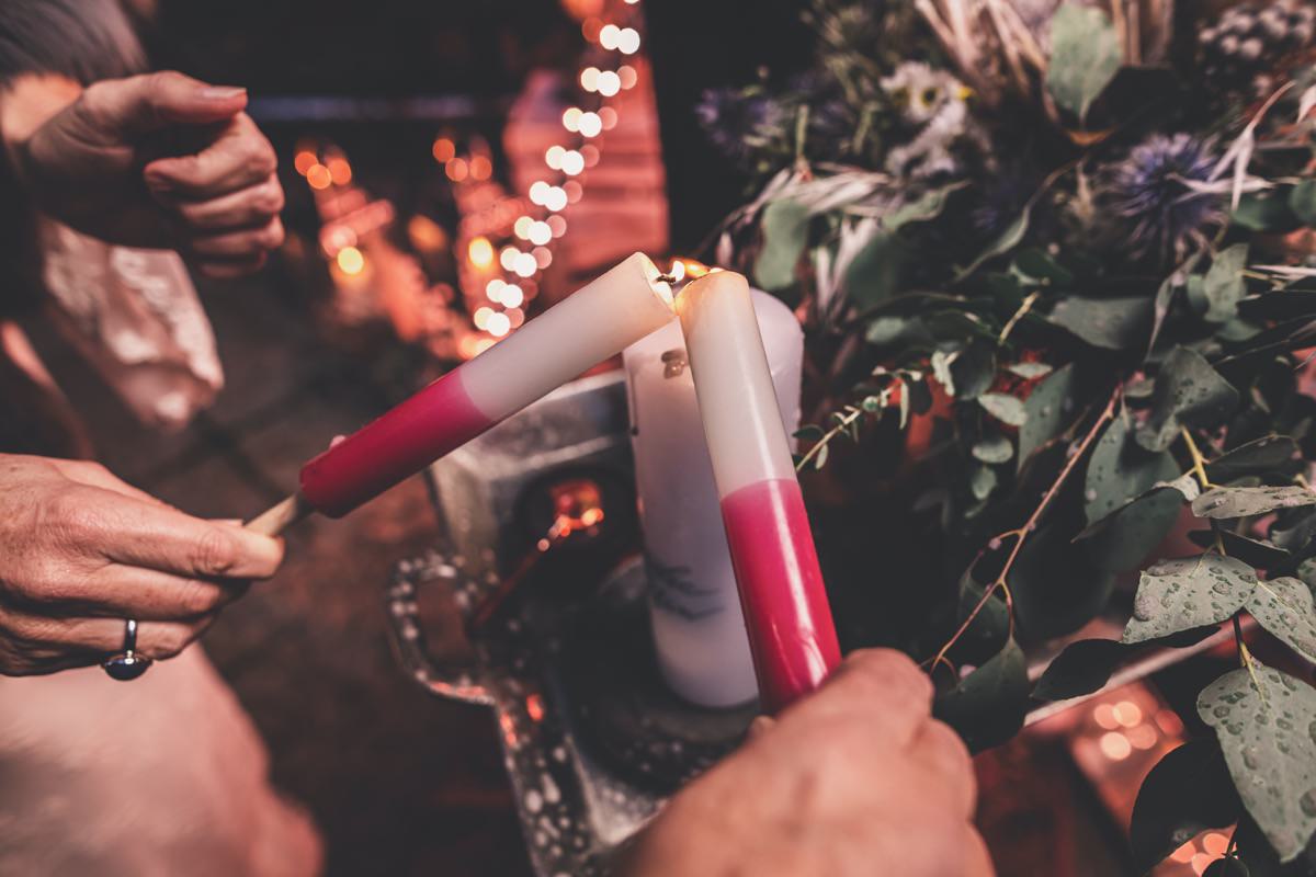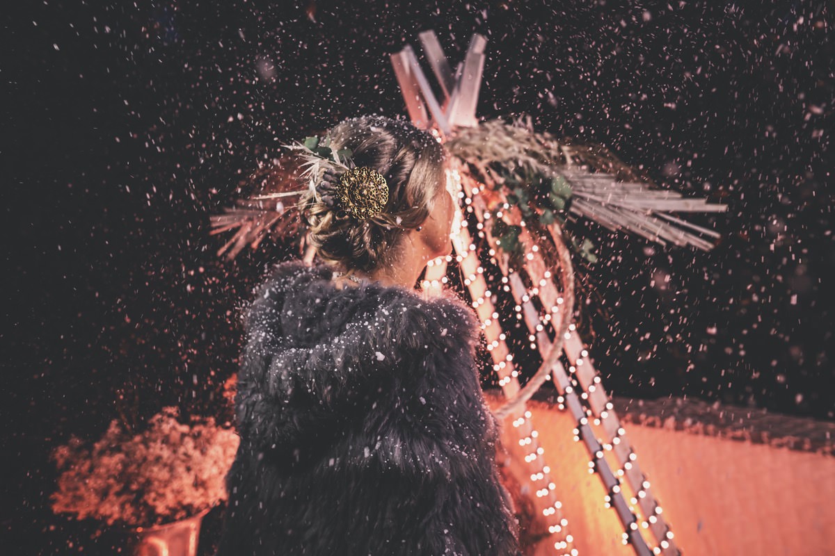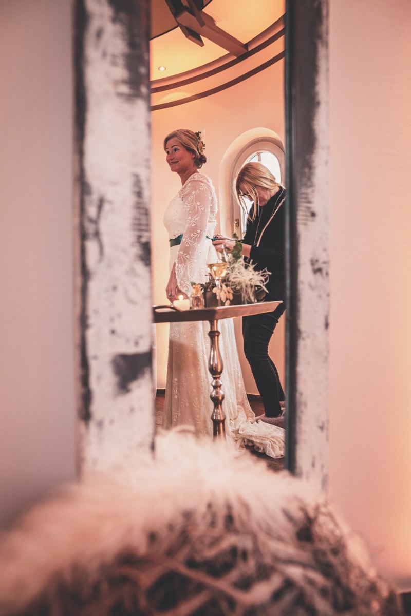 Wenn uns in diesem Jahr, wie leider in so vielen, schon kein Schnee vergönnt ist an Weihnachten und Neujahr, dann müssen wir uns das Winterwonderland eben erträumen! Und mit dieser Inspiration hier, dürfte euch das nicht schwer fallen. Euch erwartet eine romantische Eheerneuerung von einem Paar, das damit die vielen Jahre ihrer Ehe feiern möchte. Umgeben von Bohodetails und im Schnee feierten sie diesen besonderen Tag. Die kreativen Köpfe, die ich euch gleich vorstellen darf, sind gemeinsam die Crew der Hochzeitsmesse Hattingen heiratet. Ein Verbund aus Dienstleistern, die diese Inspiration für euch kreiert haben. Fotografiert wurde diese Inspiration einer verschneiten Eheerneuerung, im Diergardt Hattingen, von HK Photographics . Schon die Location ruft ganz laut Winterwonderland. Neben Kerzenschein und kuscheligen Wintervibes, sorgte EventikS mit Licht und Sound für besonders viel romantische Stimmung. Dank der videografischen Unterstützung von Mumukuba, erwartet euch unter den Bildern dieser Inspiration auch noch ein wunderschönes Video dieses Winterwonderlands. Geplant und konzeptionalisiert wurde der Tag von der lieben Anja von Goldröschen. Und so dürfen wir all diese schönen Details entdecken, die diese Inspiration bereithält. Dazu zählen neben einer wirklich romantischen Zeremonie im Freien, gehalten von dem Traufräulein, auch ein schönes Getting Ready, bei dem das Brautpaar füreinander Liebesbriefe schrieb, die bei der Zeremonie, musikalisch begleitet von Lea Bergen, unter die Haut gingen. Schon die Hochzeitspapeterie, die zu diesem besonderen Tag einlädt, ist ein totaler Wintertraum. Kreiert wurde sie von Sandra Semelink Kalligraphie & Design. Die gesamte Floristik dieser Inspiration vereint zarte Boho- und Wintervibes, gezaubert Floristik Monika Zink. Diese verschönerte auch den Sweet Table, der einer Winterhochzeit wirklich mehr als gerecht wird. Eine wunderschöne Hochzeitstorte aus weißem Fondant mit feinen Strickdetails sowie kleine Sweets, von der Konditorei Kartenberg, wartete dort auf das Brautpaar. Der passende Caketopper ist, wie auch die Kerze beim Getting Ready und die Lasercut Schilder an den Stühlen ‚Braut‘ und ‚Bräutigam‘, von meiner Bloggerkollegin Barbara vom Hochzeitsblog The Little Wedding Corner. Doch kommen wir zum Brautpaar. Unsere Braut wurde bei ihrem Getting Ready von Lina on Tour gestylt und schlüpfte in ein winterliches Brautoutfit von Pretty Woman Brautmode. Passend dazu, trägt ihr Bräutigam in ein wirklich tolles und winterliches Bräutigamoutfit von Eiskirch Atelier. Bei der Zeremonie, wo sich die beiden unter Schneeflocken wiederfanden, tauschten sie erneut ihre Ringe aus. Diese sind von Jörg Faatz Goldschmied. Wie ich finde mehr als verdient nach so vielen Jahren gemeinsam. Das sollte mehr als nur ein Grund zum Feiern sein! Umso mehr freue ich mich, euch so eine schöne Inspiration zu zeigen! Ganz viel Freude euch damit!