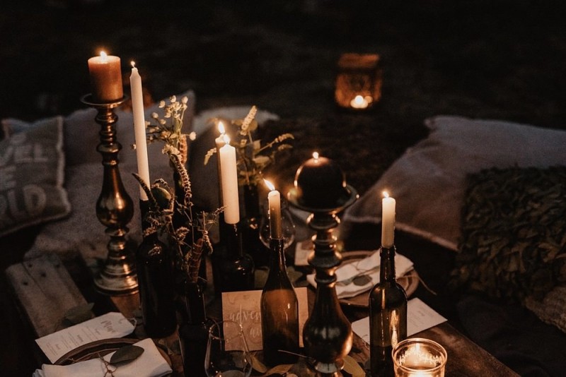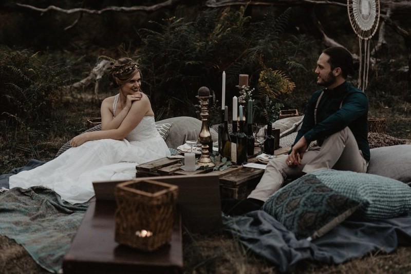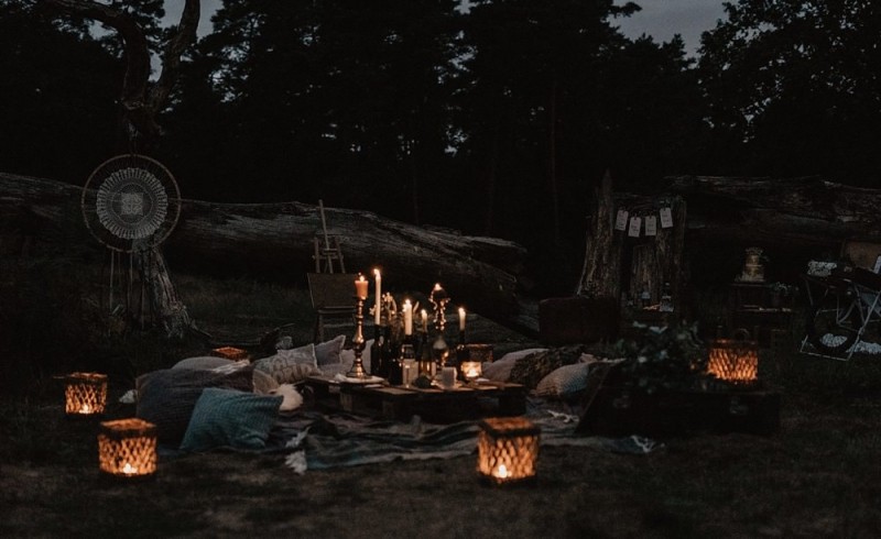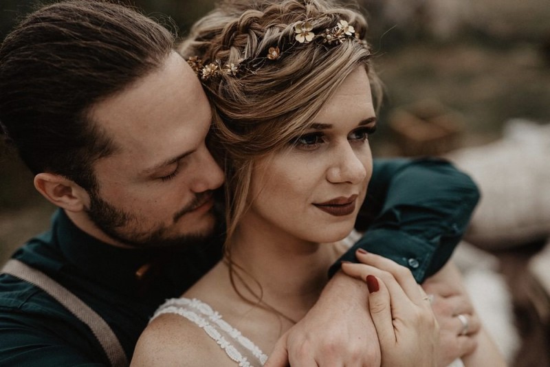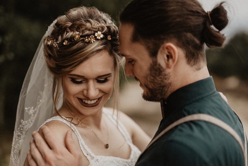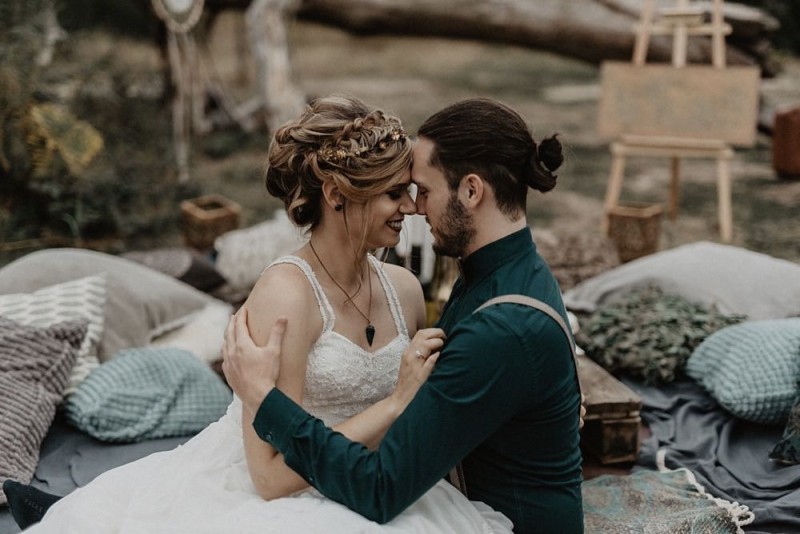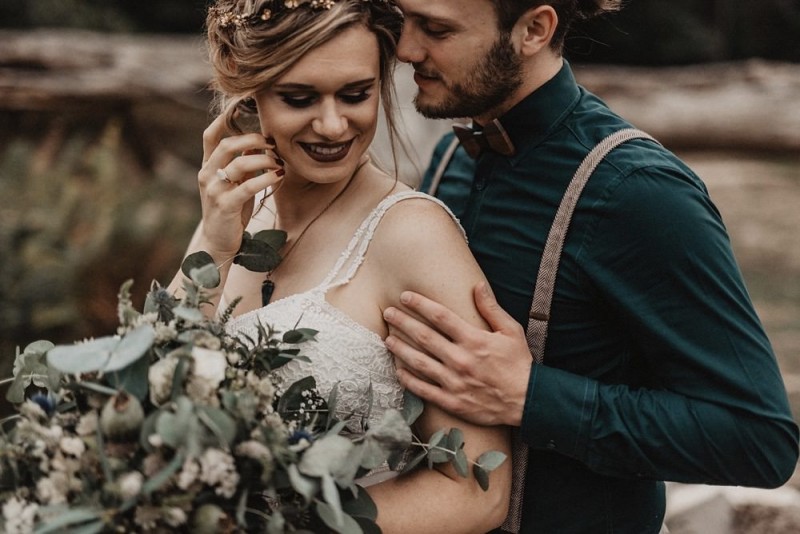 Kontraste zum Verlieben erwarten euch durch das Farbspiel aus kühlen Blau- und Grüntönen, die mit warmen Akzenten in Gold, Kerzenschein und Naturmaterialien, kombiniert werden. Romantik trifft auf Glanz und wird zu einem besonderen und vor allem liebevoll persönlichen Konzept. Das Paar, Alina & Timm, fand sich in einem kleinen Vintagetraum wieder, der mit Wärme und Bohoelementen aufwartete.