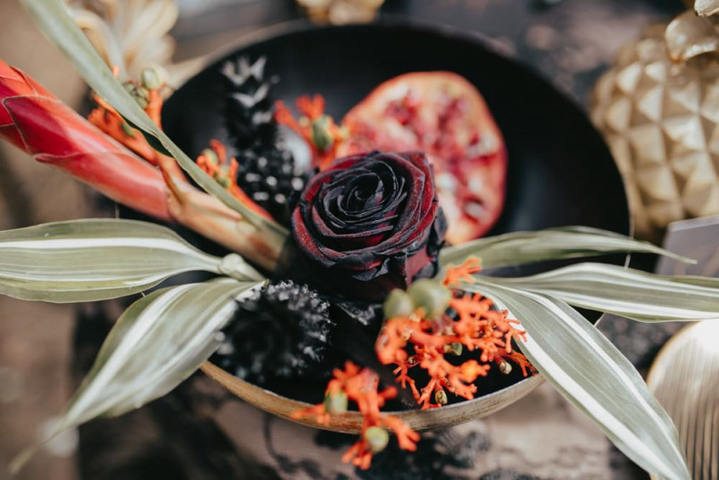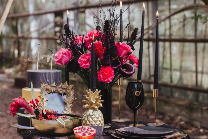 Dieses Styled Shoot ist eine farbgewaltige Hochzeitsinspiration! Perfekt für Herbsthochzeiten oder Hochzeiten im Moodystil. Die dunklen Farbtöne, schwarz mit violetten Zügen, kombiniert mit Knallfarben in Fuchsia, Orange und Rot – Ein Traum! Die goldene Akzente, bringt eine Zartheit und Eleganz, die dem Ganzen die Schwere nimmt, nicht jedoch die Kraft. Ich bin so verliebt! Fotografiert wurde dieser Blickfang von Ronja Gerstendorf Fotografie und Cathy Kohlenberg Fotografie. Die Dekoration und die Blumenbouquets kreierte 4YourWedding Hochzeitsplanerin. Während Kathrin Kania die hübschen Ladies Victoria& Nadine stylte, sorgte Florales Design Grabe für die Krönung der beiden, in Form von wunderschönen Flowercorwns. Die zarte und perfekt passende Papeterie zauberte Marry Paper Hochzeitspapeterie. Und das wohl leckerste Details: The Cake Baby! Dieses Prachtstück kreierte Mein Backwerk. Und nun, da ihr alle wichtigen Informationen habt, ganz viel Freude mit dieser Farbbombe von Hochzeitsinspiration!