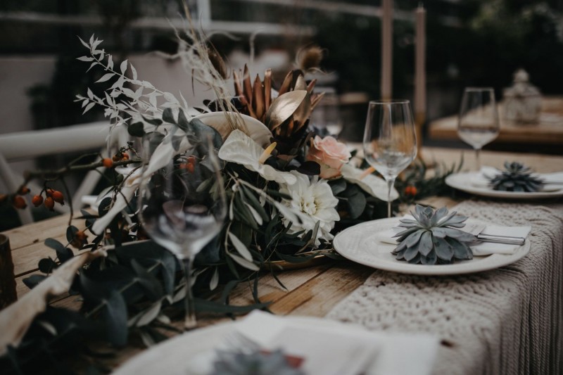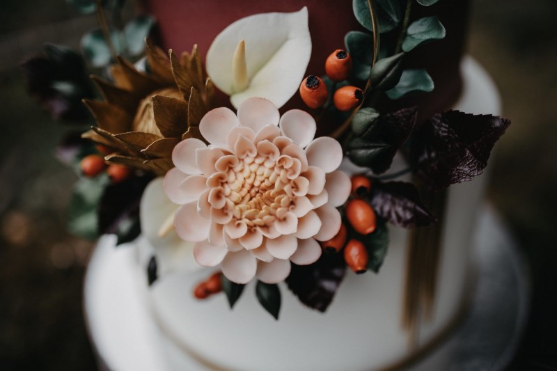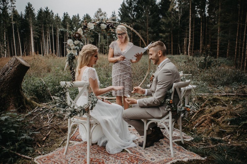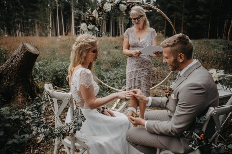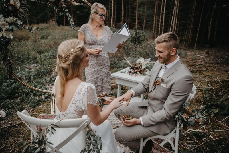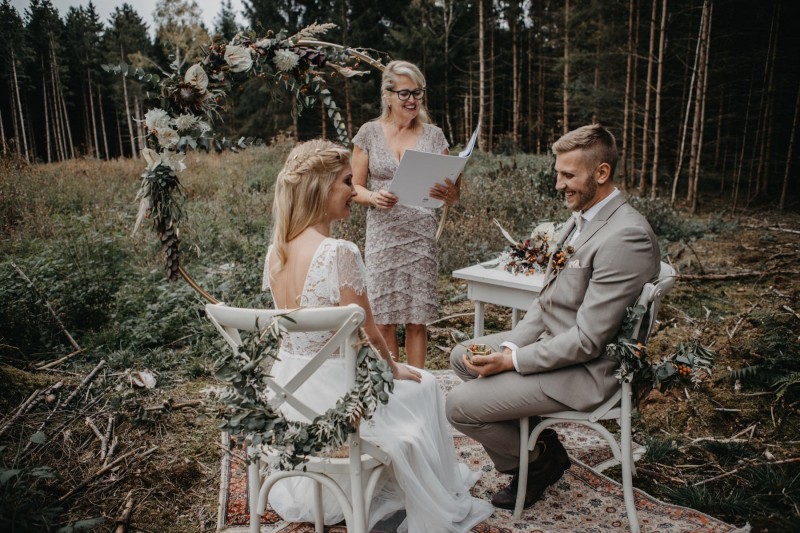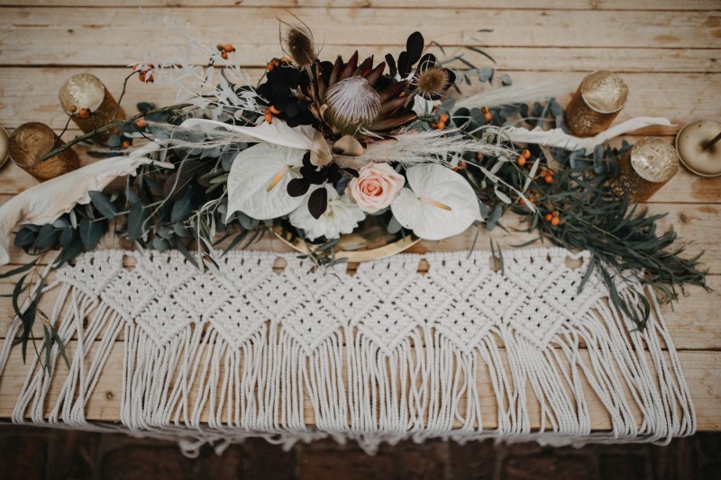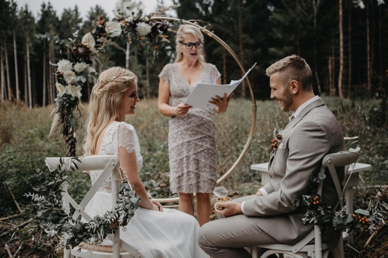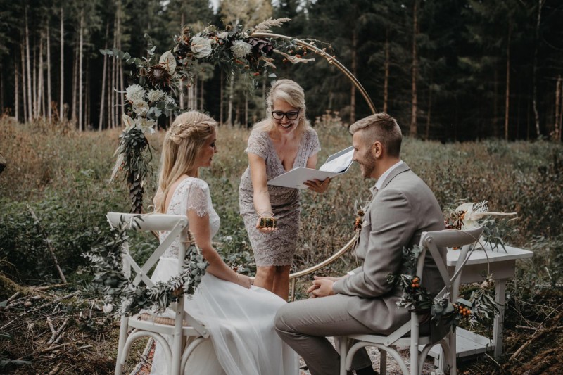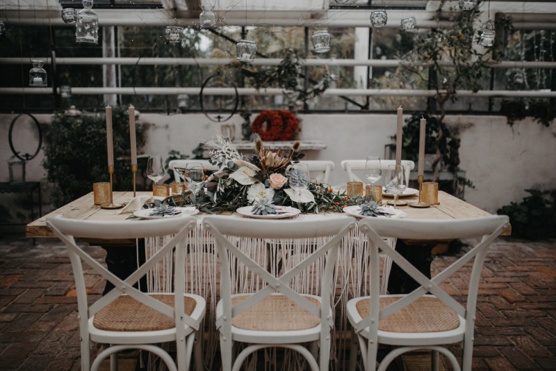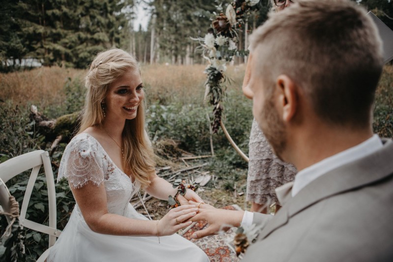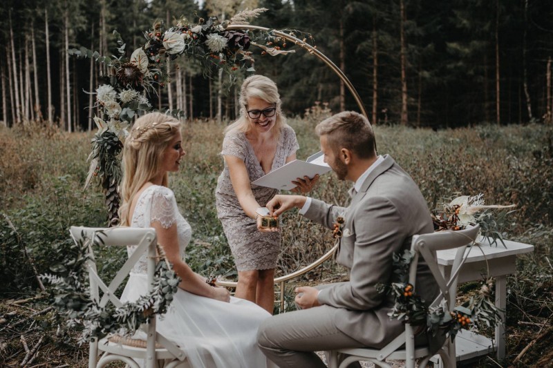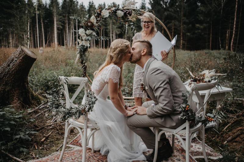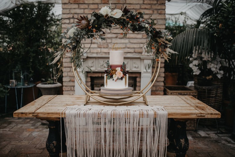 September diesen Jahres. Die Alte Gärtnerei Taufkirchen, ihre verwunschenen Gewächshäuser, die wild zugewachsen sind. Dazu bohoinspirierte Floristik sowie Dekoration in Farben, die den goldenen Herbst nicht schöner zeichnen könnten. Und mitten drin ein verliebtes Brautpaar. Das und noch mehr erwartet euch in dieser wunderschönen Inspiration für herbstliche Bohohochzeiten. Die Liebe zum goldenen Herbst ist wohl einfach erklärt. Das Beste aus zwei Jahreszeiten trifft aufeinander. Die letzten warmen Sonnenstrahlen des Sommers zeigen sich und treffen auf das besondere Spiel leuchtender Farben, die es so nur im Herbst gibt. Das und eine ordentliche Portion Boholiebe gibt es für euch nun in dieser Hochzeitsinspiration. In den verwachsenen Gewächshäusern und weiteren gemütlichen Räumen dieser Location, hielt Hochzeitsfotografin Sarah von Wildflower Blossoms Photography jedes zauberhafte Detail dieses Styled Shoots für uns fotografisch fest. In den romantischen und zugleich verspielten Räumlichkeiten dieser Münchener Location, kreierte Blütenstil und Blattwerk Gastl einige floristische Highlights. Ob opulentes Centerpiece auf dem Tisch, hängende Flowerloops oder florale Ergänzung zum Platzkärtchen – die warmen Farbtöne und die Farbtupfer in Gold ziehen sich durch das gesamte Konzept. Die warmen Holztöne und das frische Grün von Sukkulenten und Eukalyptus laden, neben großen Makramees und indirektem Licht, ebenfalls ein. Die gesamte Hochzeitpapeterie, gestaltet von marygoesaround, die einen der Flowerloops übrigens zu einem wunderschönen Sitzplan macht, greift dieses warme und natürliche Konzept perfekt auf. Wie die Dekoration und Floristik nicht überladen, sondern zurückhaltend aber ausdrucksstark. In dieser wunderschönen Szenerie durfte das Brautpaar, Laura & Dominik, den ganzen Tag verbringen. Hierfür schlüpfte die hübsche Laura in ein Brautkleid von Herve Paris via Brautmoden Melanie und feine Brautschuhe von Elsa Coloured Shoes. Der fließende Stoff ihres Rocks und die feinen Spitzendetails am Oberteil, sowie der tiefausgeschnittene, semi-transparente Rücken, sind einfach zu schön! Ihr zartes Hair & Makeup, kreiert von Lisa Fesenmeir, wurde durch den zarten Haar- & Brautschmuck von Crystal Art Schmuckdesign perfekt in Szene gesetzt. Ihr opulenter Brautstrauß, ebenfalls kreiert von Blütenstil und Blattwerk Gastl und ganz im floralen Konzept gehalten, rundet ihren leichten sowie verspielten Look mit seinen herbstlichen Details perfekt ab. Und natürlich wurde auch Dominik entsprechend eingekleidet. Er trägt ein Outfit von Wilvorst via Eckerle Herrenausstatter. Das helle Grau passt einfach perfekt in das Farbkonzept und wirkt elegant aber legere. Nach dem Getting Ready ging es für die beiden nach draußen, wo eine Feld und Wiesen Idylle, mit weißen Stühlen, auf Teppichen stehend und mit Blumen verziert, auf sie wartete. Hier vor dem großen, mit Blumen geschmückten, runden Traubogen fand ihre freie Trauung mit Traurednerin Birgitta Lauterbach statt. Eine emotionale Zeremonie, mit der die beiden einander feierten und mit den Trauringen von Sandra Rohrhirsch besiegelten. Zur Feier des Tages gab es natürlich auch eine Hochzeitstorte, die fast zu schade war, für den Anschnitt. Auch hier finden sich die warmen Farbtöne, das glitzernde Gold und die runden Blumendetails. Sie wurde von Tortenstudio Sweet Diana kreiert und perfekt abgestimmt. Wer an dieser Stelle sein Herz an diese Inspiration noch nicht verloren hat, den wird spätestens das romantische Brautpaarshooting in den verwachsenen Gewächshäusern einfangen. Eine wirklich magische Kulisse. Verliebte Blicke inklusive!
