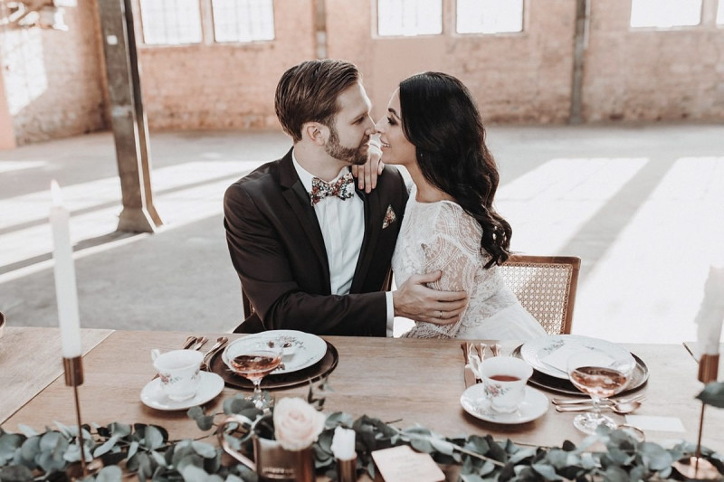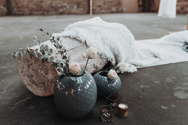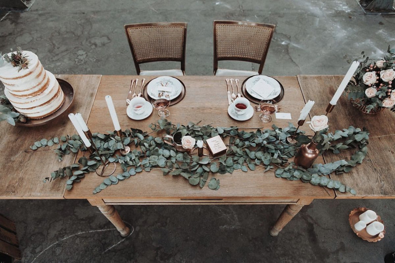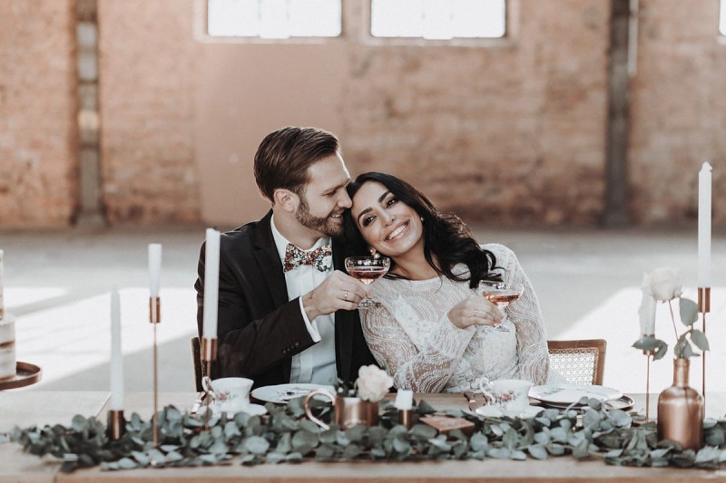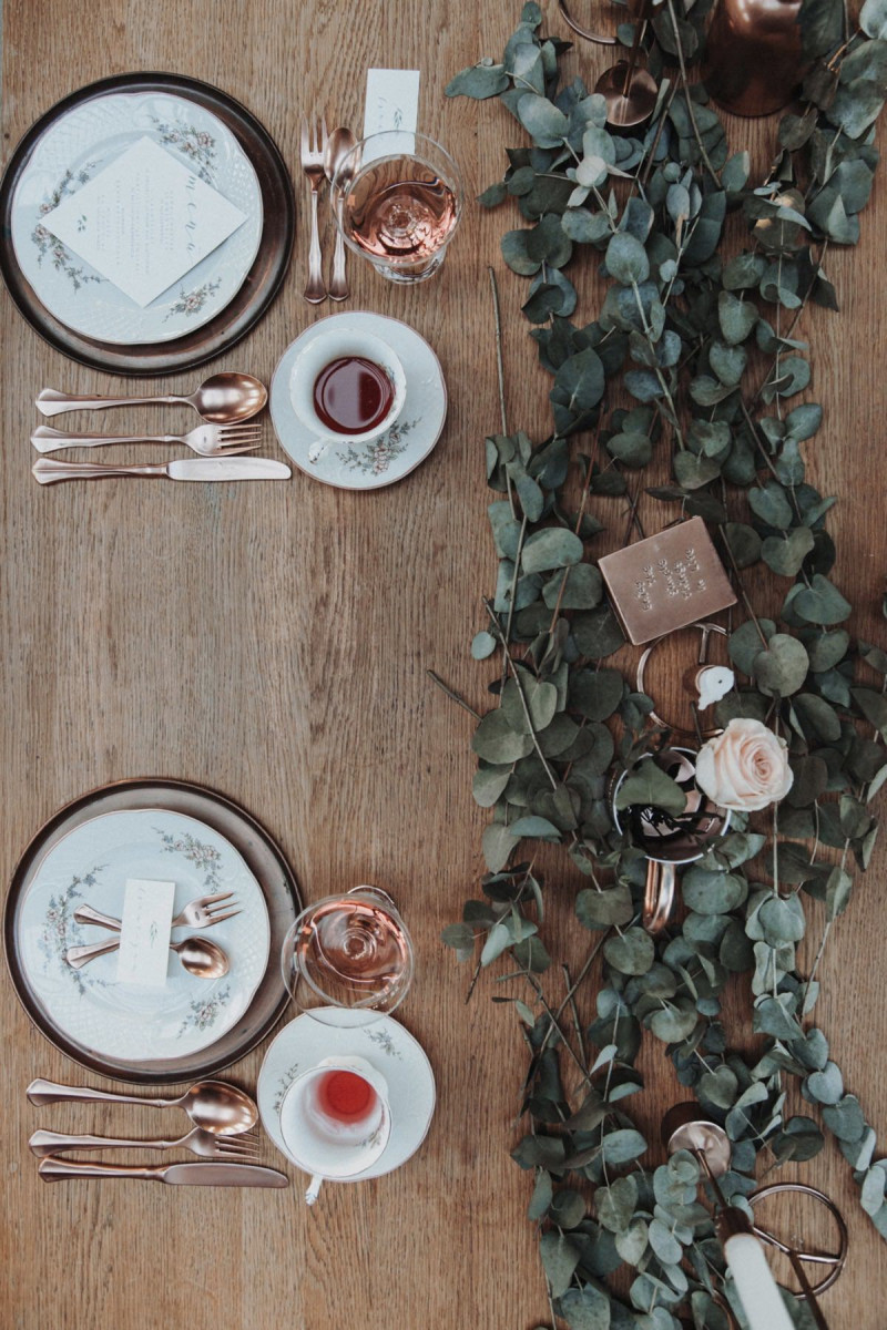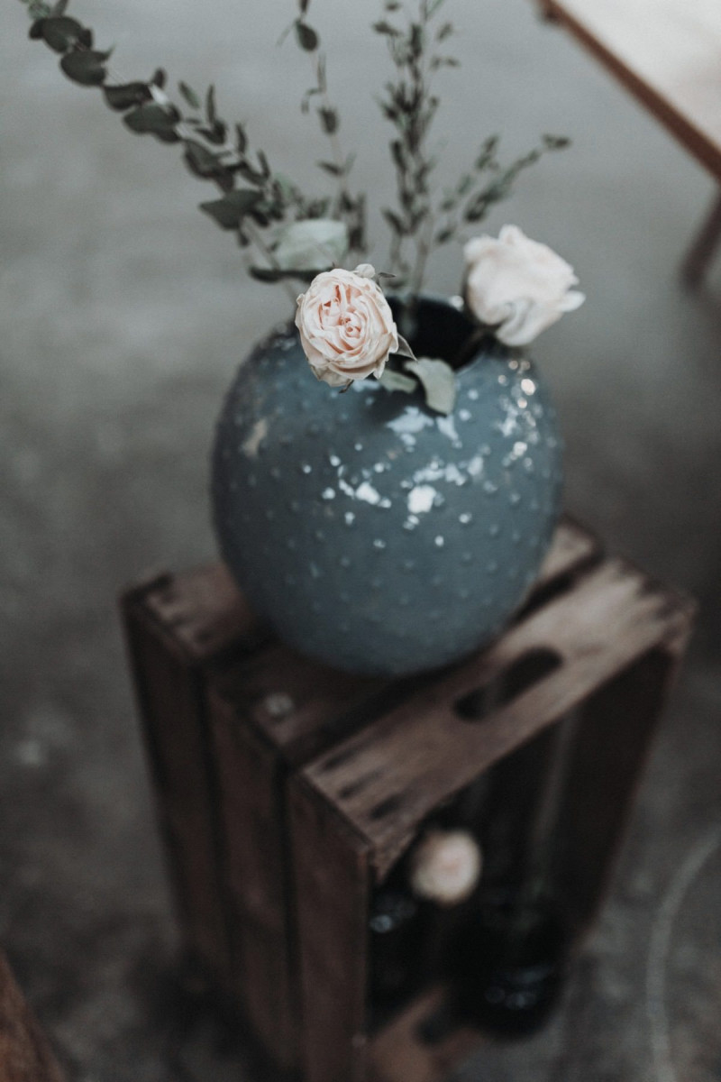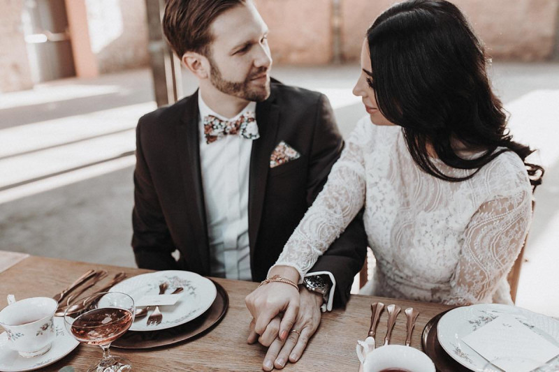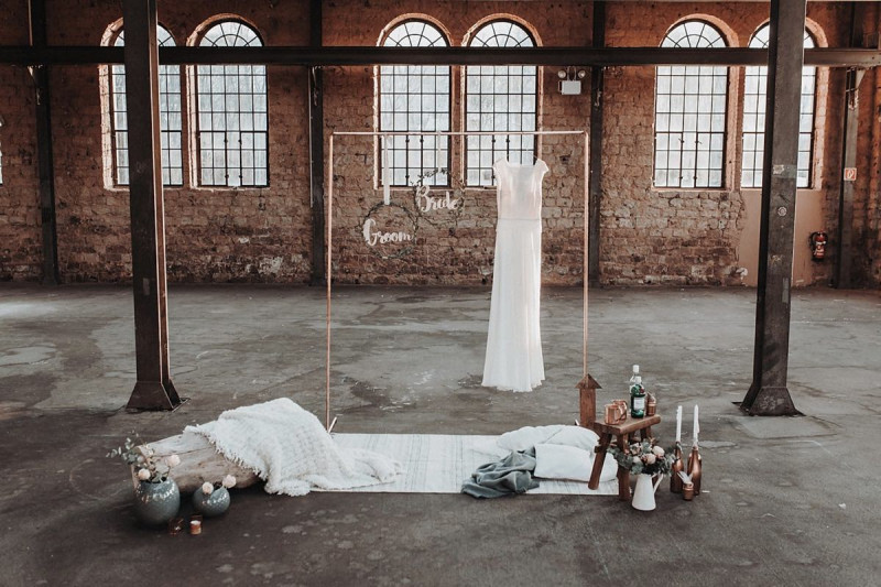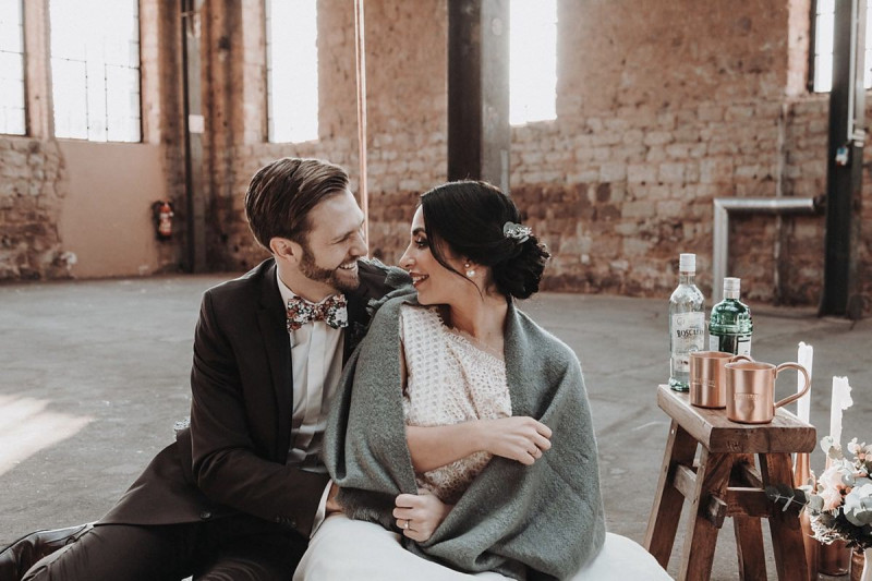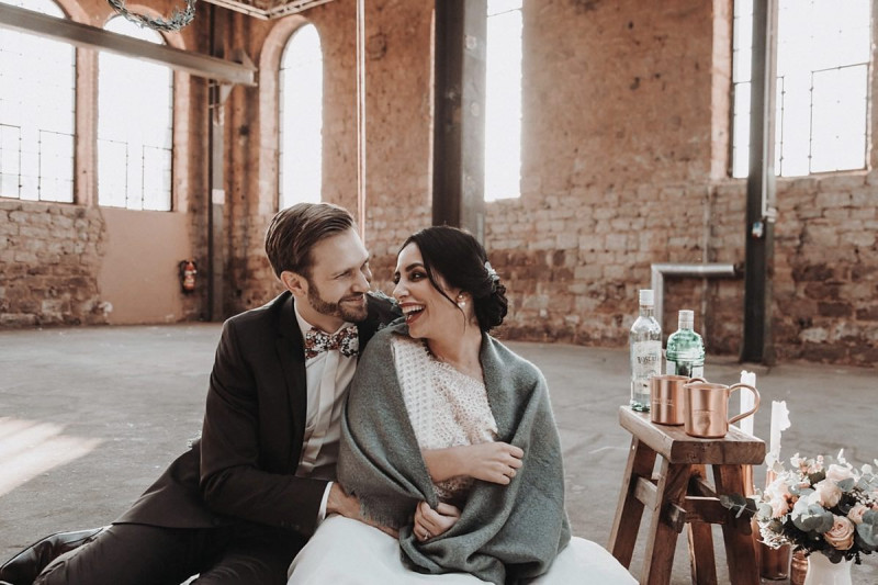 Dies ist die zweite Hochzeitsinspiration einer Industrial Wedding, das auf dem Blog einzieht. Ich finde den Charm des Unfertigen so toll! Ecken & Kanten, Materialmix – kombiniert mit ganz viel Grün, ein wenig Kupfer und zarten Blushtönen. Die feinen Details der Dekoration, die zarte Spitze des Brautkleides, der betörende Naked-Cake und das verliebte Brautpaar. Ein wunderschönes Gesamtkonzept, dessen kühle Materialien der Location und der Grün- & Minttöne durch die Akzente in zartem Blush und die Romantik des Brautpaares aufgebrochen wird. Und schön aufpassen, die Braut trägt gleich zwei bezaubernde Brautkleider aus dem Brautmoden Atelier von Elena Victoria, kreiert von Therese & Luise.Fotografiert hat diese wunderschöne Hochzeitsinspiration von KundK Photography. Zum Strahlen brachte die hübsche Braut neben den Traumroben und dem Schmuck von Lavendu das wundervolle Makeup von Elena Thul. Ihren hübschen Bräutigam kleidete ein Herrenmode Kraemer. Das perfekte Detail: Die Fliege von Mytieshop. Nun kommen wir zur grandiosen Dekoration. Die hübsche Papeterie ist von Stennie, die perfekt zu den hölzernen Details von Liebding Manufaktur passt. Und für den Tortentraum sorgte Zuckerduft. Ich freu mich sehr, euch diese tolle Hochzeitsinspiration zeigen zu dürfen. Es lockert nicht nur die starren Vorstellungen von Hochzeiten auf. In diesen Konzepten sind auch kleine Fehler erlaubt. Denn den eigenen Stil hineinzubringen, auch mal etwas auszulassen, macht es so individuell. Das entspannt auch jede wundervolle Bridezilla. Ganz viel Freude euch!!