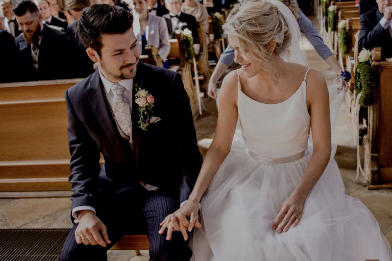 Am 14. April fand die wunderschöne Hochzeit von Martina & Martinstatt. In der zauberhaften und imposanten katholischen Pfarrkirche Glonngaben sich die beiden das große Ja-Wort vor all ihren Lieben. Völlig berauscht von diesen besonderen Gefühlen, ging es mit einem geschmückten Oldtimer zur Hochzeitslocation Gut Sonnenhausen. Neben einer tollen Candybar sorgen die vielen kleinen Details der Hochzeitsdekoration für den besonderen Vintagecharm. Und auch wenn der April wettertechnisch meist einen wilden Ruf hat, strahlte die Sonne mit dem Brautpaar an diesem Tag um die Wette! Wundervoll festgehalten hat diesen einmaligen Tag der beiden Moira Rutschmann Photography. Das tolle Brautkleid der lieben Martina ist von The White Dress Company. Ganz viel Freude euch mit dieser wirklich entzückenden Aprilhochzeit!
