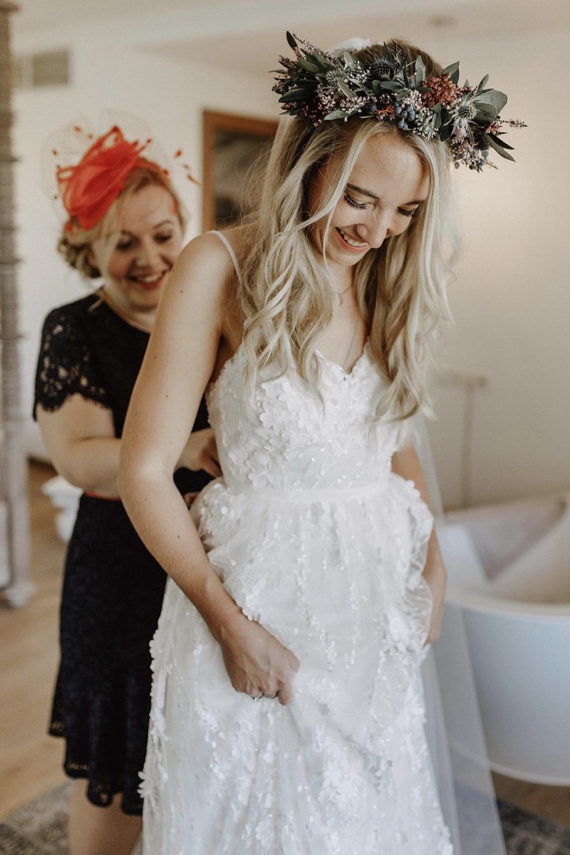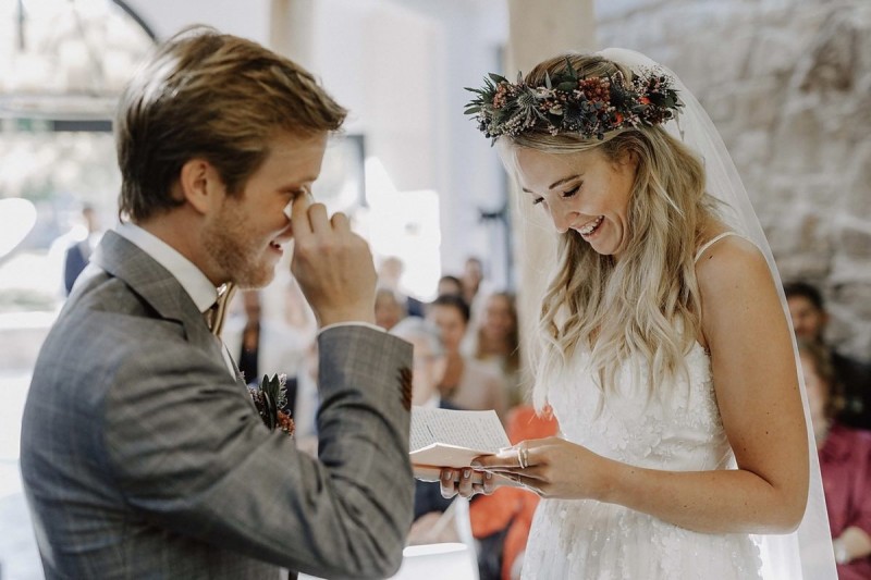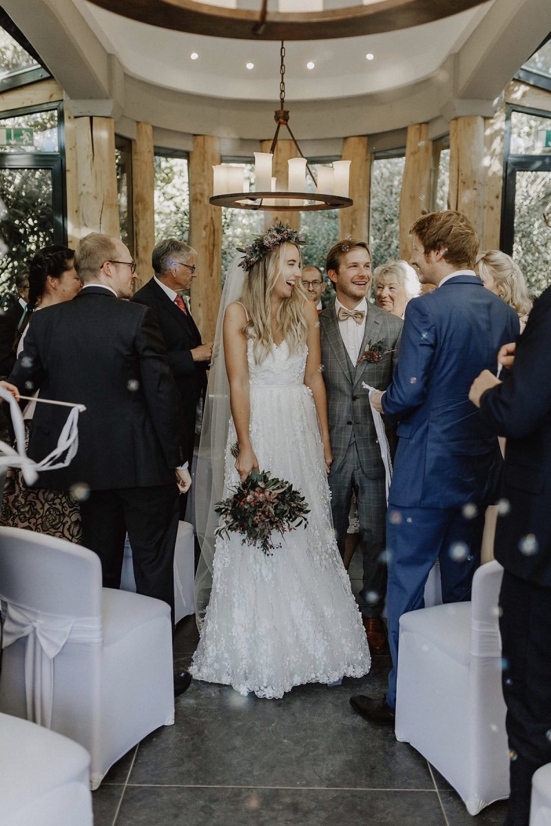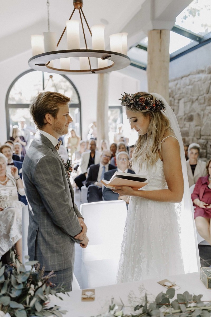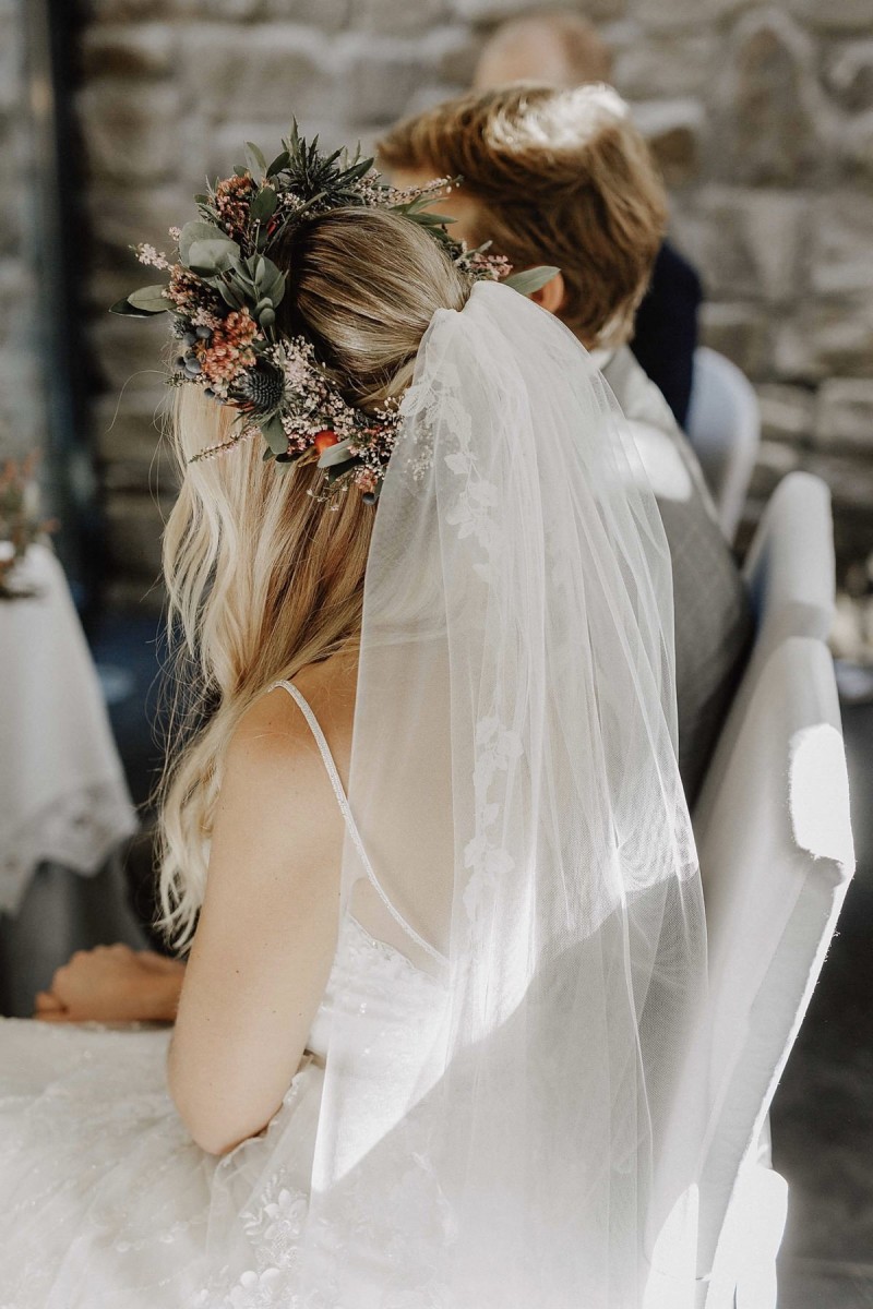 Laura & Philipp feierten am 05. Oktober 2018 eine standesamtliche Hochzeit, die sich mit ihrem rustikalen Bohocharm tief in mein Herz gebrannt hat! Fotografiert wurde diese wunderschöne Bohohochzeit von Irina & Chris Photography, die die beiden den ganzen Tag lang begleitet haben. Um die standesamtliche Trauung zu einem emotionalen Highlight zu machen trugen Braut & Bräutigam während der Trauung ganz persönliche Ehegelübde vor. Doch nicht genug! Nach der Trauung erhoben sich einzelne Freunde und Familienangehörige von ihren Plätzen und schenkten dem Brautpaar sehr persönliche Wünsche und liebe Worte. “Es blieb kein Auge trocken! So was hab ich noch nie gesehen. Ich kenne diese auswendig gelernten Fürbitten in der Kirche, die immer so runter geleiert werden, aber das war mal eine extremst persönliche Trauung. Das war wie Standesamt und freie Trauung in einem. Es war einfach wundervoll!!” beschrieb es Hochzeitsfotografin Irina. Das Landhotel Voshövel als Hochzeitslocation für die Trauung und die anschließende Hochzeitsfeier kann nur verzaubern! Der rustikale Hüttenstil der Location setzt die tolle Dekoration von Fair Heiraten und die wunderschön herbstliche Floristik von Altstadtblüte perfekt in Szene. Doch halt, da fehlt doch noch was! Die hübsche Braut Laura verzauberte ihren Bräutigam in einem Brautkleid von I am Yours, perfekt gestylt von Annika Vennebusch und sicher auch mit ihrer hübschen Flowercrown, passend zum wilden und herbstlichen Brautstrauß, kreiert von Altstadtblüte. Ich wünsche euch ganz viel Freude mit dieser wunderschönen Hochzeitsinspiration voller Emotionen, wunderschöner Brautpaarbilder und einer Hochzeitsdekoration zum niederknien! Ich bin hin und weg!