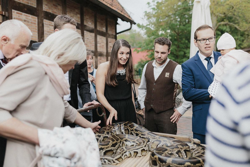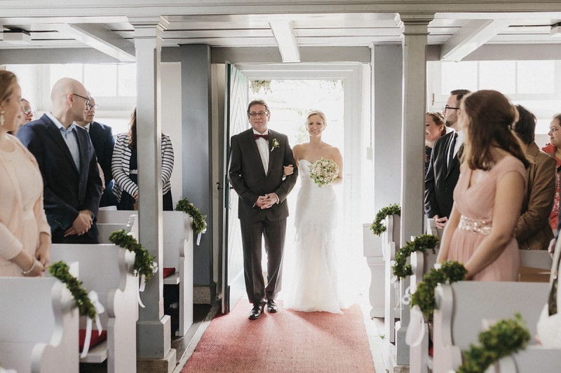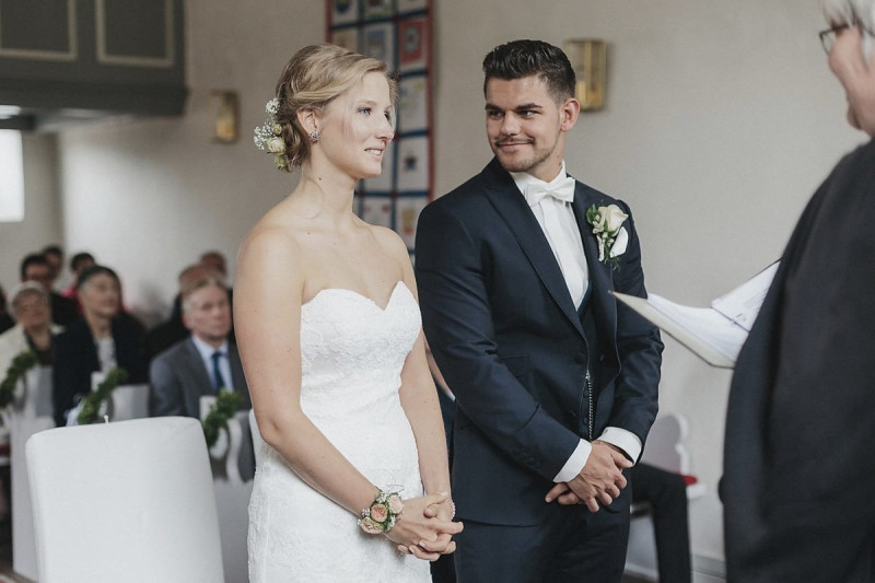 Am 6. Mai 2017 feierten Nina & Florian ihre kirchliche Scheunenhochzeit voller Vintage- und Traveldetails in der Festscheune des Zoo’s Hannover. Hochzeitsfotografin Alina Cürten fine art weddings begleitete den Hochzeitstag der beiden, der nach einer getrennt verbrachten Nacht mit dem Getting Ready startete. Nina machte sich gemeinsam mit ihren Mädels zu Hause fertig. Mit viel Freude, Sekt und kleinen Geschenken für ihre Bridalcrew, lies sie sich von Maquillage Hannover stylen und schlüpfte in ein zauberhaftes Brautkleid von Enzoani. Ihr Look unterstrich ihre zarte Natürlichkeit und ließ sie von Kopf bis Fuß strahlen. Mit ihrem feinen Brautstrauß in zartem Rosé, passend zu ihrem Blumenarmband und ihrem Blumenschmuck im Haar, konnte es losgehen! Diese, wie die gesamte Floristik, zauberte das Blumeneck. Auch die Einladungen von Carteland passten perfekt dazu. Für Florian ging es, nach dem Getting Ready mit seinen Groomsmen, in einem Anzug von Lo&Go – Der Herrenausstatter, zur Kirche, wo er am Altar auf seine hübsche Braut wartete. Schon da wurde es so wundervoll emotional! Denn beim Brauteinzug an der Seite ihres Vaters, brachte Nina ihren Bräutigam zum Schluchzen. In den Bänken der Kirche fand sich ein weiterer Teil der Hochzeitspapeterie, der die Gäste durch die Trauung begleitete. Nach der emotionalen Trauung des Brautpaares ging es zur Hochzeitslocation, der Festscheune im Zoo Hanover. Zuvor durften sich die Gäste jedoch beim Sektempfang etwas erfrischen! Neben dem gab es leckeres Eis von Frioli die Eismanufaktur, die mit ihrem Foodtruck auf die Hochzeitsgesellschaft warteten. So konnte das Brautpaar in aller Ruhe zum Brautpaarshooting durchstarten. An der Festscheune trafen sich dann alle wieder. Die Scheune selbst erstrahlte im wunderschönen Vintagelook, der durch ganz viele Traveldetails erweitert wurde. Nina & Florian sind absolut reisebegeistert und wollten das in ihre Hochzeit einfließen lassen. Unter dem Motto “Eine Reise ins Glück” fanden sich auf den Tischen keine Nummern, sondern ihre bereits bereisten Reiseziele. Natürlich passend zum Sitzplan, der als Weltkarte gestaltet wurde. Die Gäste konnten sich zusätzlich selbst an den Tischen entdecken. Denn anstelle von Namenskärtchen fanden sie Fotos vor, auf denen sie und das Brautpaar abgelichtet waren. Die Braut selbst hat sich bei der Dekoration ausgetobt und all die feinen Details mit ihren Mädels kreiert. Ein weiteres Highlight – schließlich fand die Hochzeit in einem Zoo statt – sind die tierischen Darsteller! Aber schaut einfach selbst! Ganz viel Freude mit dieser zauberhaften Hochzeit, dem zuckersüßen Brautpaar und all den inspirierenden Details!