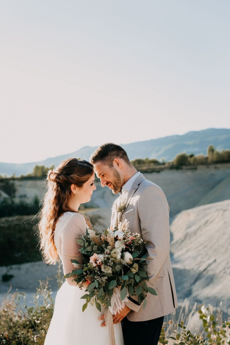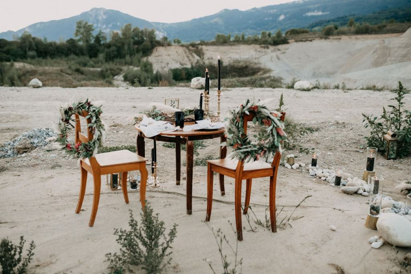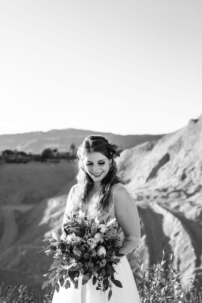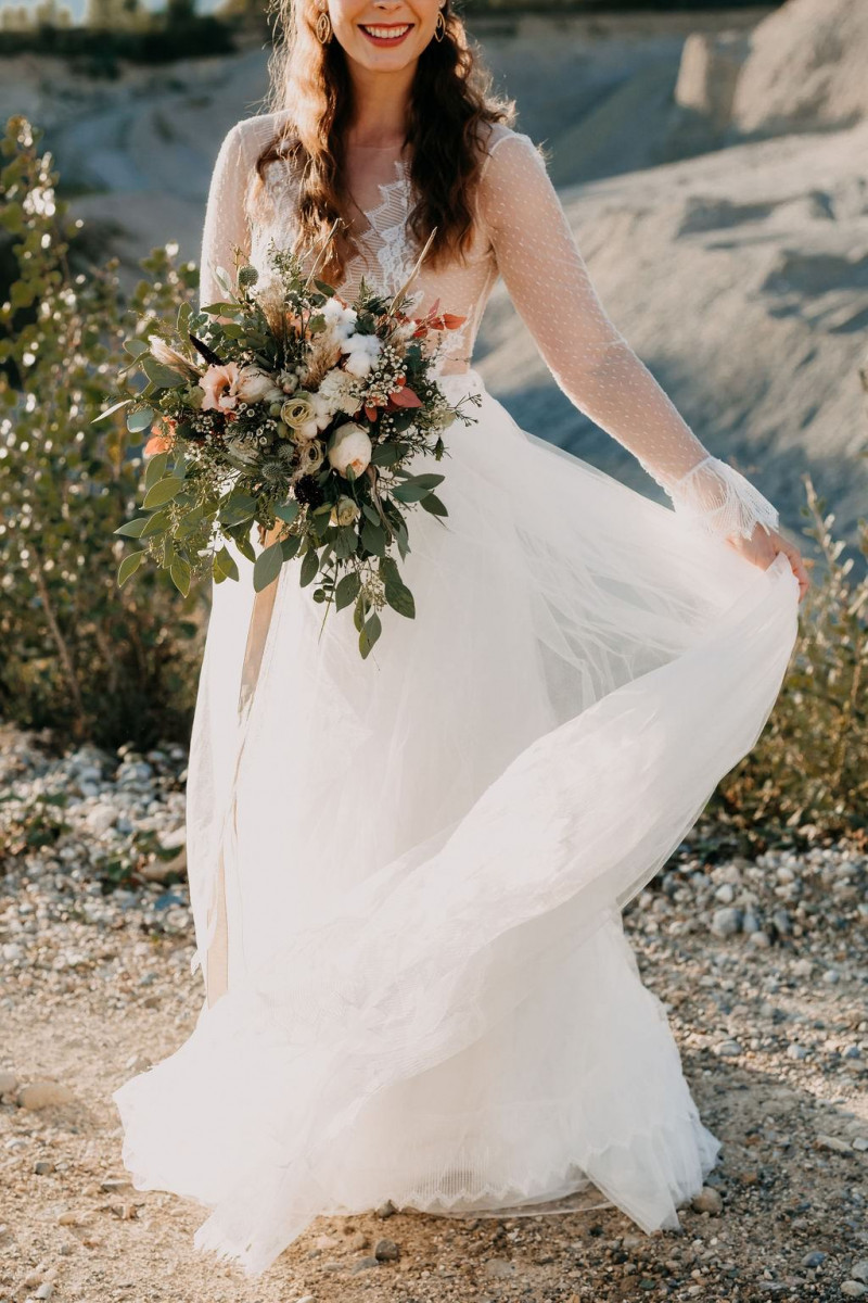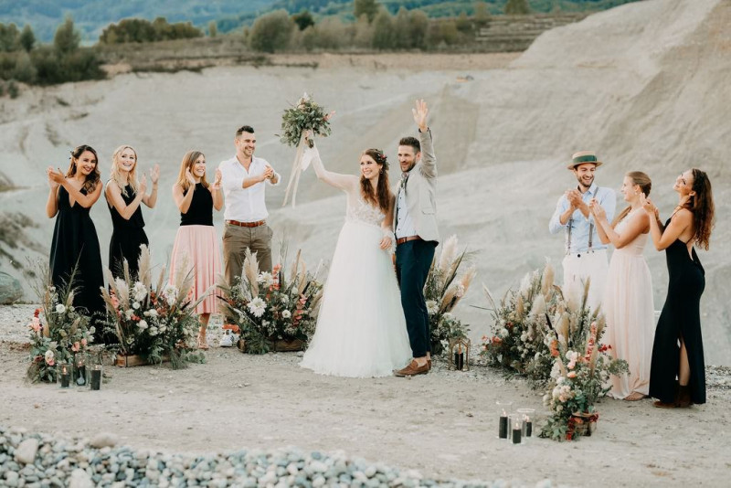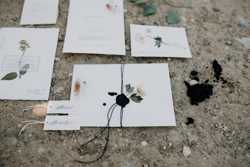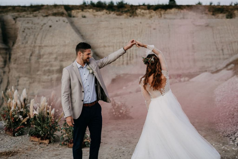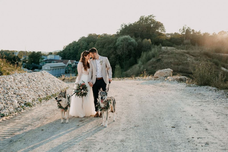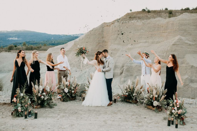 Bei dieser natürlichen Inspiration einer bohemian Elopement Wedding mitten in einem Steinbruch, erwarten euch so viele bezaubernde und romantische Details! Dazu wird es wild durch schwarze Akzente und roten Rauch! Hochzeitsfotografin Melanie Munoz Photography, die diese Inspiration natürlich auch fotografiert hat und die Eventplanerinnen Tiziana & Tamara von GAEA.DESIGN haben sich bei der gemeinsamen Planung dieses Shootings nicht lumpen lassen und an wirklich alles gedacht, das wilde Bohoherzen höherschlagen lässt. Das tierische Highlight sind Idefix und Evita, zwei tschechoslowakische Wolfshunde, die Andrea Zähner mitbrachte.