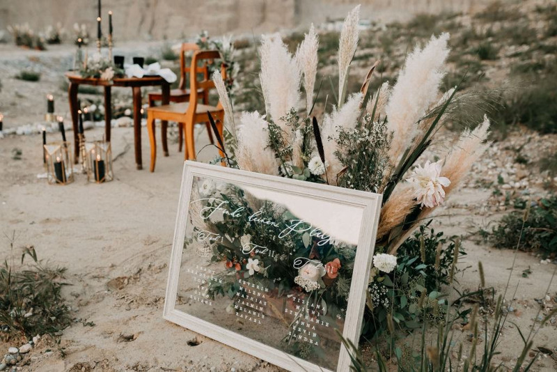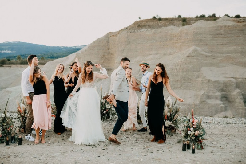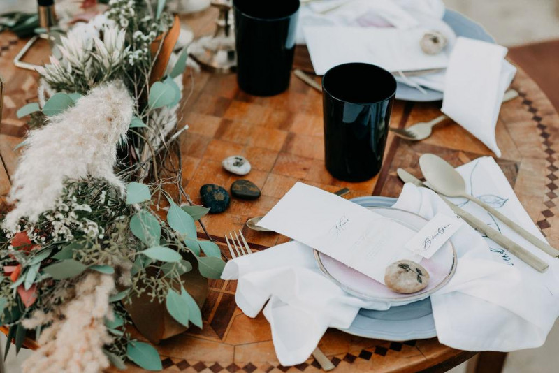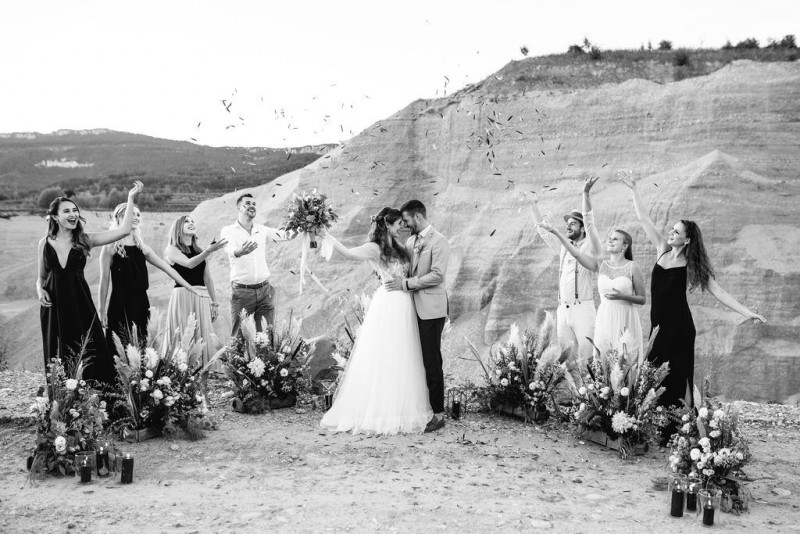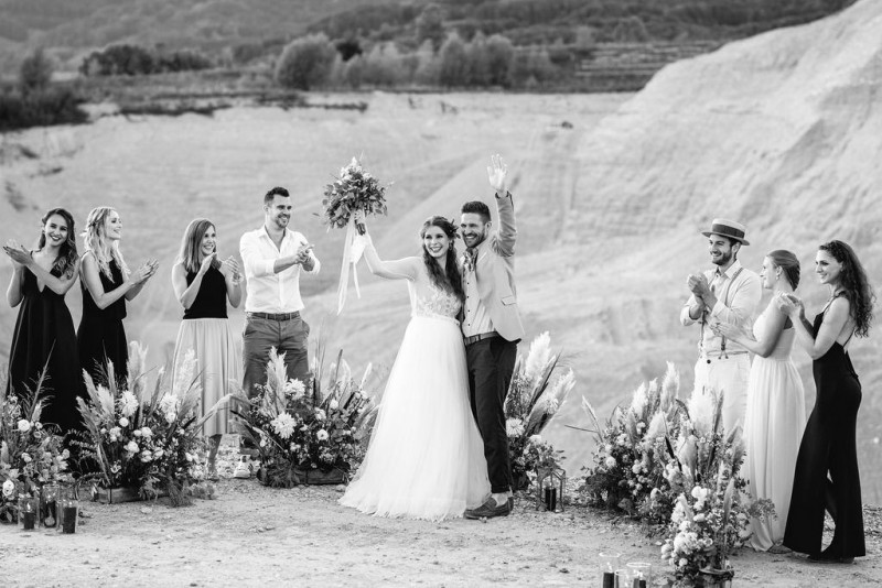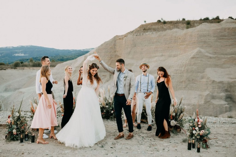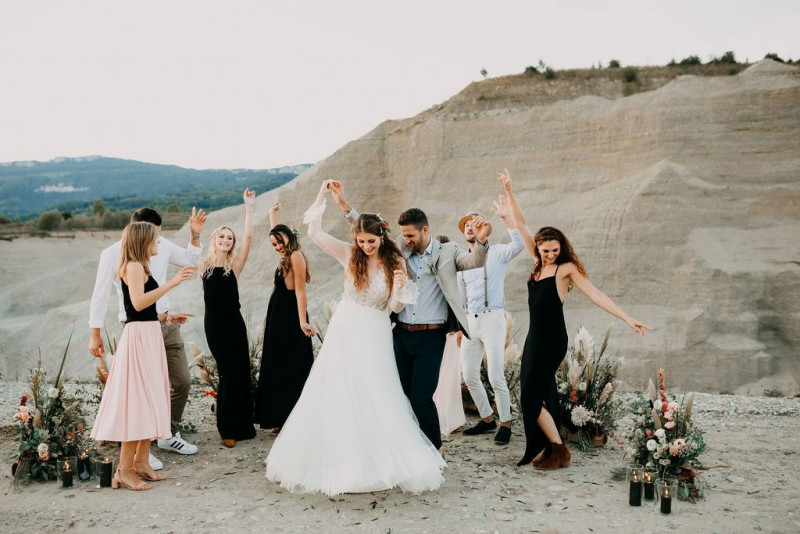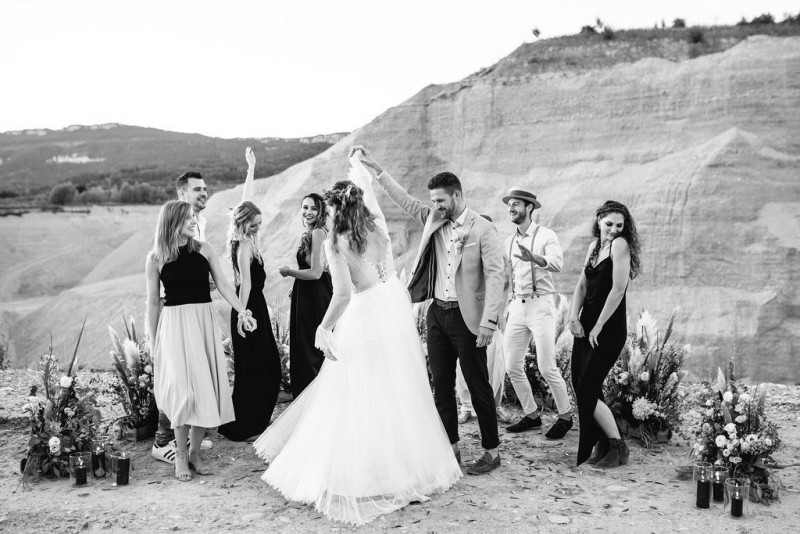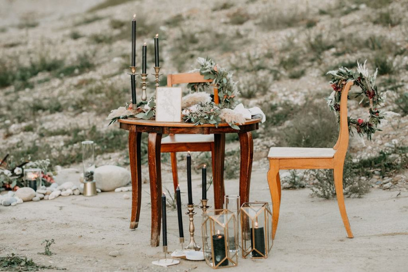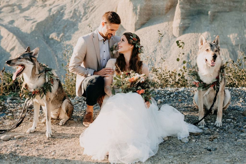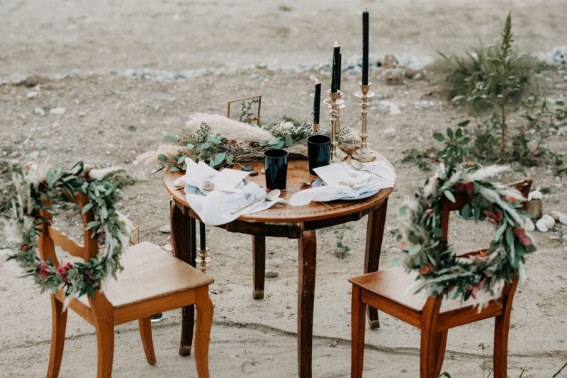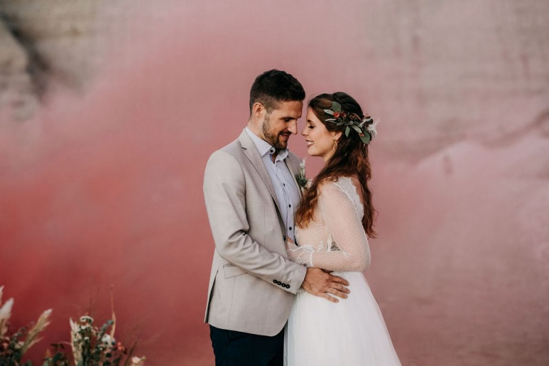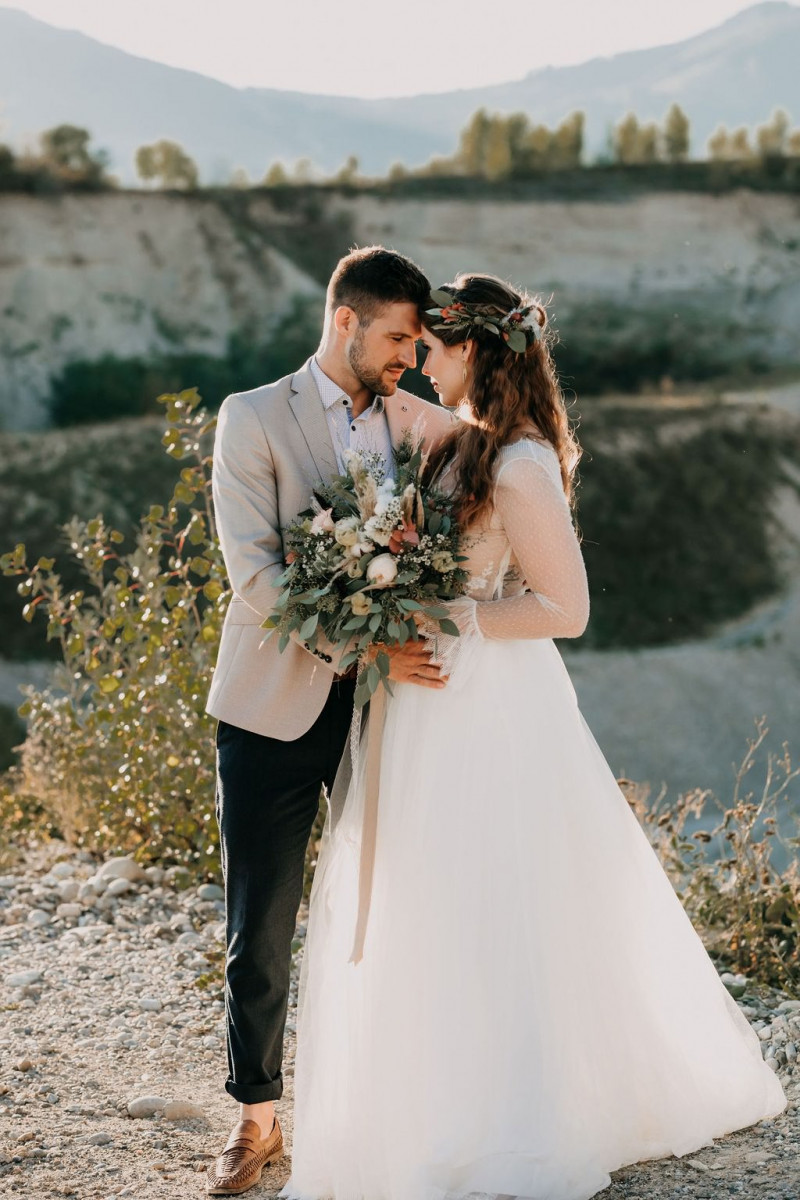 Bei dieser natürlichen Inspiration einer bohemian Elopement Wedding mitten in einem Steinbruch, erwarten euch so viele bezaubernde und romantische Details! Dazu wird es wild durch schwarze Akzente und roten Rauch! Hochzeitsfotografin Melanie Munoz Photography, die diese Inspiration natürlich auch fotografiert hat und die Eventplanerinnen Tiziana & Tamara von GAEA.DESIGN haben sich bei der gemeinsamen Planung dieses Shootings nicht lumpen lassen und an wirklich alles gedacht, das wilde Bohoherzen höherschlagen lässt. Das tierische Highlight sind Idefix und Evita, zwei tschechoslowakische Wolfshunde, die Andrea Zähner mitbrachte.