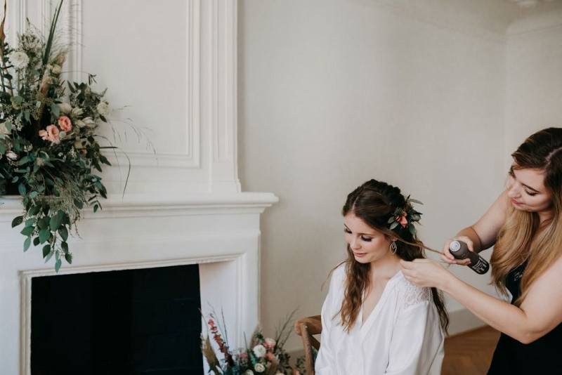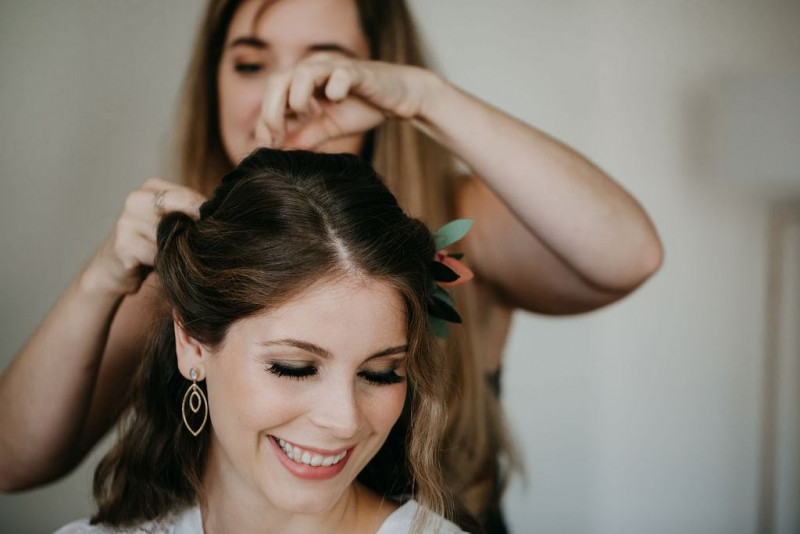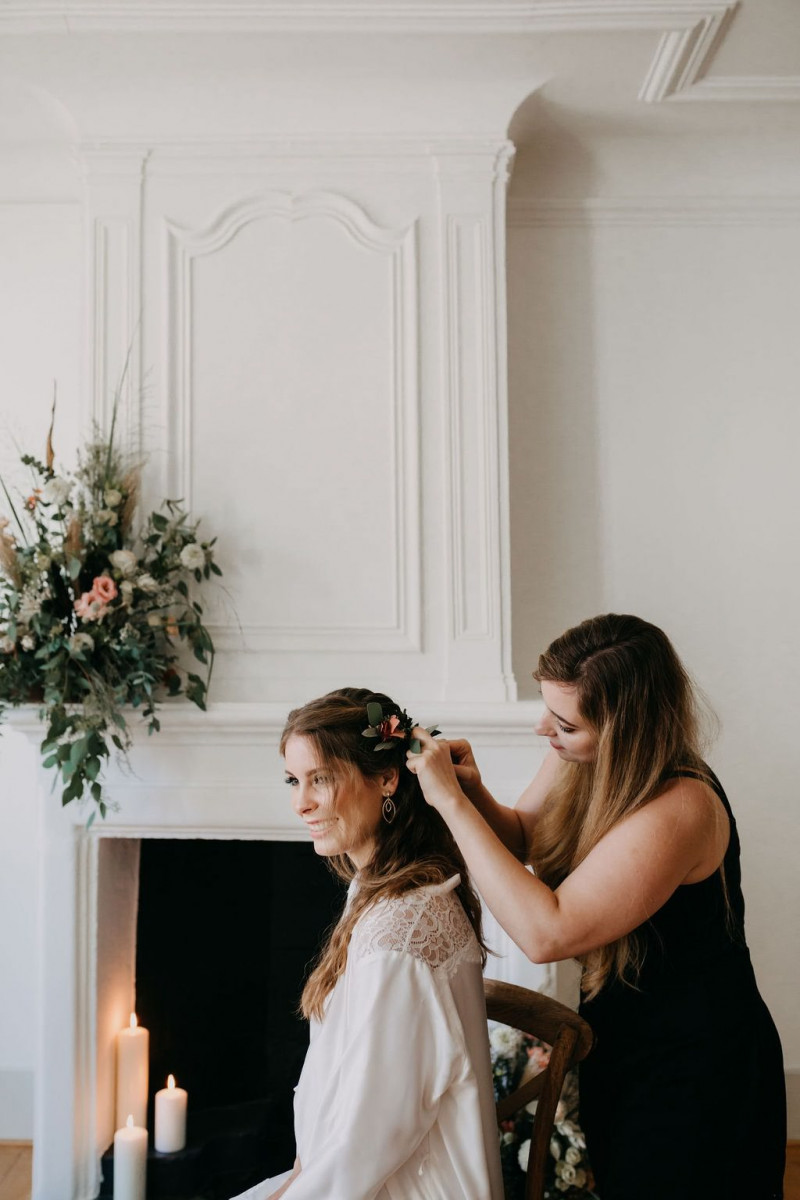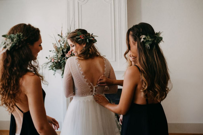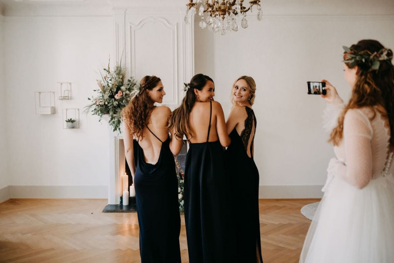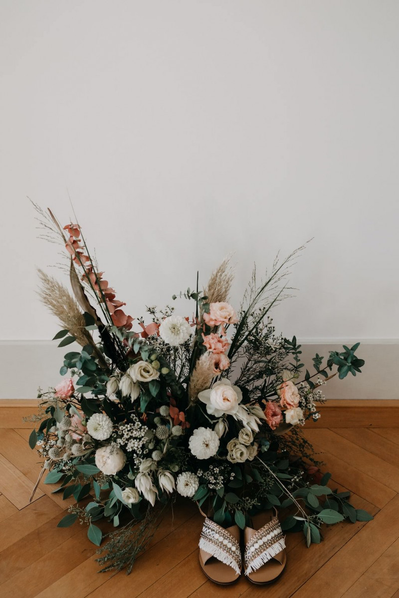 Beginnen wir am Morgen des Shootings. In einer lichtdurchfluteten Altbauwohnung, die früher mal ein Theater war, fand das Getting Ready des Brautpaares und der Bridesmaids statt. Sandra, die zauberhafte Braut, wurde im Kreise ihrer liebsten Mädels gestylt. In einem langärmligen Brautkleid von Lacely und einem zarten aber ausdrucksstarken Makeup von boholicious MAKE-UP strahlte sie bis über beide Ohren. Passend dazu, wie auch zu den hübschen Bridesmaids, die ein absolutes Highlight sind in ihren schwarzen Kleidern und mit ihren Blumenreifen, kreierte Cutwoman der Braut eine lockere Frisur im Boholook. Abgerundet durch die hübschen floralen Details von Blumenladen Terra Vecchia und den Schmuck von The Sparkle waren sie bereit für den sonnigen Tag in der Schweiz.