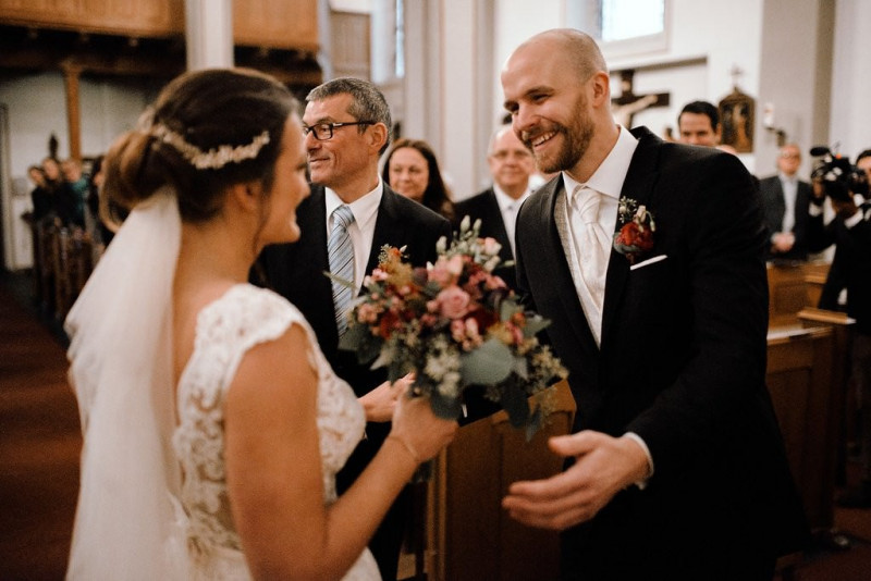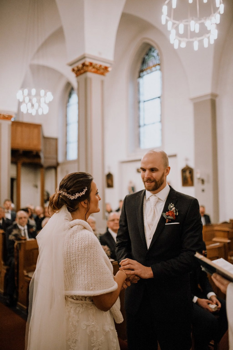 Am 29. Dezember 2017 gaben sich Nati & Kristian, bei einer emotionalen kirchlichen Trauung mit gesanglicher Begleitung von Jannik Föste, das Ja-Wort! Bei dieser wunderschönen Winterhochzeit erwarten euch neben einer tollen Scheune und feinem Schnee auch bezaubernde Vintagevibes. Nati wurde von ihrem Vater, hinter ihren Brautjungfern und dem Pfarrer, zu ihrem Bräutigam in einem wunderschönen Brautkleid von Brautliebe geführt. Ihr Hair & Makeup zauberte Jolanta Schneider von Joellin und ihr passender Brautstrauß kreierte Blütenzauber Gräfrath. Aber auch Kristian machte in seinem Anzug von Hosen Sacco Etage Wuppertal ganz schön was her! Freundentränen und Aufregung erwarten uns! Diesen ganz besonderen Tag, an dem es für die beiden sogar schneite, hielten die Hochzeitsfotografen Beloved Photography fest! Nach der Trauung ging es mit ihnen in die Goldmarie, einem süßen Vintagemöbel Shop. Dort und im angrenzenden Gebiet der Hochzeitslocation Gut Hahn, fand das Brautpaarshooting statt. In der Feierlocation Gut Hahn, wo der Tag der beiden schon mit dem Getting Ready begann, warteten unteranderem eine Fotobooth, eine Wodka- und Zigarrenbar, eine Candybar, wunderschöne Vintagedekoration, eine Waffelbar und ganz viele Wunderkerzen! Ihr werdet sicher noch einiges mehr entdecken! Musikalisch gaben neuton. alles und sorgten für den absolut perfekten Hochzeitstanz und der großen Party! Ich bin hin & weg von all den hübschen Details dieser Hochzeit! Das strahlende Brautpaar, die Stimmung, der Schnee… Ganz viel Freude mit dieser außergewöhnlichen Hochzeitsinspiration!