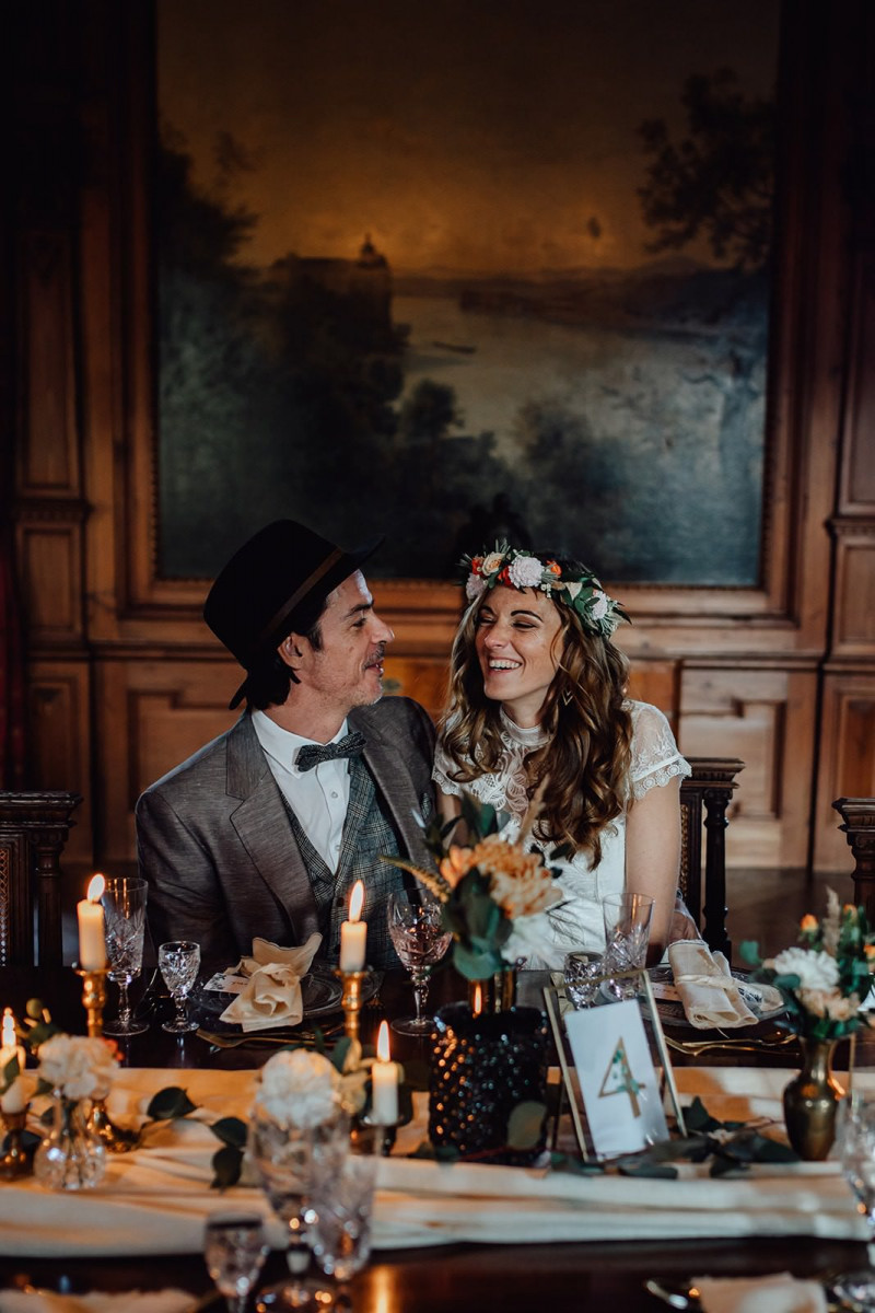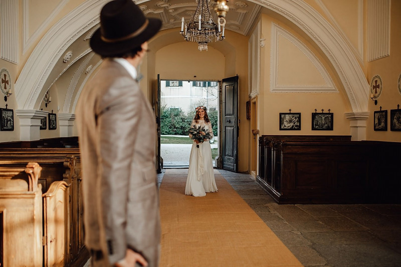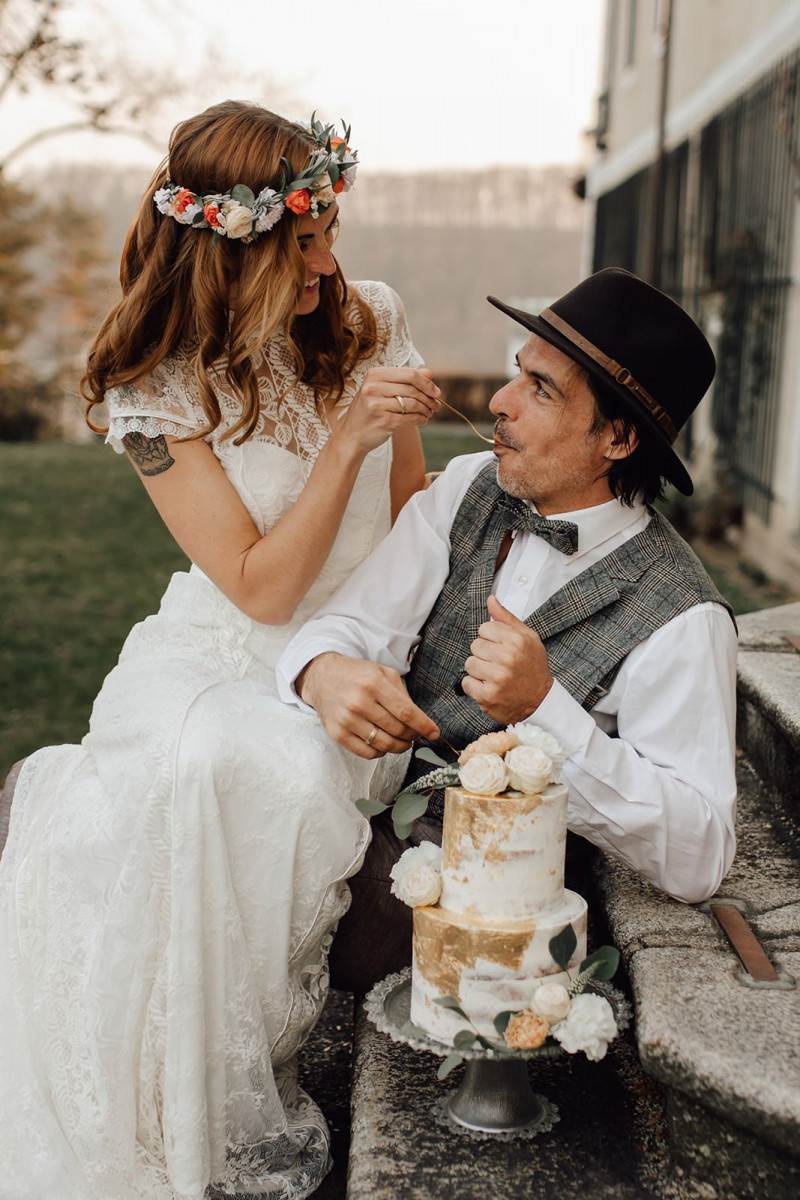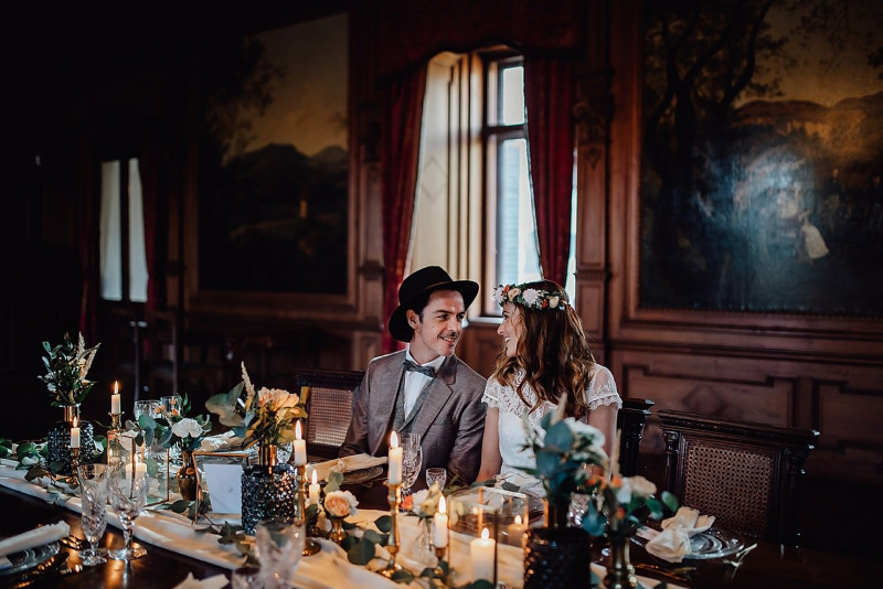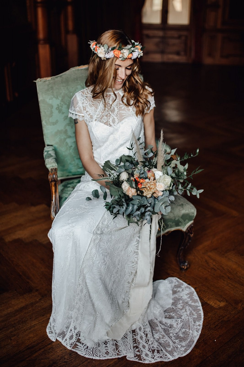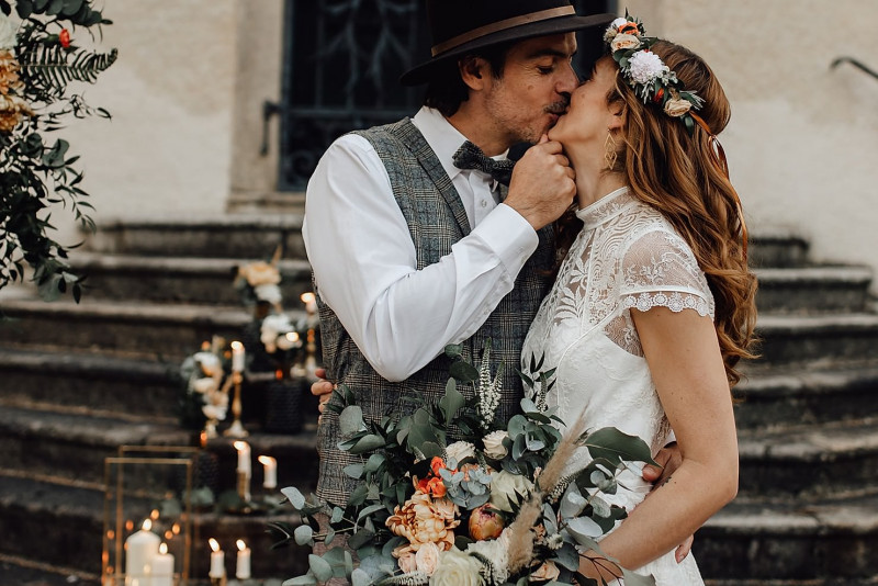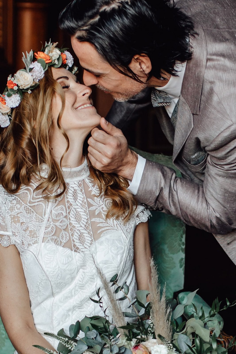 Heute geht es für uns in das zauberhafte Schloss Persenbeug in Österreich. Direkt an der Donau gelegen, erwartet uns in diesem romantischen Schloss eine wunderschöne Inspiration einer Bohohochzeit. Die Mischung aus pompösen Details und leichten Bohovibes ist einfach so schön! Fotografiert wurde diese Boho Glam Hochzeitsinspiration von Barbara Pölzgutter Photography, die videografische Unterstützung von Smove Media bekam. Auch das Video findet ihr in diesem Artikel! Geplant wurde der Tag von der lieben Julia von mach’s hübsch Deko-Denk , die neben dem Konzept auch noch die tolle Dekoration und Floristik kreiert hat. Dunkles schweres Holz im opulenten Bankettsaal trifft auf wilde Floristik und unzählige Kerzen. Neben sattem Grün und zartem Beige ist auch die Trendfarbe Living Coral, die Pantone Farbe 2019, in den floristischen Details zu entdecken. Die beiden hübschen Brautkleider, die euch hier erwarten, sind von First Love & Steinecker. Sie sind zart fließend aber genauso elegant wie leicht. Passend dazu wurde auch das Hair & Makeup von Stefanie Hausbergerkreiert und durch den Schmuck von Nathalie Bleyer ergänzt. Von Steinecker ist auch der schicke Anzug des Bräutigams. Sein Hut, der seinem edlen Look einen legeren Touch gibt, ist von MüllerHutMode. Gesanglich untermalt wurde dieser romantische Tag von Christina Kerscher. Und natürlich gibt es auch wieder einiges an Hochzeitspapeterie zu entdecken! Sie passt ganz wundervoll zur floralen Gestaltung dieser Inspiration. Hergestellt wurde sie von Herzpost. Fehlt ja nur noch eines… der süße Part des Tages! Die Torte und die Candy Bar kreierte sweet art by jules. Der wundervolle Semi Naked Cake nimmt den glamourösen Stil auf und verzaubert mit edlem Blattgold und Rosen in zartem Rosé. Es gibt mal wieder so vieles zu entdecken! ich bin verliebt und finde diesen Stilmix so grandios! Viel Freude euch beim Staunen und Verlieben!