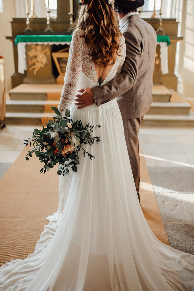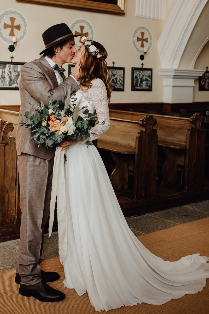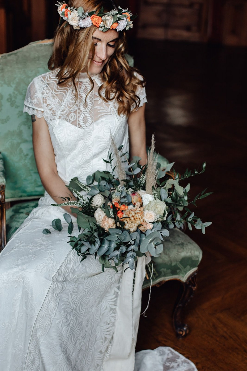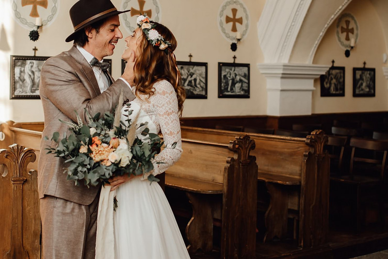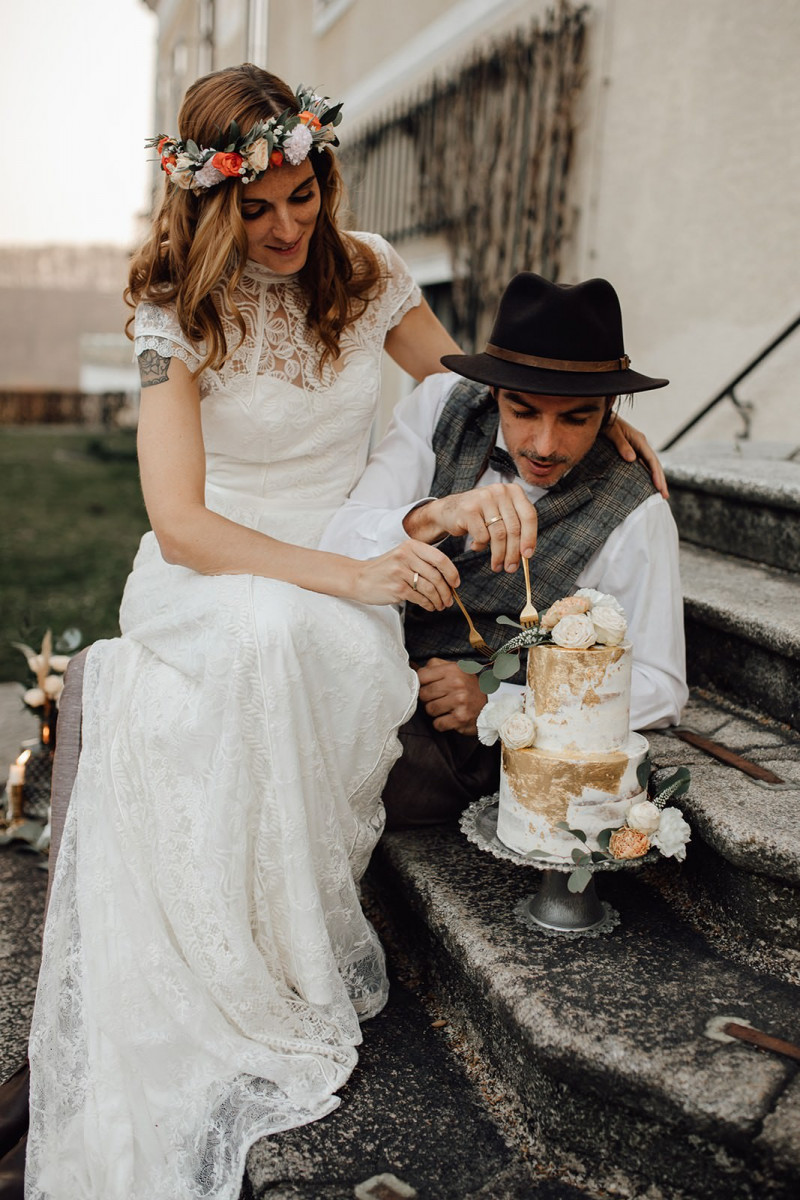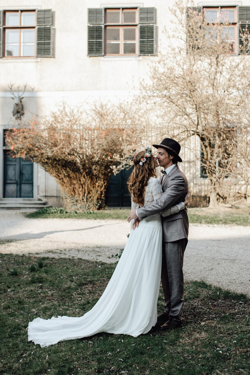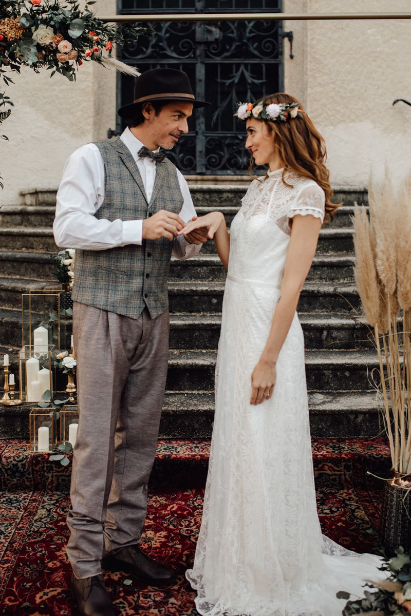 Heute geht es für uns in das zauberhafte Schloss Persenbeug in Österreich. Direkt an der Donau gelegen, erwartet uns in diesem romantischen Schloss eine wunderschöne Inspiration einer Bohohochzeit. Die Mischung aus pompösen Details und leichten Bohovibes ist einfach so schön! Fotografiert wurde diese Boho Glam Hochzeitsinspiration von Barbara Pölzgutter Photography, die videografische Unterstützung von Smove Media bekam. Auch das Video findet ihr in diesem Artikel! Geplant wurde der Tag von der lieben Julia von mach’s hübsch Deko-Denk , die neben dem Konzept auch noch die tolle Dekoration und Floristik kreiert hat. Dunkles schweres Holz im opulenten Bankettsaal trifft auf wilde Floristik und unzählige Kerzen. Neben sattem Grün und zartem Beige ist auch die Trendfarbe Living Coral, die Pantone Farbe 2019, in den floristischen Details zu entdecken. Die beiden hübschen Brautkleider, die euch hier erwarten, sind von First Love & Steinecker. Sie sind zart fließend aber genauso elegant wie leicht. Passend dazu wurde auch das Hair & Makeup von Stefanie Hausbergerkreiert und durch den Schmuck von Nathalie Bleyer ergänzt. Von Steinecker ist auch der schicke Anzug des Bräutigams. Sein Hut, der seinem edlen Look einen legeren Touch gibt, ist von MüllerHutMode. Gesanglich untermalt wurde dieser romantische Tag von Christina Kerscher. Und natürlich gibt es auch wieder einiges an Hochzeitspapeterie zu entdecken! Sie passt ganz wundervoll zur floralen Gestaltung dieser Inspiration. Hergestellt wurde sie von Herzpost. Fehlt ja nur noch eines… der süße Part des Tages! Die Torte und die Candy Bar kreierte sweet art by jules. Der wundervolle Semi Naked Cake nimmt den glamourösen Stil auf und verzaubert mit edlem Blattgold und Rosen in zartem Rosé. Es gibt mal wieder so vieles zu entdecken! ich bin verliebt und finde diesen Stilmix so grandios! Viel Freude euch beim Staunen und Verlieben!