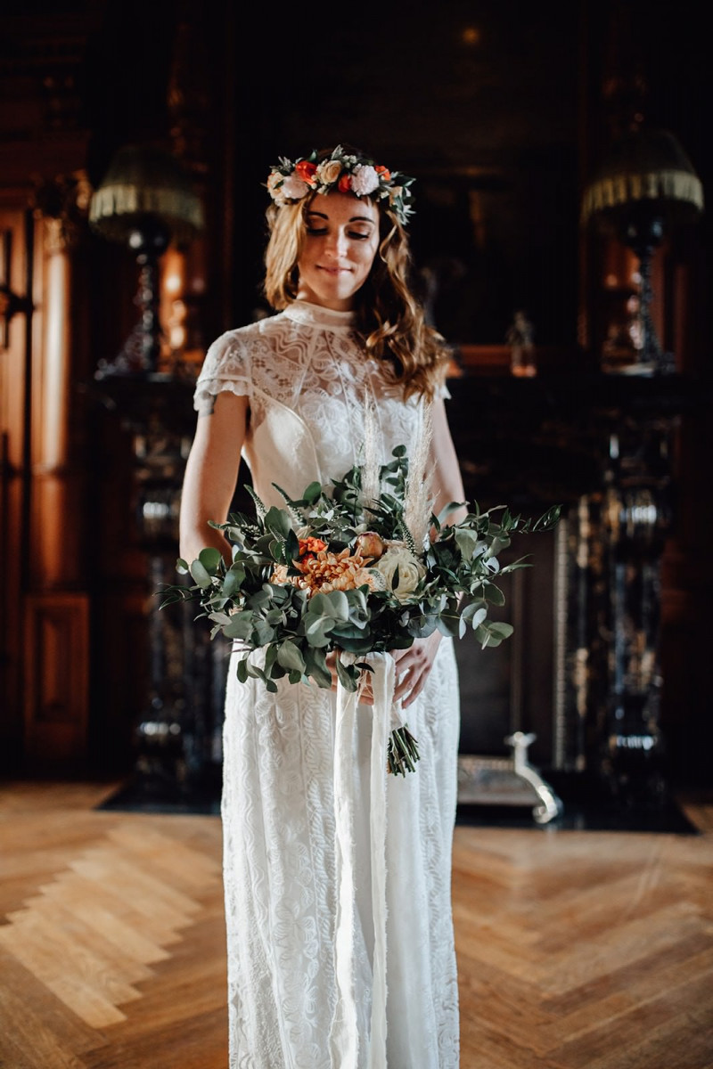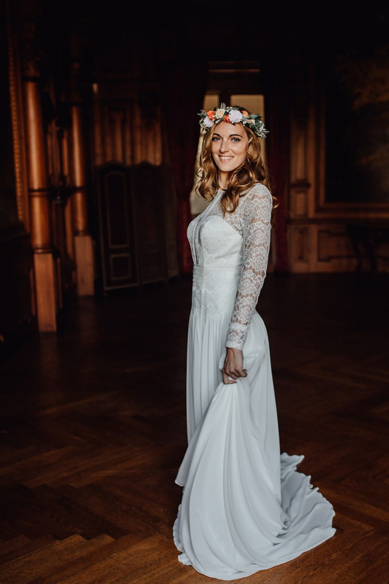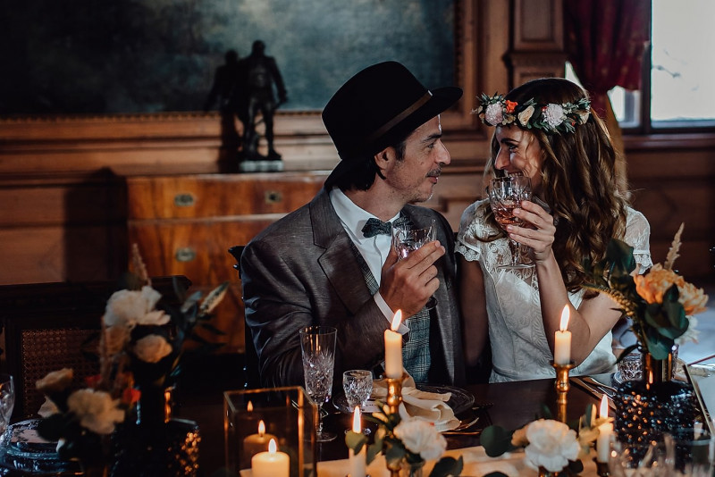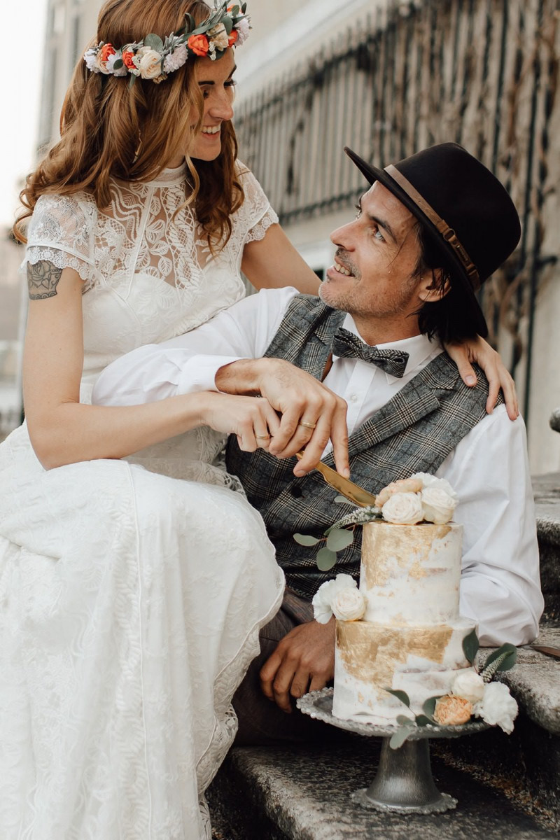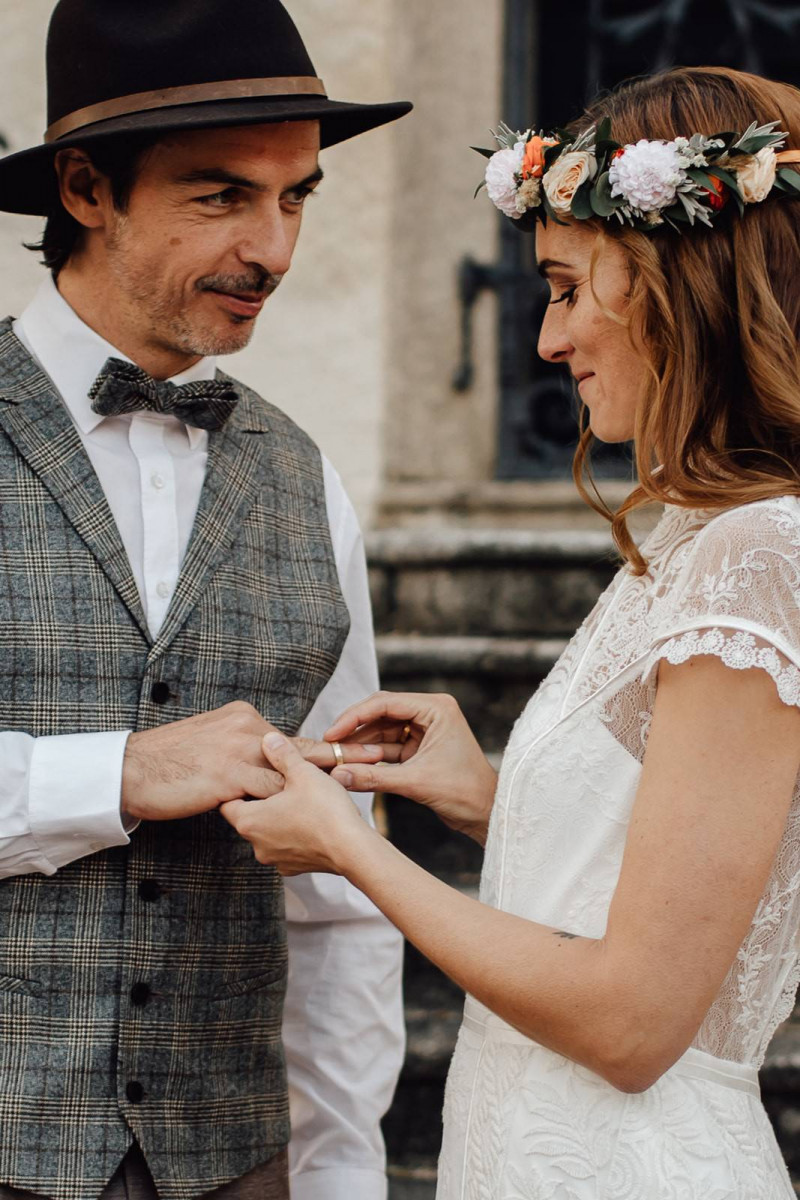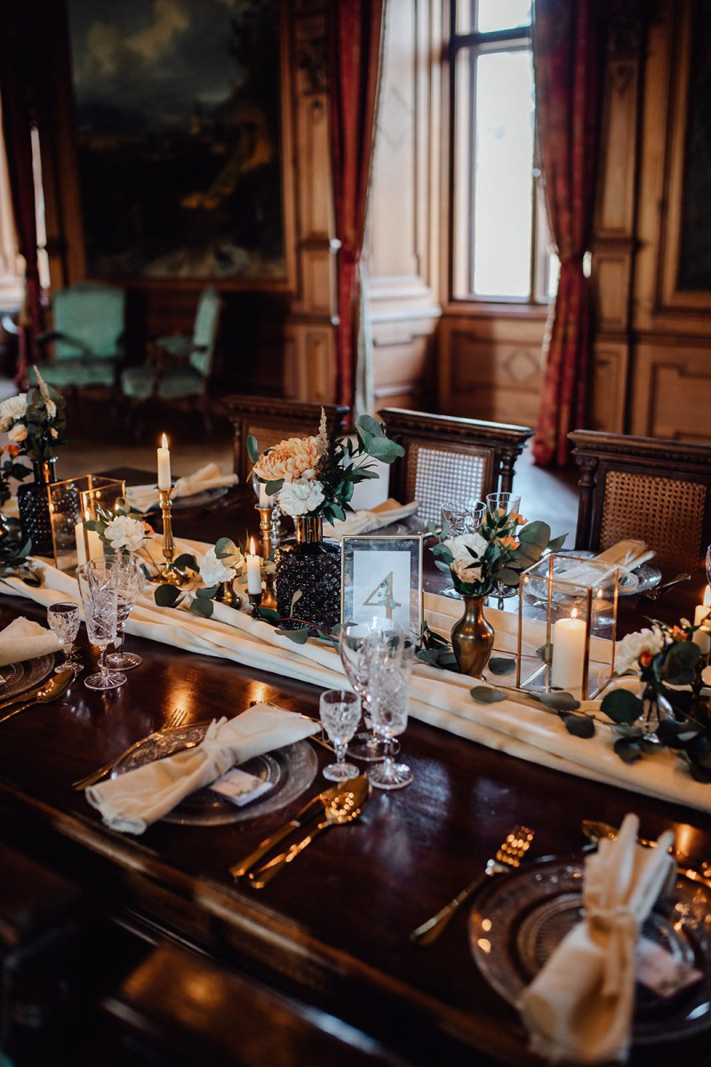 Heute geht es für uns in das zauberhafte Schloss Persenbeug in Österreich. Direkt an der Donau gelegen, erwartet uns in diesem romantischen Schloss eine wunderschöne Inspiration einer Bohohochzeit. Die Mischung aus pompösen Details und leichten Bohovibes ist einfach so schön! Fotografiert wurde diese Boho Glam Hochzeitsinspiration von Barbara Pölzgutter Photography, die videografische Unterstützung von Smove Media bekam. Auch das Video findet ihr in diesem Artikel! Geplant wurde der Tag von der lieben Julia von mach’s hübsch Deko-Denk , die neben dem Konzept auch noch die tolle Dekoration und Floristik kreiert hat. Dunkles schweres Holz im opulenten Bankettsaal trifft auf wilde Floristik und unzählige Kerzen. Neben sattem Grün und zartem Beige ist auch die Trendfarbe Living Coral, die Pantone Farbe 2019, in den floristischen Details zu entdecken. Die beiden hübschen Brautkleider, die euch hier erwarten, sind von First Love & Steinecker. Sie sind zart fließend aber genauso elegant wie leicht. Passend dazu wurde auch das Hair & Makeup von Stefanie Hausbergerkreiert und durch den Schmuck von Nathalie Bleyer ergänzt. Von Steinecker ist auch der schicke Anzug des Bräutigams. Sein Hut, der seinem edlen Look einen legeren Touch gibt, ist von MüllerHutMode. Gesanglich untermalt wurde dieser romantische Tag von Christina Kerscher. Und natürlich gibt es auch wieder einiges an Hochzeitspapeterie zu entdecken! Sie passt ganz wundervoll zur floralen Gestaltung dieser Inspiration. Hergestellt wurde sie von Herzpost. Fehlt ja nur noch eines… der süße Part des Tages! Die Torte und die Candy Bar kreierte sweet art by jules. Der wundervolle Semi Naked Cake nimmt den glamourösen Stil auf und verzaubert mit edlem Blattgold und Rosen in zartem Rosé. Es gibt mal wieder so vieles zu entdecken! ich bin verliebt und finde diesen Stilmix so grandios! Viel Freude euch beim Staunen und Verlieben!