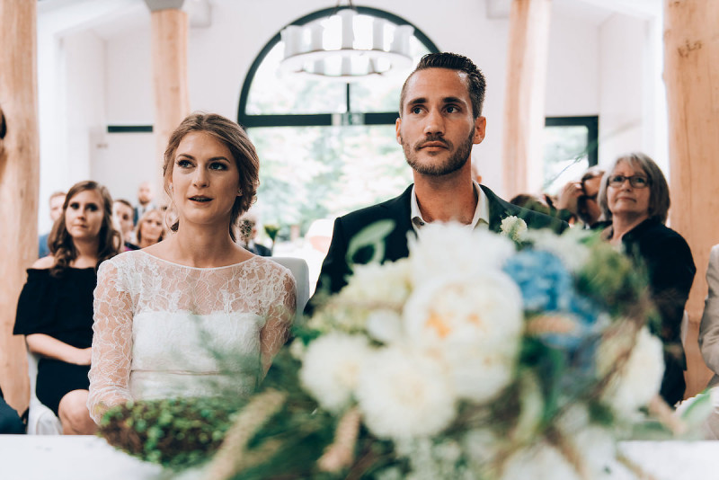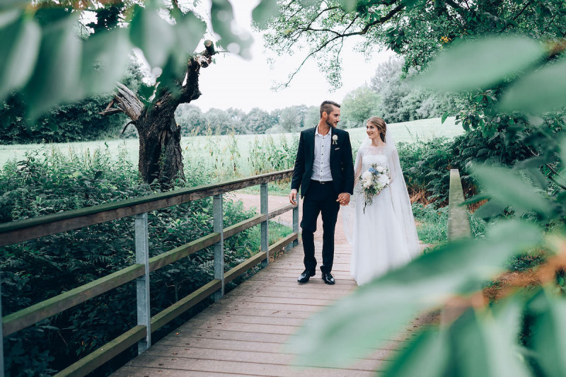 Am 8.Juli 2017 haben sich Jenny & Roman, zwei wilde, grüne Herzen, bei einer romantischen freien Trauung mit Nina von Nina-traut-euch, das Ja Wort gegeben. Ihr größter Wunsch? Eine Hochzeit so authentisch, wie sie es sind. Das würde ich sagen, ist ihnen gelungen! Und dank Ben von Ben Ja Fotografie, dürfen wir an ihrem großen Tag teilhaben. Die wunderschönen Blumen sind von Isselhuker Blumen, die passende Dekoration ist von Holzmanufaktur Geier und die Torte hat die Hochzeitslocation, das Landhotel Voshövel, gefertigt. Das traumhaft schöne Brautkleid ist von Brautblüte. Los gehts! Hier findet ihr alle Aufnahmen vom Getting Ready mit Stylistin Daria, über die freie Trauung bishin zum Brautpaarshooting – lasst euch inspirieren!