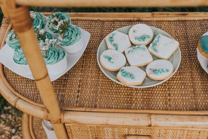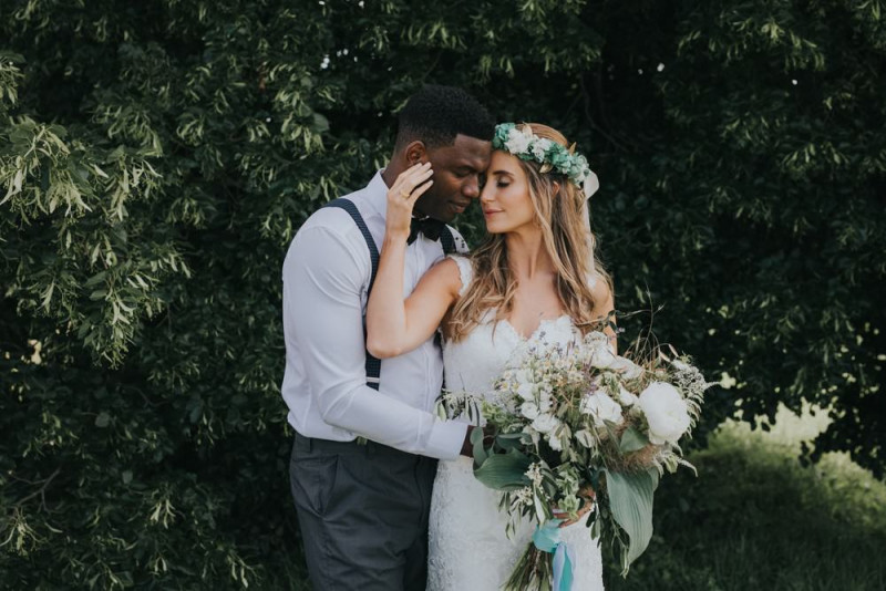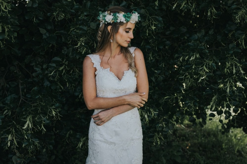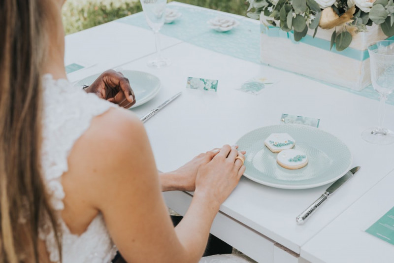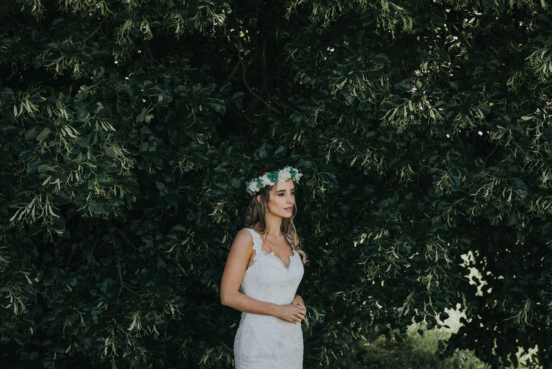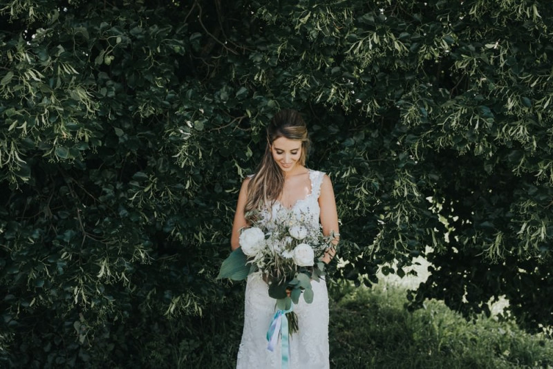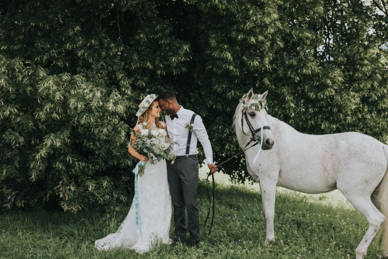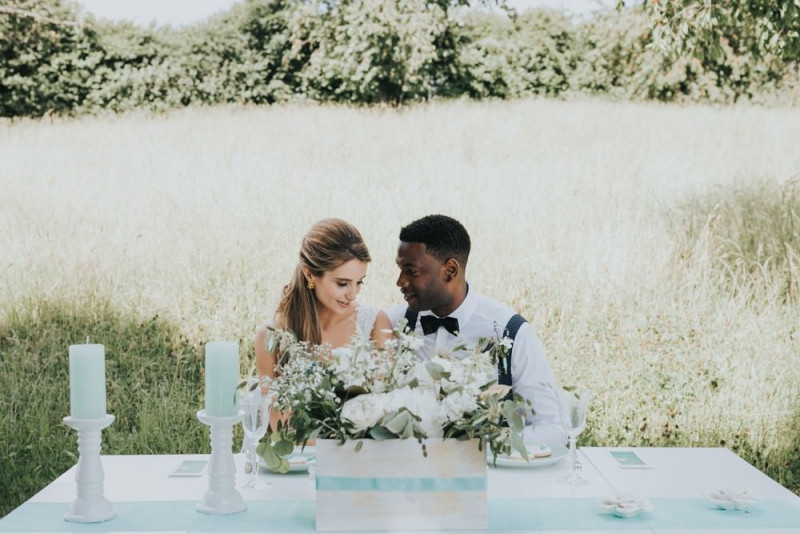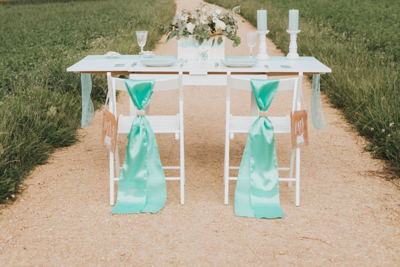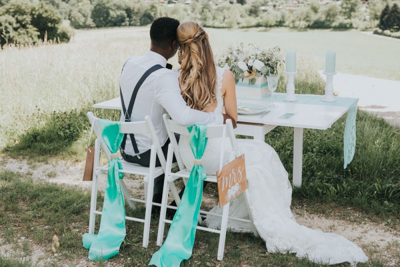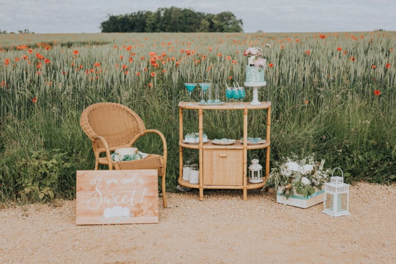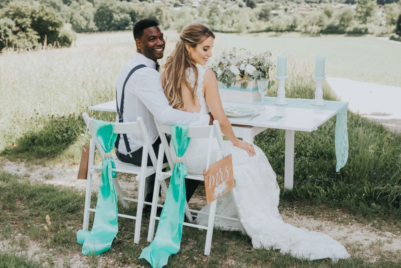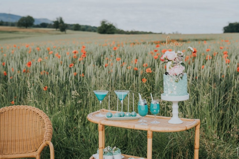 Ein zauberhaftes Styled Shoot einer Hochzeit in Grün- und Blautönen erwartet euch! Die Kulisse ist eine Farm (Hof Klosterfichten) umgeben von sattem Grün und vor allem Klatschmohnfeldern! Zart und zurückhaltend, dennoch auffällig, sind die Farbakzente in grün und blau gewählt worden. Unterstützt durch weißes Acryl, dunkles Kiefernholz und leichten Bastmöbeln erlangt die Szenerie ihre Leichtigkeit. Es sollte die Einfachheit und Reinheit einer Liebe – einer Hochzeit – zeigen, die auch mit einem prunkvollen Hochzeitskonzept erreicht werden kann. Fotografisch festgehalten hat diese naturschöne Szenerie im Grünen, Hochzeitsfotografin Mary Fernandez Photography. Das Konzept und die Umsetzung der Idee wurde von Golden Moon Weddings verwirklicht. Der Brautstrauß, der nicht erschlägt sondern verzaubert, obwohl er Pfingstrosen, Mauerblümchen, Rosen, Nigella, Paniculata, Astilbe, Hortensien, Olivenzweige, Eukalyptus und Hosta vereint, wurde von Der Blumenladen kreiert. Die zuckersüßen und wunderschönen Sweets, samt Hochzeitstortentraum sind von delicatessen CAKE, die euch schon dank des Artikels Wedding Cakes – Eat art first! bekannt sein dürfte. Das Mobiliar von Antoniette concept store und die hübschen Schilder von Blattpapier Studio runden den leichten Hochzeitslook perfekt ab.
