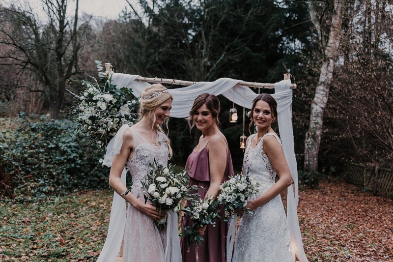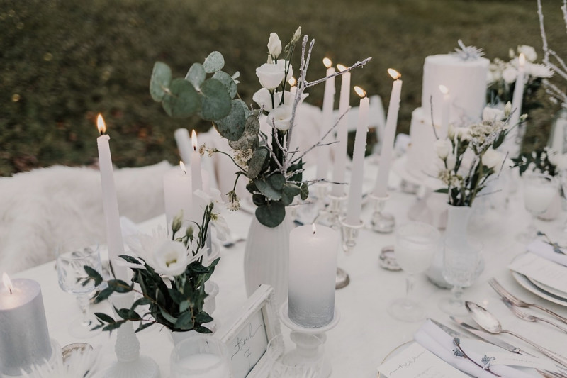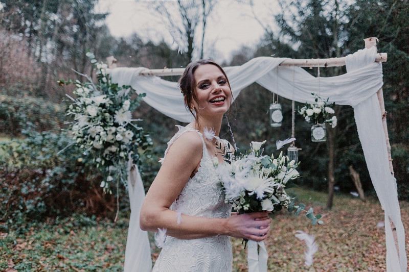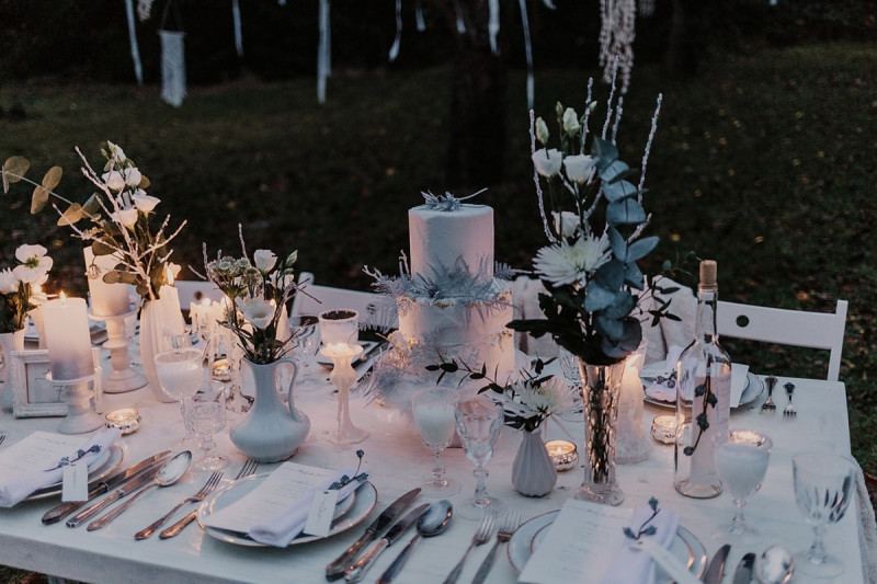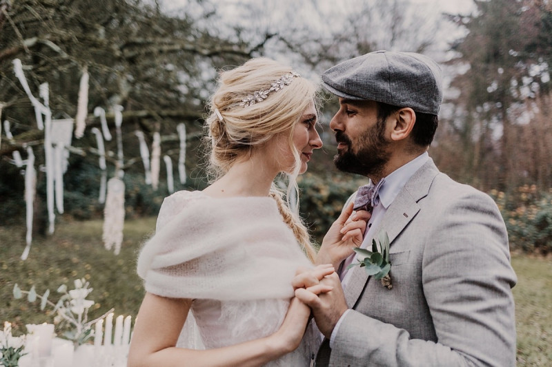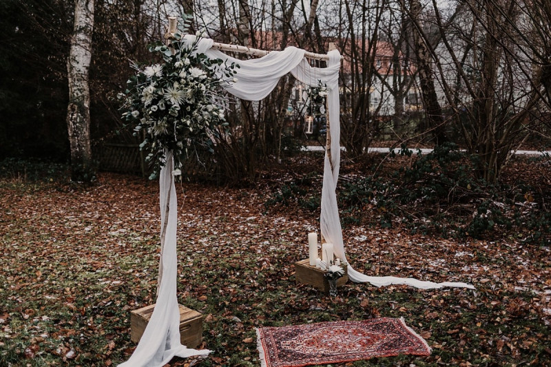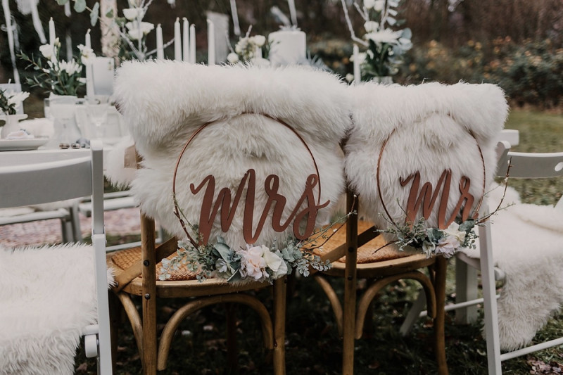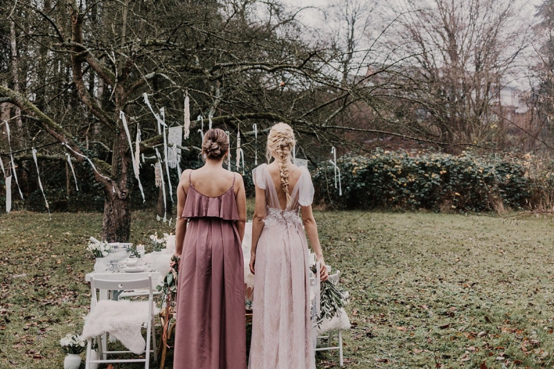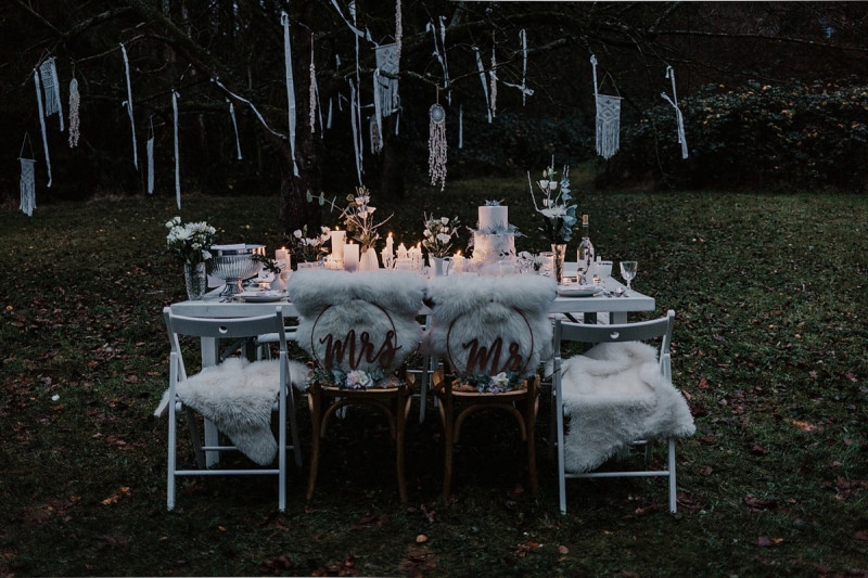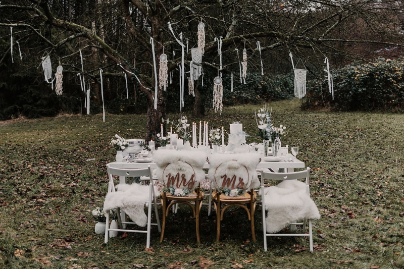 Dieses wunderschöne Styled Shoot, unter einem großen Apfelbaum im Grünen, passt perfekt zu den kühlen Temperaturen. Eine zauberhafte Inspiration für bohoinspirierte Winterhochzeiten. Es erwarten euch helle Farben, kühle Akzente, zauberhafte Braut- und Bridesmaidslooks, jede Menge Traumfänger, wilde Floristik und Dekoration zum Verlieben! Dieser Artikel ist nicht nur bildgewaltig, sondern auch eine Inspirationsexplosion! Ihr werdet es sehen! Fotografiert und geplant hat diese Hochzeitsinspiration die Hochzeitsfotografin Marei Photography gemeinsam mit Sternenauge Bridalstyling, die auch das Hair & Makeup kreiert und den wunderschönen Brautschmuck entworfen hat. Die zauberhafte Dekoration kreierte Tischleihendeckdich, die durch die wunderschöne Floristik von Nymph Blumendesign perfekt ergänzt wird. Das helle Weiß und die dunklen Grüntöne geben die winterliche Stimmung wieder und wirken dabei, ergänzt durch helles Blau und das glänzende Silber, besonders edel. Die Details der Stühle, von Pretty Cover, sorgen dabei für das extra Quäntchen Gemütlichkeit. Ein wunderschöner Kontrast zur Location dieses Styled Shoots von Kartenträume, die auch die passende Hochzeitspapeterie entworfen haben. Natürlich sind auch die verschiedenen Braut- und Brautjungfernlooks ein besonderer Part dieser Inspiration! Für die wunderschönen Kleider sorgte Designerin Esther Hofmann. Dank Brautmode Horn macht natürlich auch der Hahn im Korb – der Bräutigam – eine tolle Figur! Was jetzt noch fehlt? Natürlich die Hochzeitstorte! Diesen Traum wie aus einem Märchen rund um eine Eiskönigin kreierte Tortenatelier Radevormwald. Ich wünsche euch ganz viel Freude mit dieser grandiosen Hochzeitsinspiration!